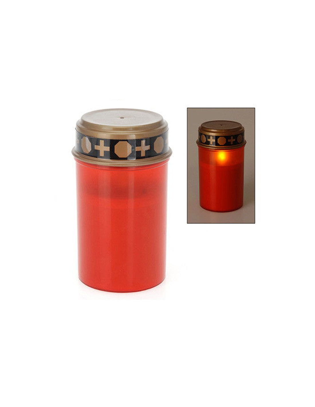 Vela para difuntos (cementerio) con luz led. color rojo. luz blanco calido. medidas: ø6,5 x 12 cm (diámetro/alto) color rojo. funciona con 2xlr14 (no incluidas) material: polipropileno.