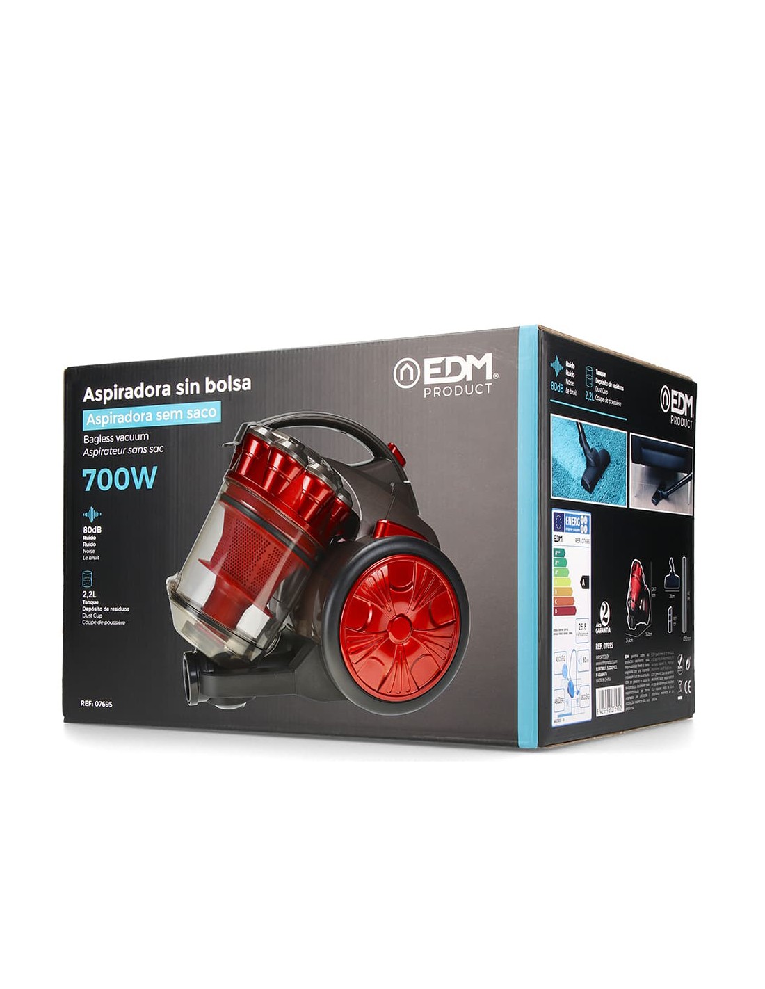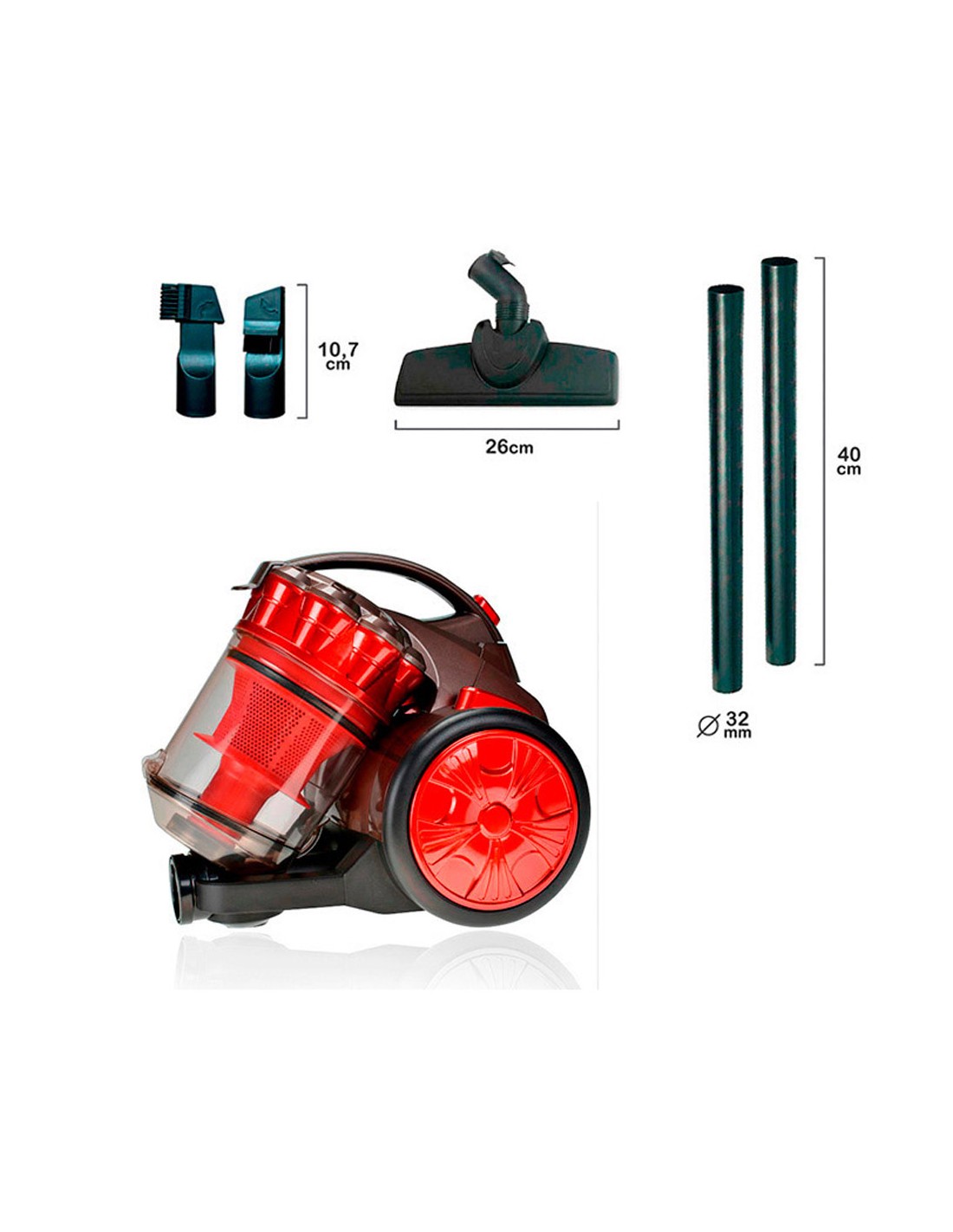 Aspirador multiciclonico. 700 w. deposito 2,2 l. 80db. 220-240v 50hz 3m de cable (recogida de cable automatica). filtro lavable y fácil de vaciar. sin bolsa. conducto giratorio 360°. incluye accesorios. cepillo suave cabezal, tubo de conexión y rinconera con mini cepillo suave.aspirador ideal para todo tipo de suelos y superfícies. dimensiones: 24,8x34,2x29,7cm clase energetica a