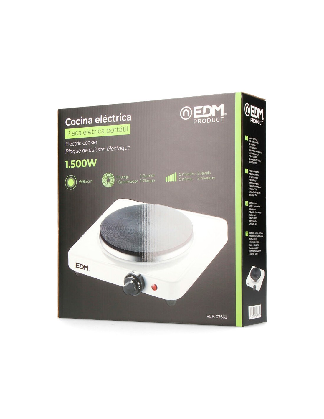 Cocina electrica 1 fuego potencia: 1500w. indicador luminoso de encendido. regulacion de temperatura de 5 niveles. dimensiones: 25x29x7,5cm (ancho/fondo/alto) 220-240v 50hz edm