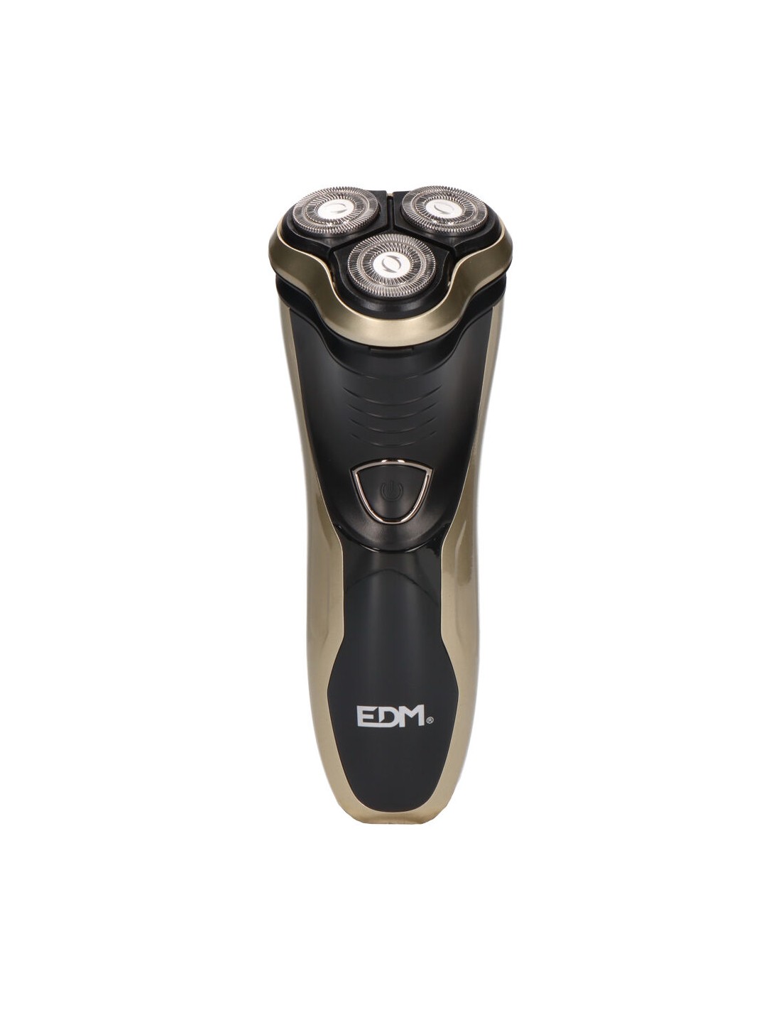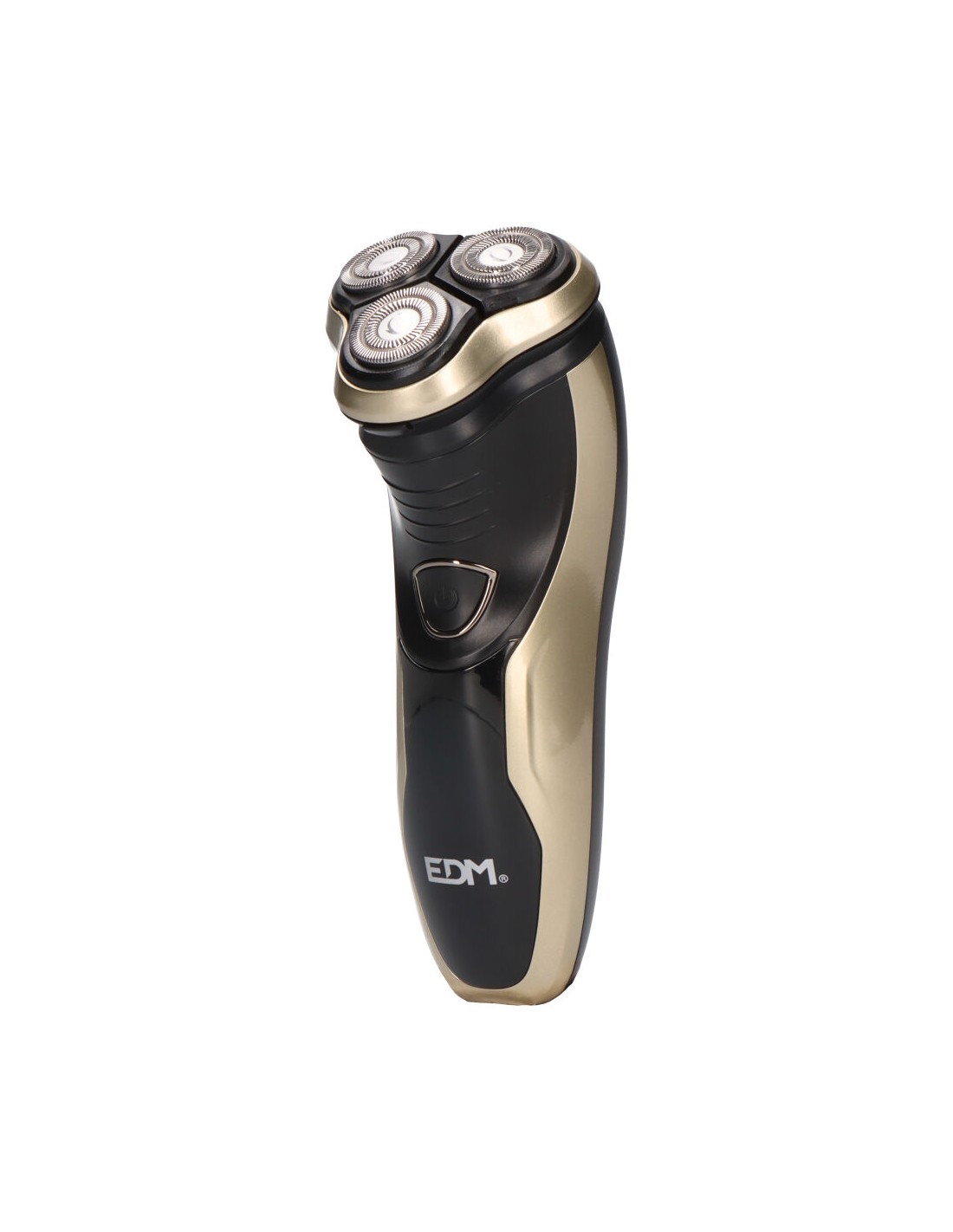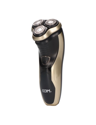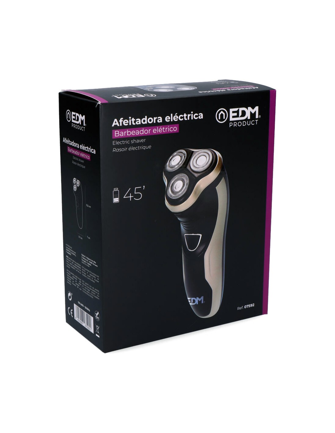 Afeitadora electrica recargable inalambrica. cuchillas auto-afiladas. cabezal triple individual flotante. accesorios: bolsa de viaje + cepillo de limpieza + cable de carga + 2 baterias de 100ma - 8h de carga - 45min de funcionamiento. indicador de carga led. lavable abriendo el cabezal de afeitado para enjuagarlo. incluye cortapatillas. dimensiones:5,7 x 7 x 15,5 cm (ancho/fondo/alto) 220-240v 50hz edm