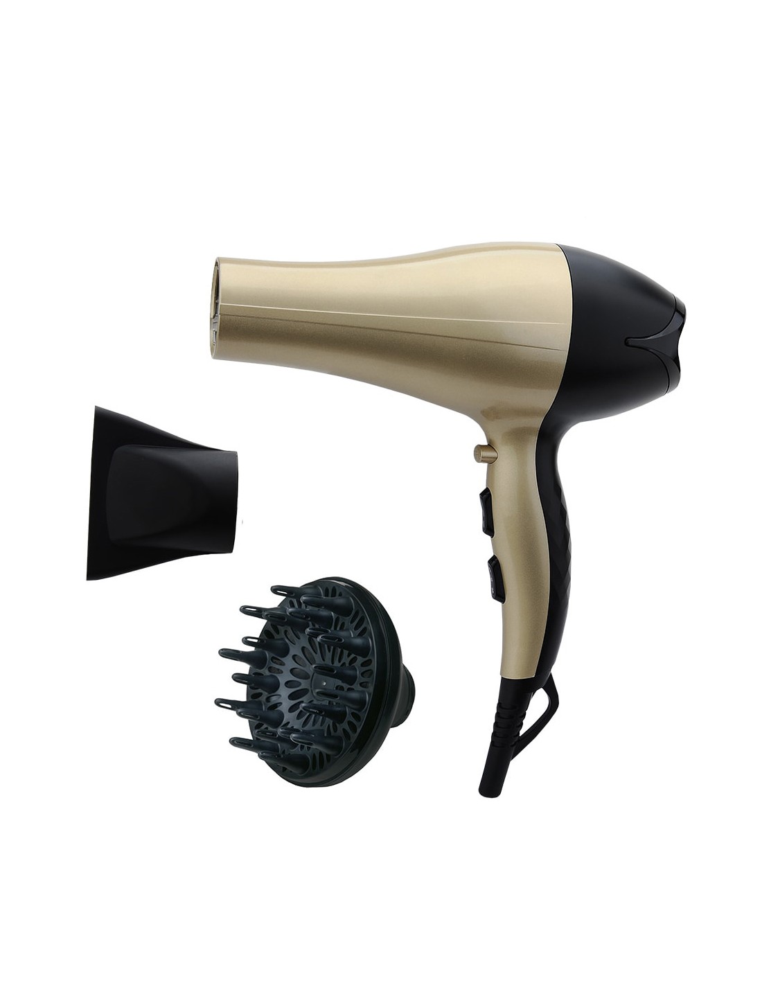 Secador de cabello con difusor ionico. potencia: 1900-2300w. secado 100% libre de daños con el sistema "ionic technology" para mas brillo y acabar con el encrespamiento. con boquilla profesional y difusor para un estilo preciso y unos rizos definidos. filtro de malla desmontable que garantiza un 100% de proteccion frente al sobrecalentamiento. interruptor profesional: 2 velocidades, 3 niveles de temperatura, 1 pulsador de aire frio. distribucion uniforme del calor. dimensiones: 9x22,5x28cm (ancho/fondo/alto) 220-240v 50/60hz edm