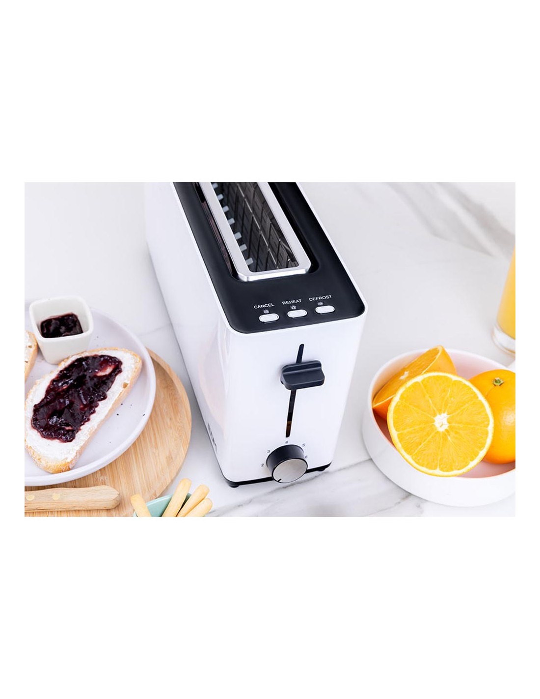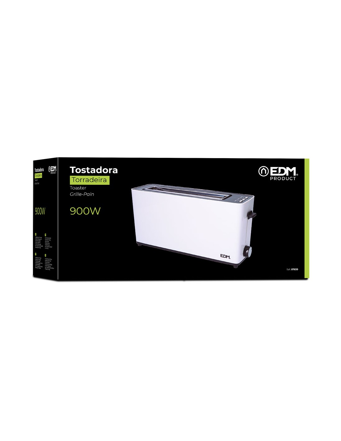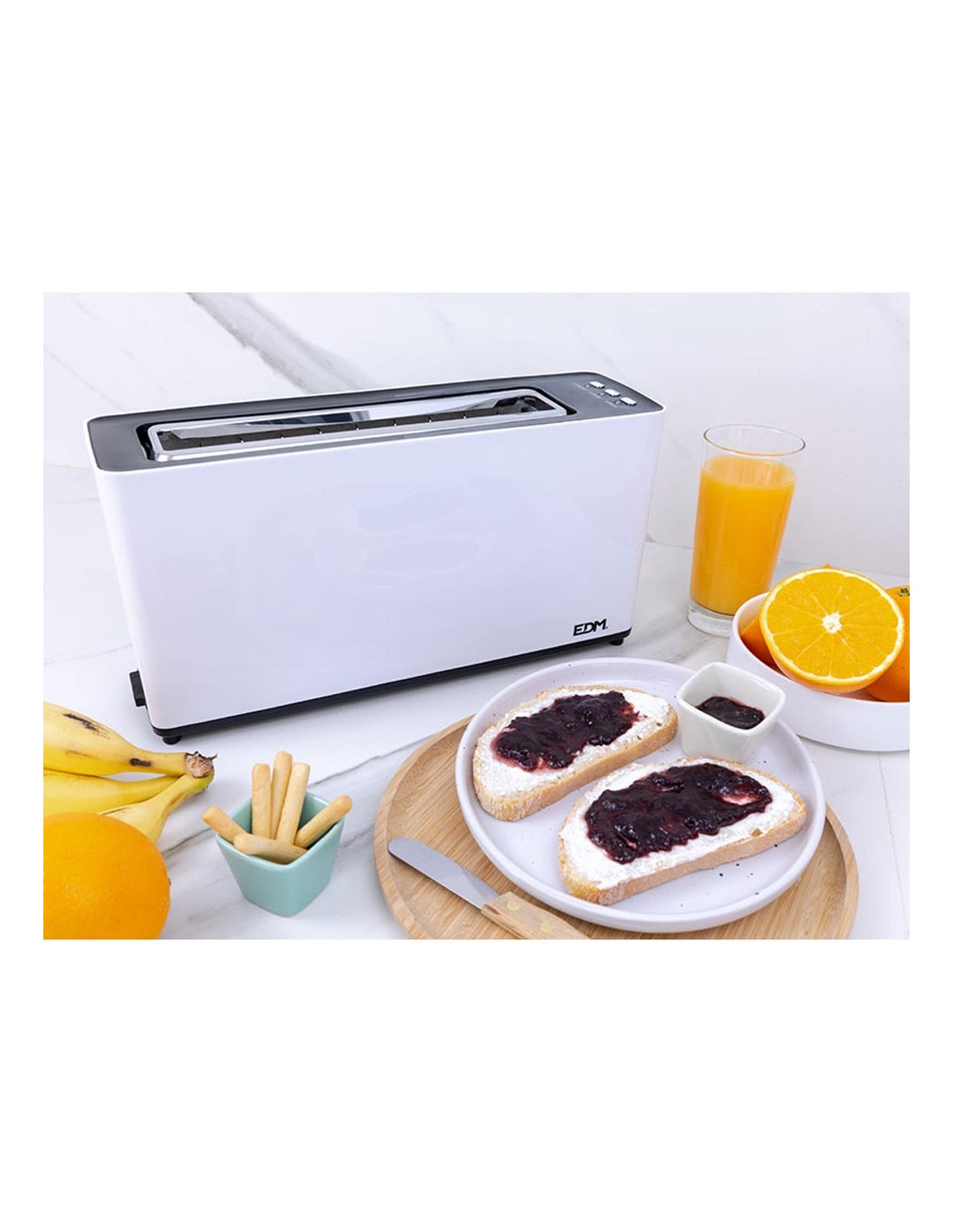 Tostadora ranura larga white design potencia: 900w. color blanco. superficie de toque frio. funcion de parada. 7 posiciones de tostado. bandeja recogemigas. dimensiones: 37x11,5x19cm (ancho/fondo/alto) 220-240v 50/60hz edm