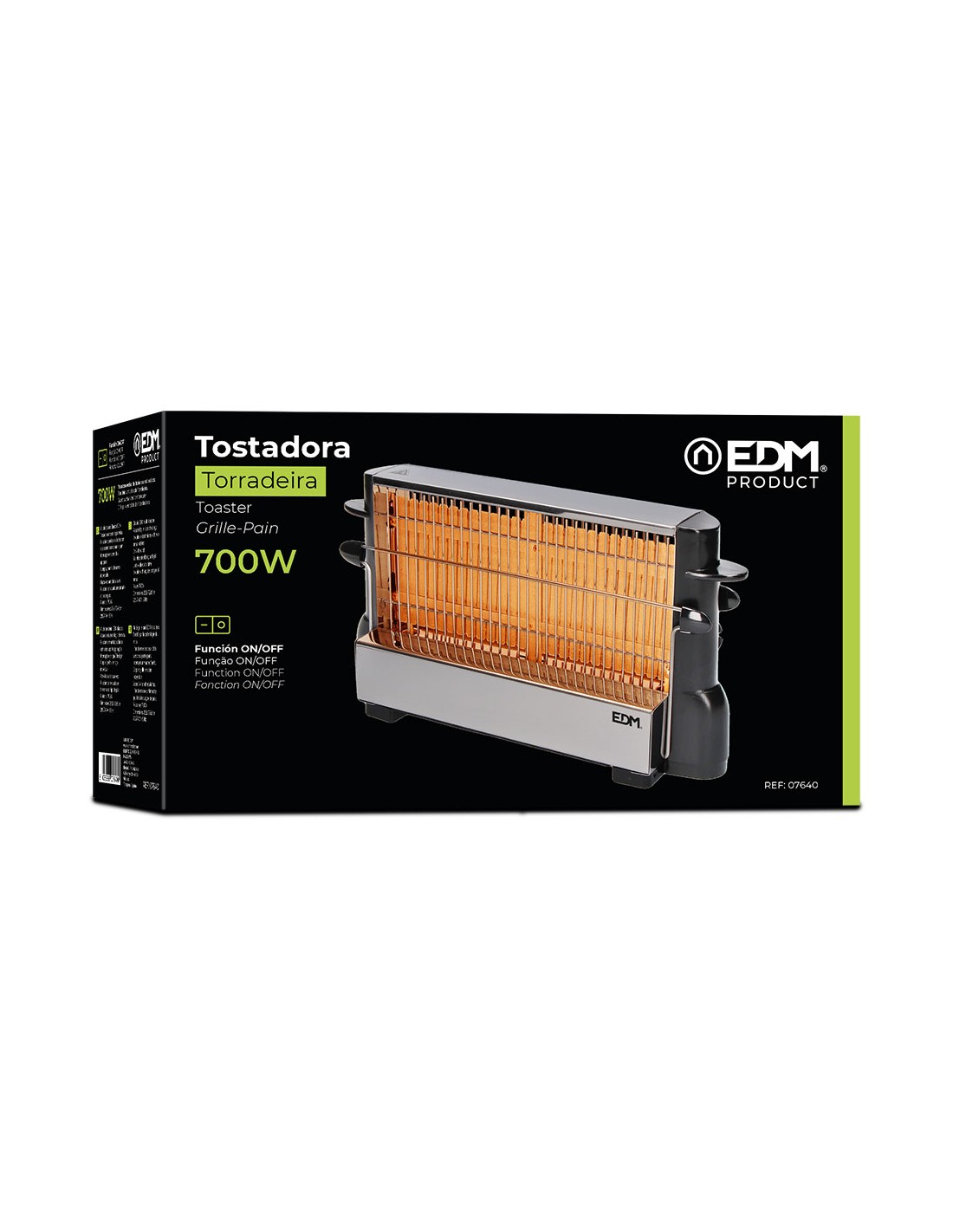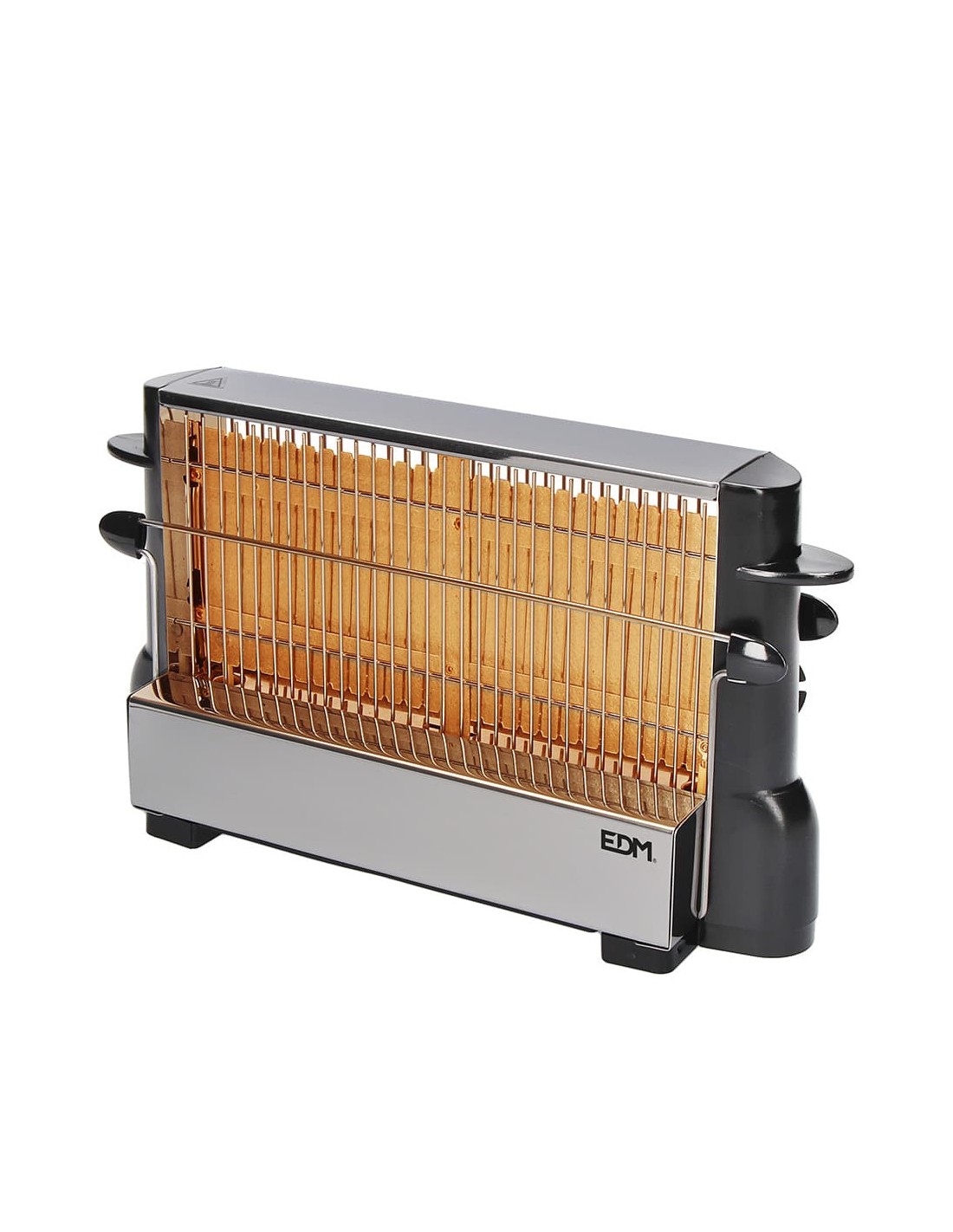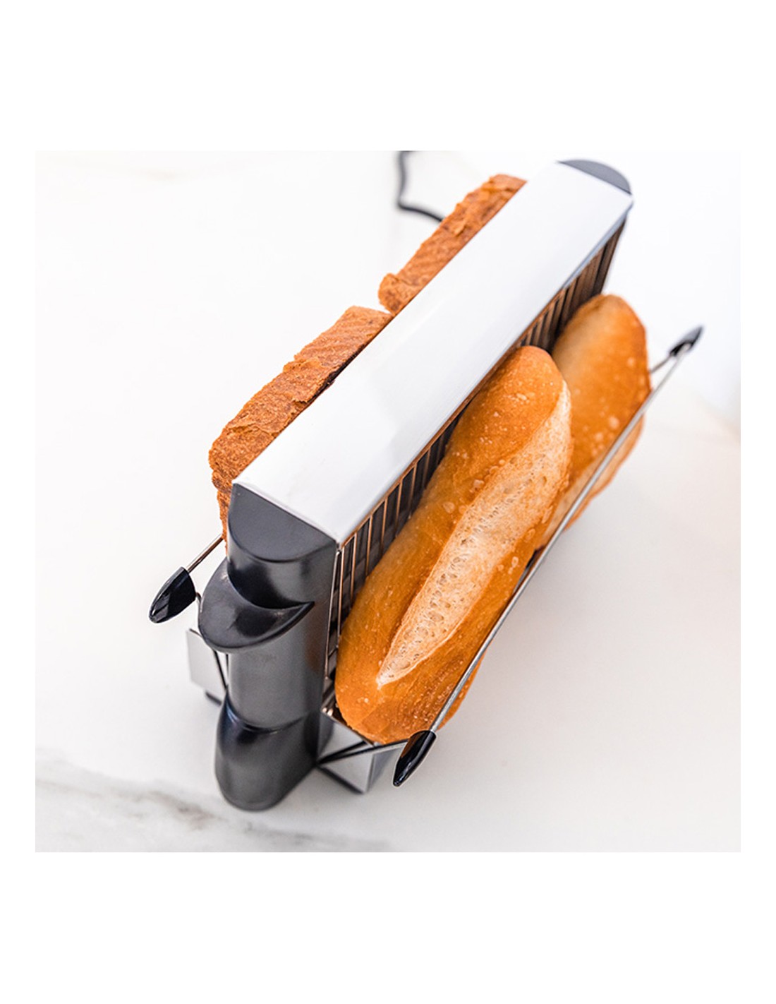 Tostadora vertical potencia 700 w. calentador de placa de mica.tueste por los dos lados. interruptor encendido/apagado. cuerpo y parrilla de acero inoxidable. hasta 4 rebanadas a la vez. capacidad para cualquier tamaño o tipo de pan. 220-240v 50hz . dimensiones: 29,5 x 9 x 16,5 cm
