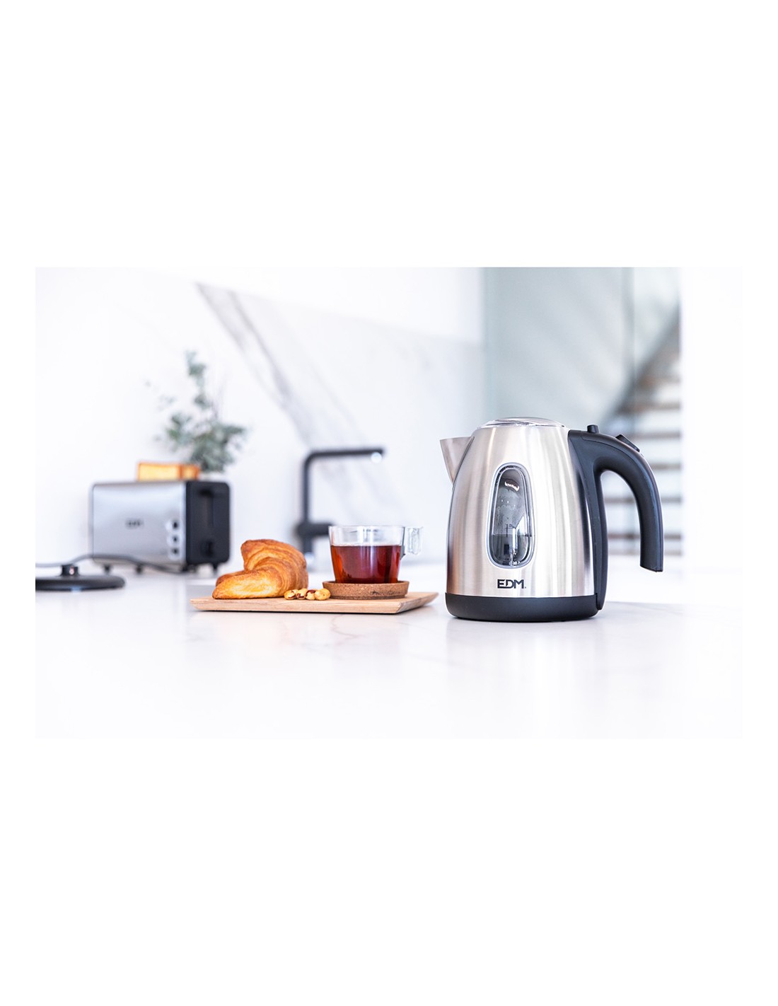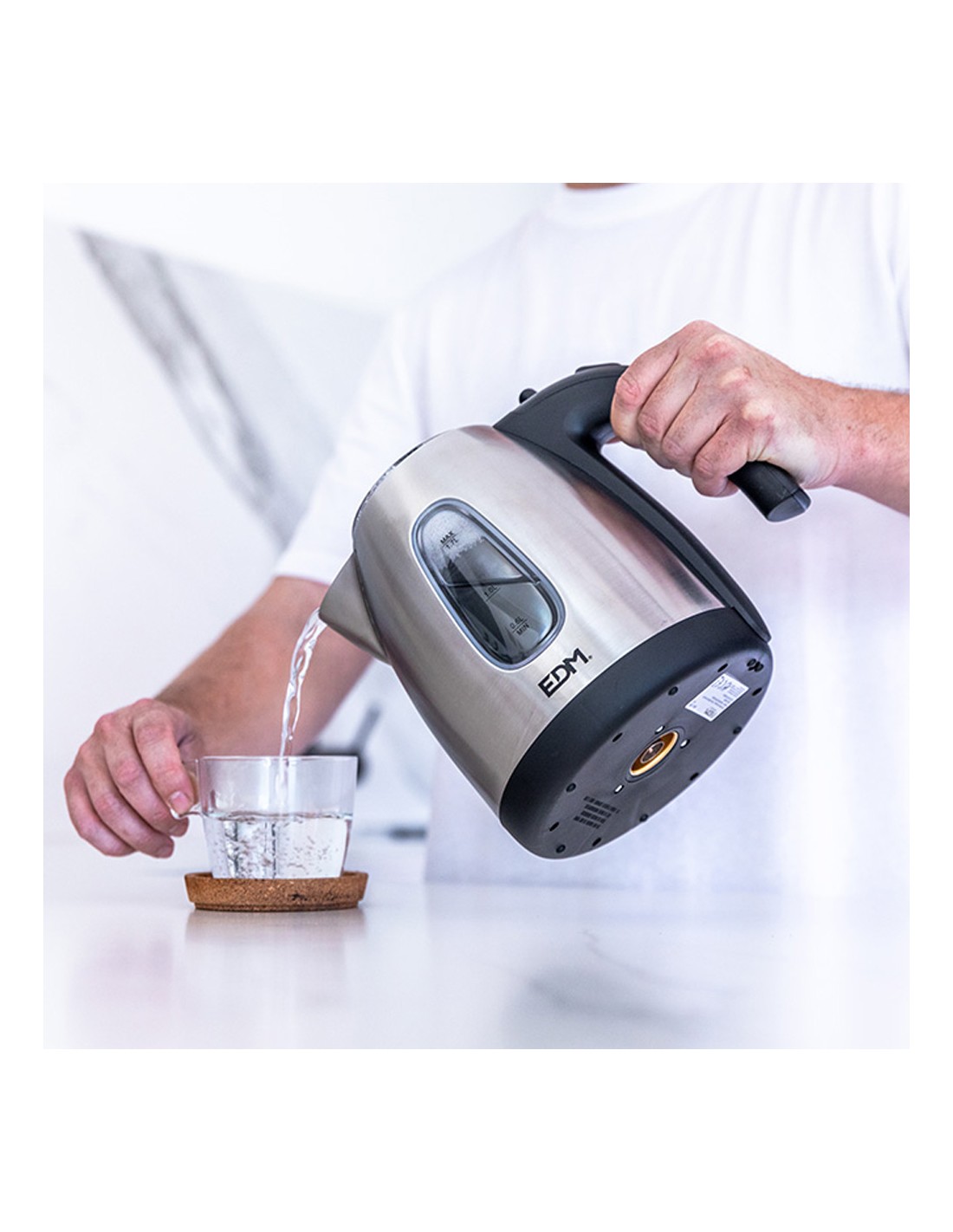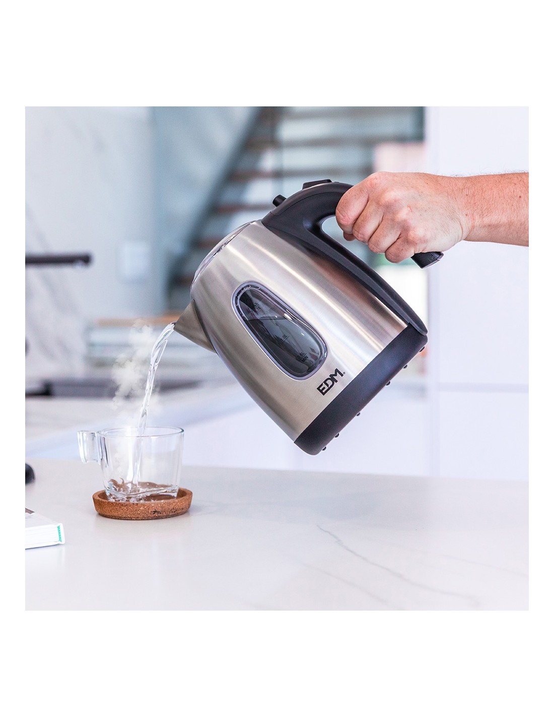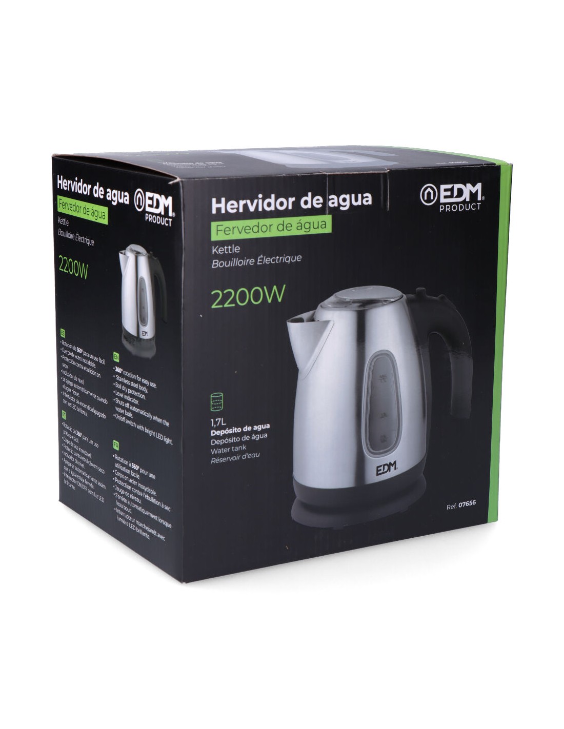 Hervidor de agua electrico "kettle" potencia: 2200w. 1,7l. tetera inhalambrica. cuerpo de acero inoxidable. filtro desmontable y lavable. apagado automatico y manual. indicador de nivel. piloto luminoso led. dimensiones: ø16,5x23cm (diámetro/alto) 220-240v 50hz edm. libre de bpa.