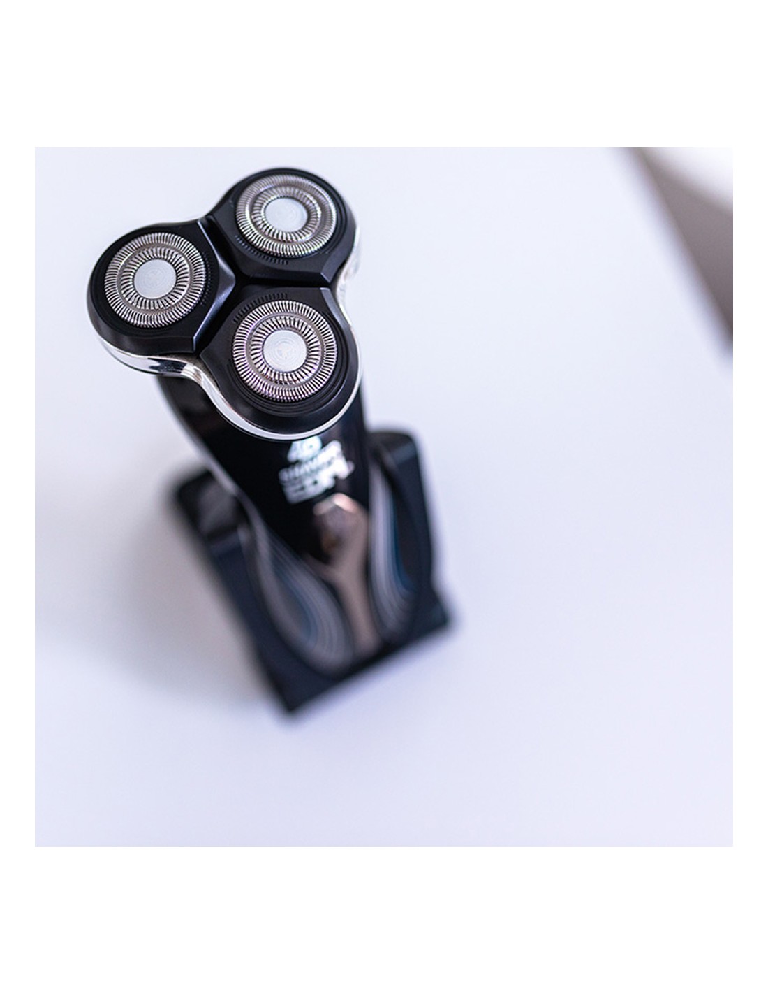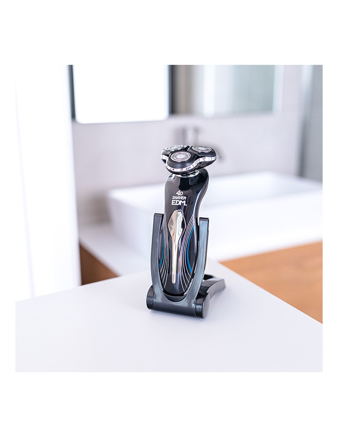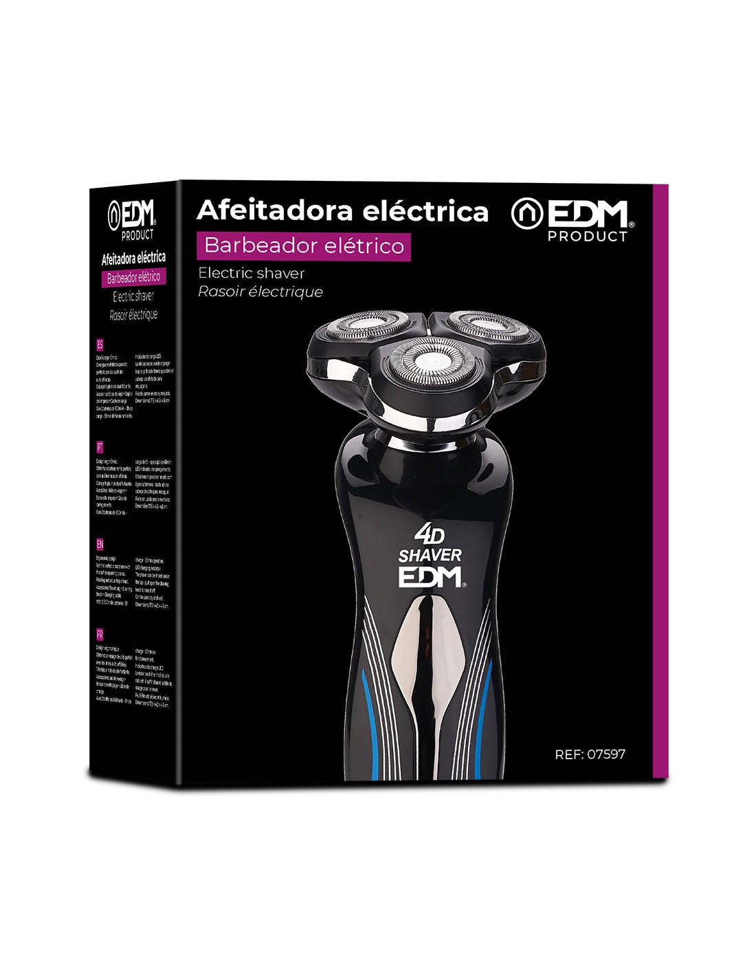 Afeitadora electrica recargable. inalambrica. potencia 3w, cuchillas auto-afiladas. cabezal triple individual flotante. accesorios: cepillo de limpieza + adaptador + 2 baterias de ni-mh - 8h de carga 60min de funcionamiento, indicador de carga led. lavable abriendo el cabezal de afeitado para enjuagarlo. dimensiones: 6,5x7x16cm (ancho/fondo/alto) 110-240v 50hz edm