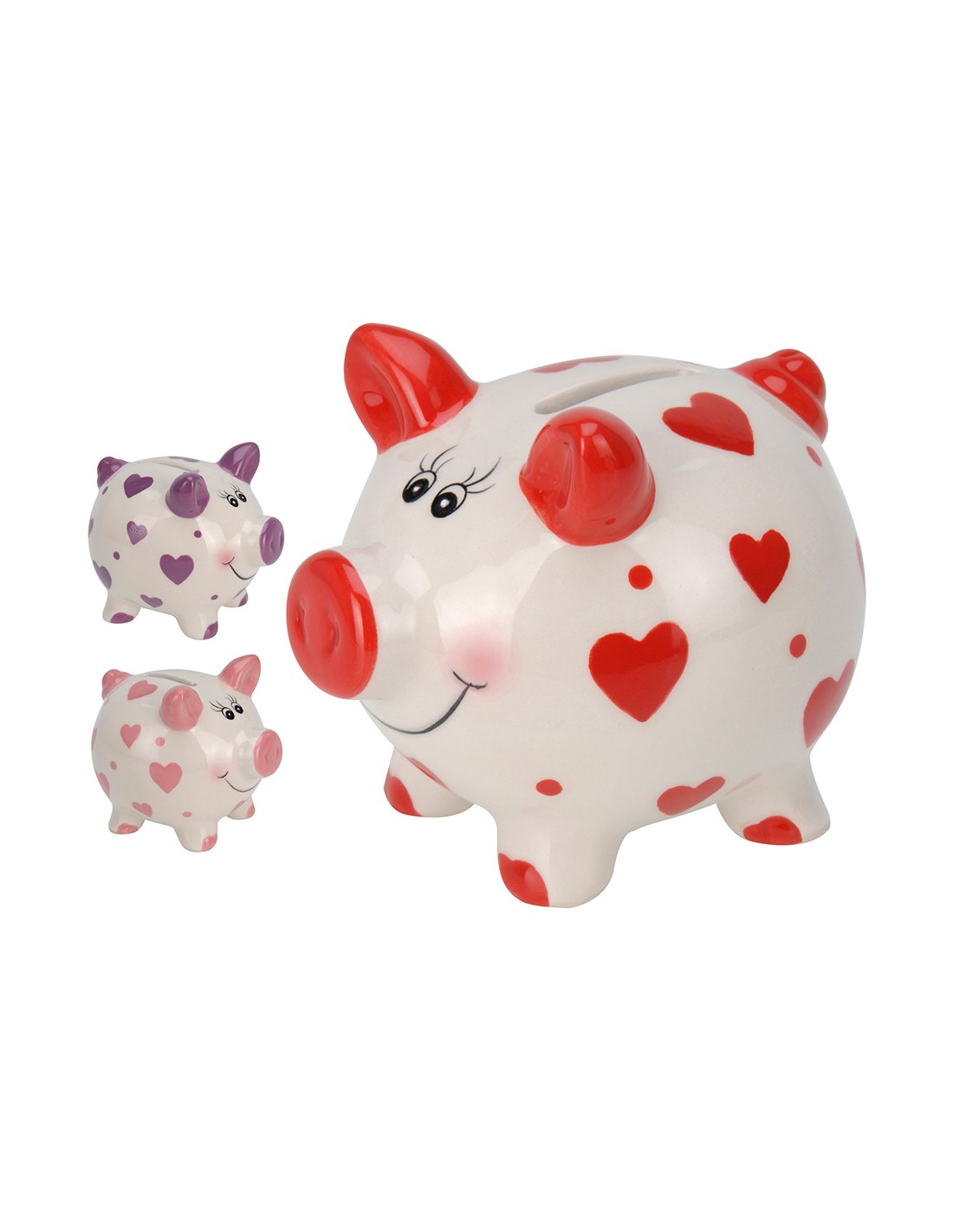 Hucha cerdito con corazones 9x7,5x8cm modelos surtidos colores / modelos surtidos