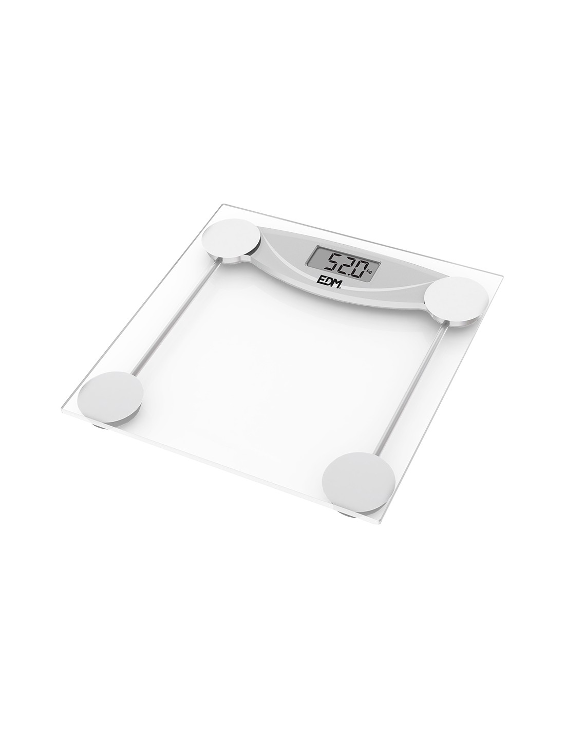 Bascula de baño digital transparente max 180kg edm. acabado cristalizado para una mayor facilidad de limpieza. perfil ultrafino para ocupar el menor espacio posible (22mm). división de lectura 0.1kg. pantalla lcd con tamaño de lectura 62x28mm. peso máximo de lectura 180kg. funciona con una sola pila cr2032. edm dimensiones 28x2x28 cm