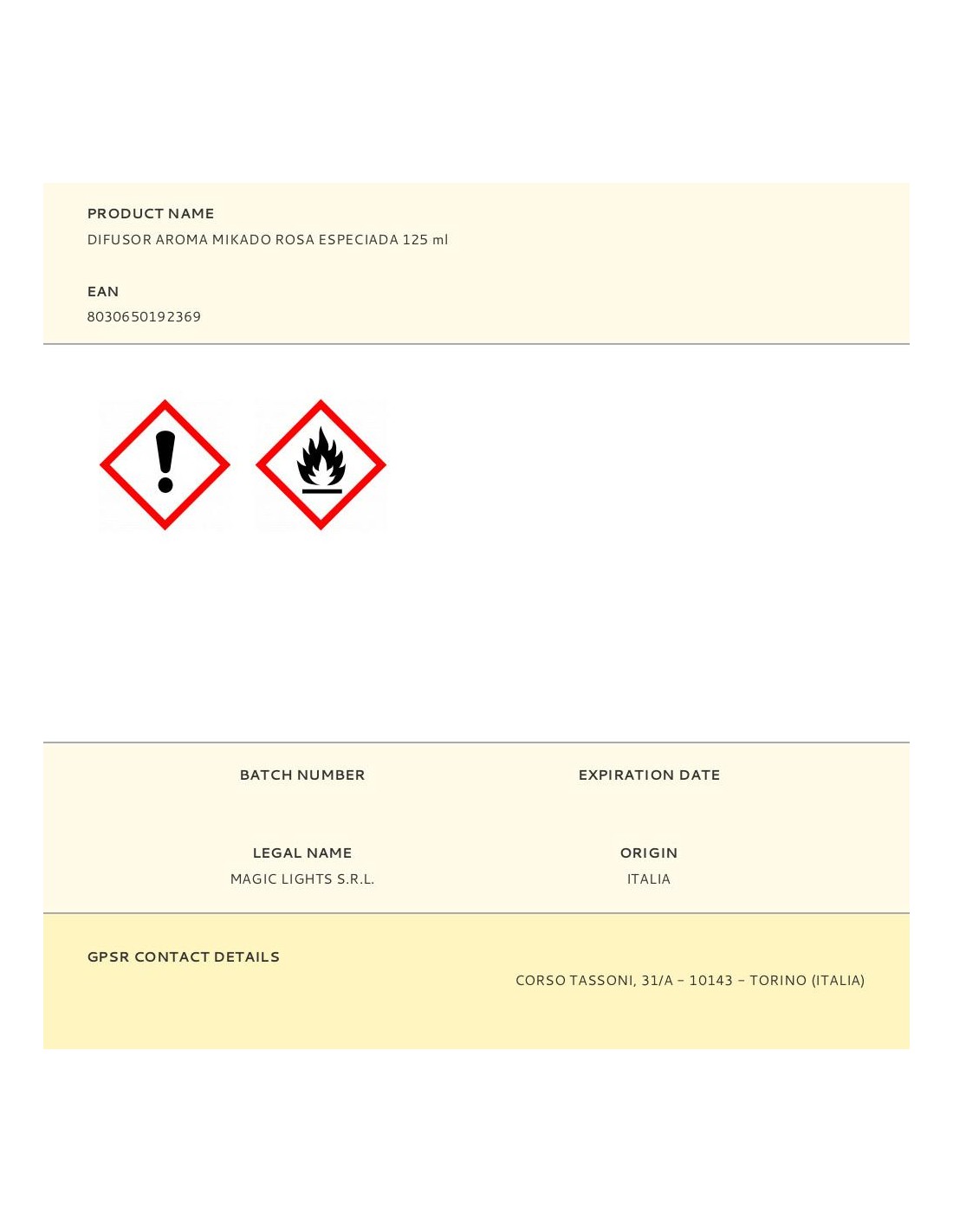 Difusor aroma mikado rosa especiada 125ml 5,9x3,9x9cm magic lights