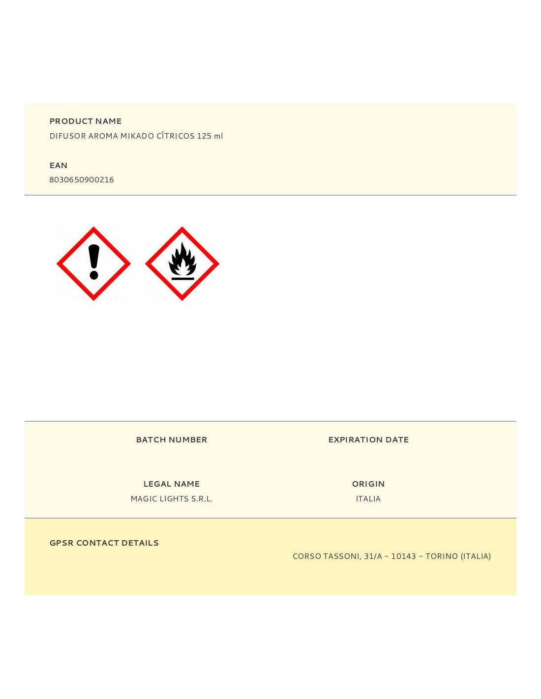 Difusor aroma mikado cítricos 125ml 5,9x3,9x9cm magic lights
