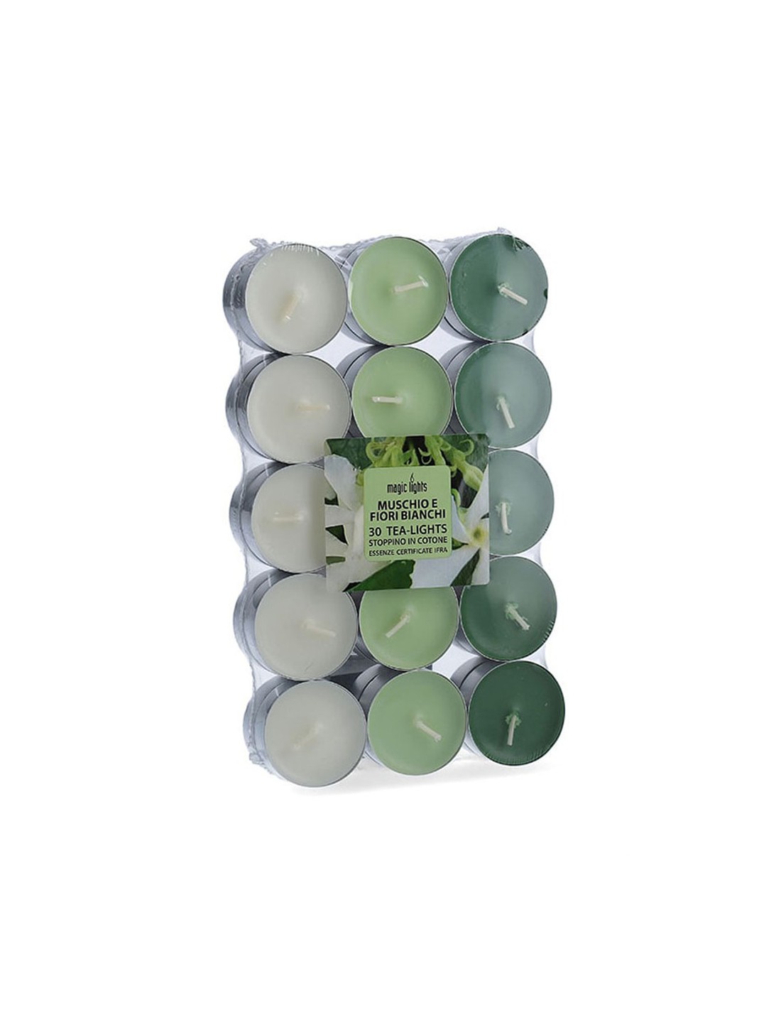 Pack 30 unid. velas con aroma musk-flores blancas 3,7cm magic lights