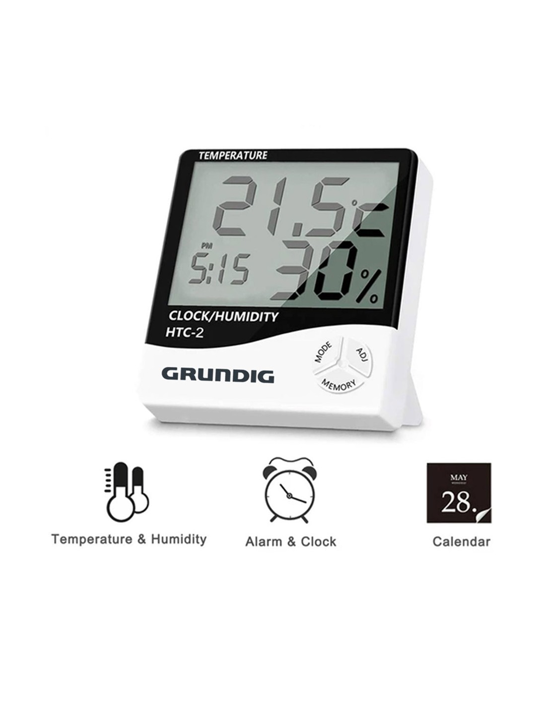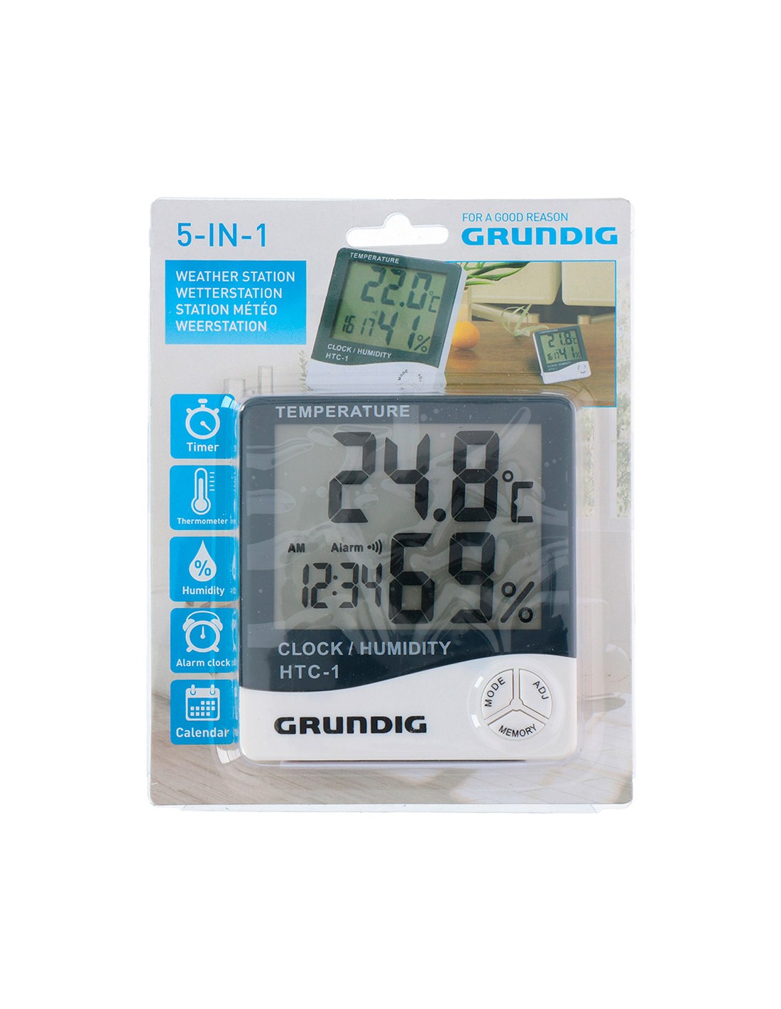Estacion meteorologica grundig incluye: alarma, termometro, humedad, y calendario. funciona con una pila aaa no incluida. +50c/-10c