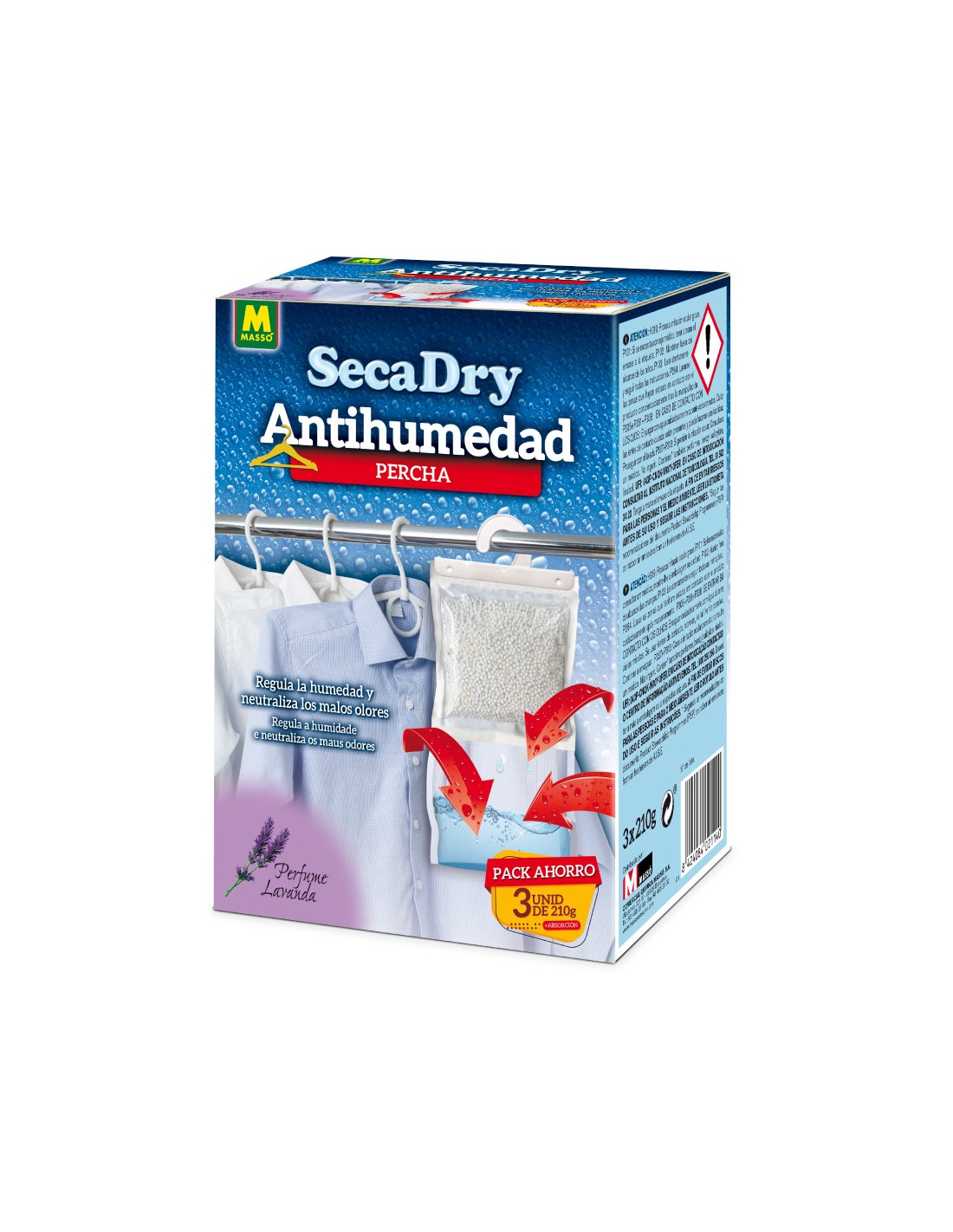 Secadry pack 3 perchas antihumedad 3 x 210 g. uso en armarios y roperos. regula la humedad ambiental