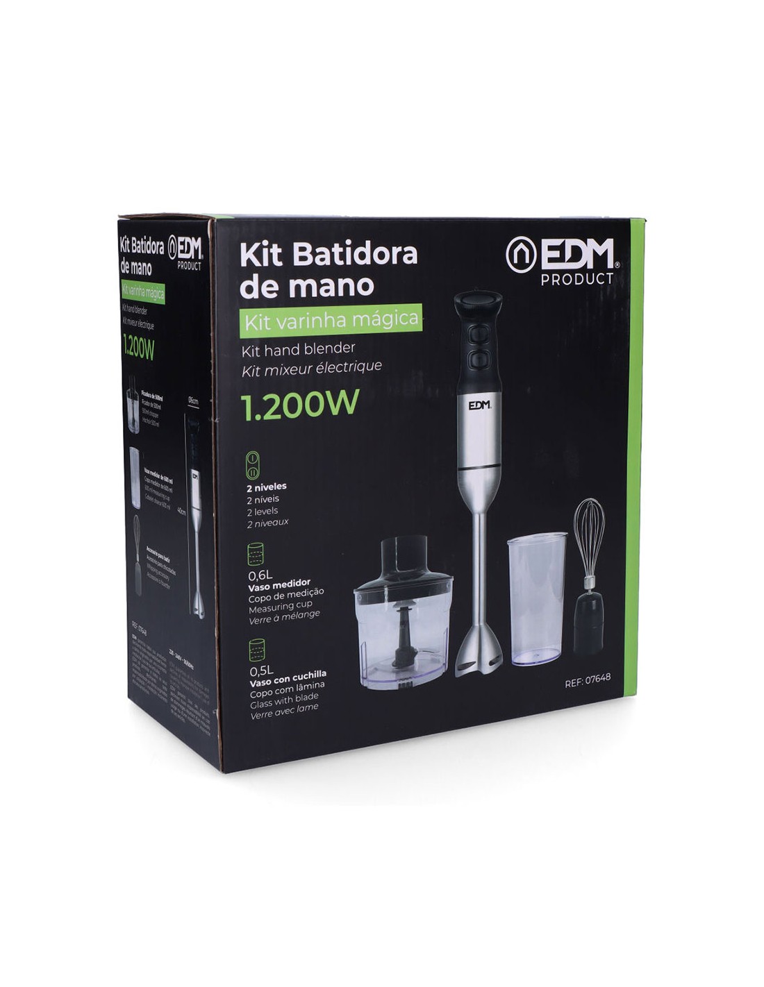 Batidora de mano. potencia: 1200w con accesorios. mango ergonomico. 2 niveles de potencia + turbo. cuchillas de acero inoxidable. dimensiones: ø6x40cm (diámetro/alto) 220-240v~50hz