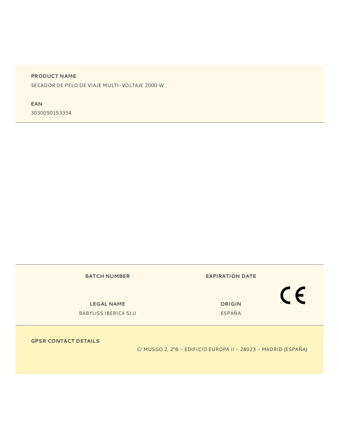 Secador de viaje 2000w babyliss. multi-voltaje, velocidad del aire 79km/h, dos ajustes de temperatura y velocidad. mango plegable, 318g. boquilla concentradora, cable profesional de 1,8m. con garantía de 3 años. servicio técnico propio http://www.presat.es/talleres/buscar-sat