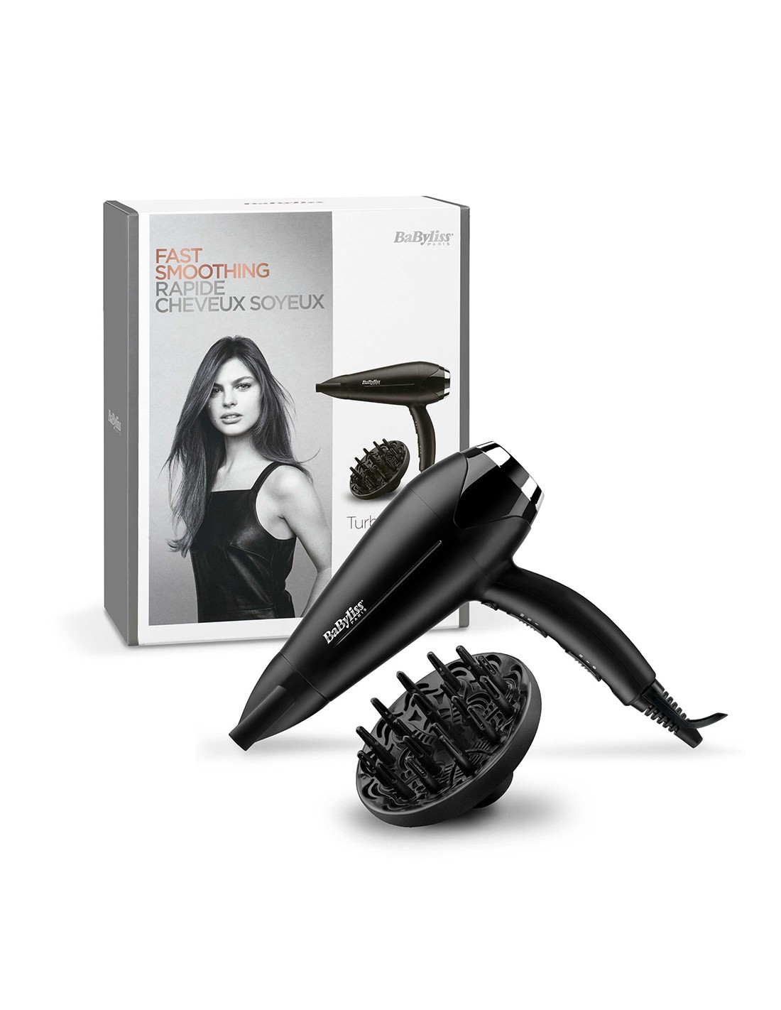 Secador iónico turbo smooth 2200w babyliss. velocidad del aire 91km/h, tres ajustes de temperatura, ajuste de aire frio, dos ajustes de velocidad, iónico: neutraliza electricidad estática, peso 409g, boquilla concentradora estrecha, difusor, filtro trasero desmontable, cable profesional de 1,95m. garantía de 3 años. servicio técnico propio http://www.presat.es/talleres/buscar-sat