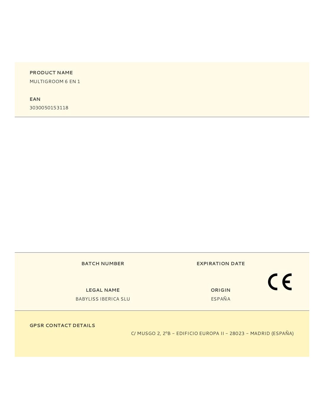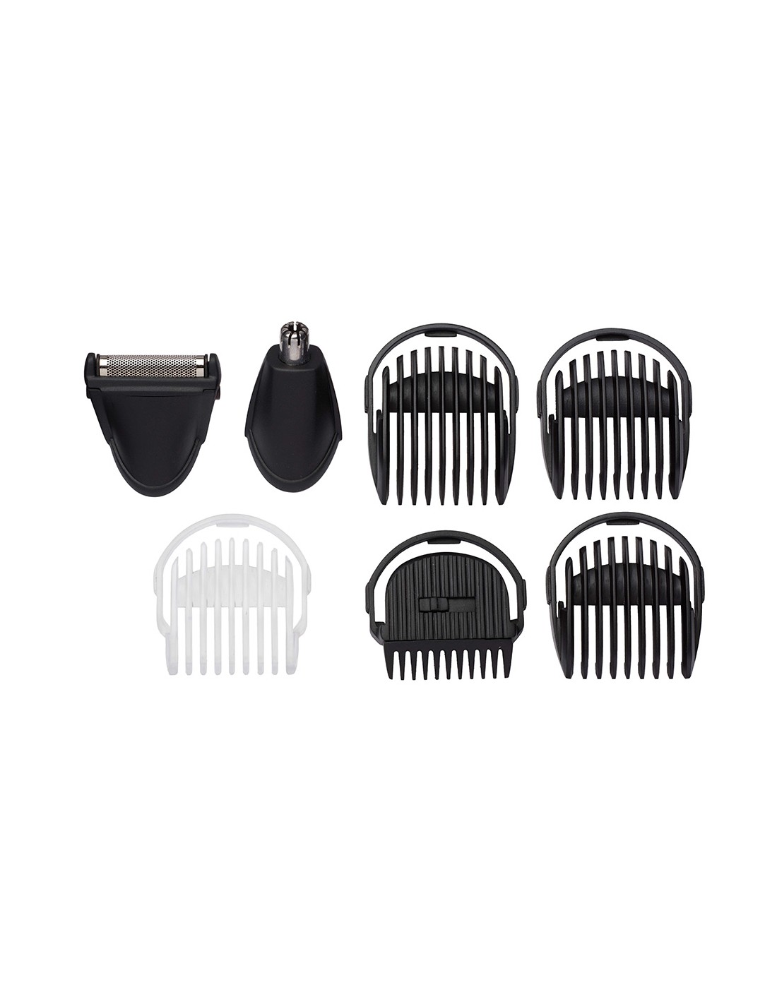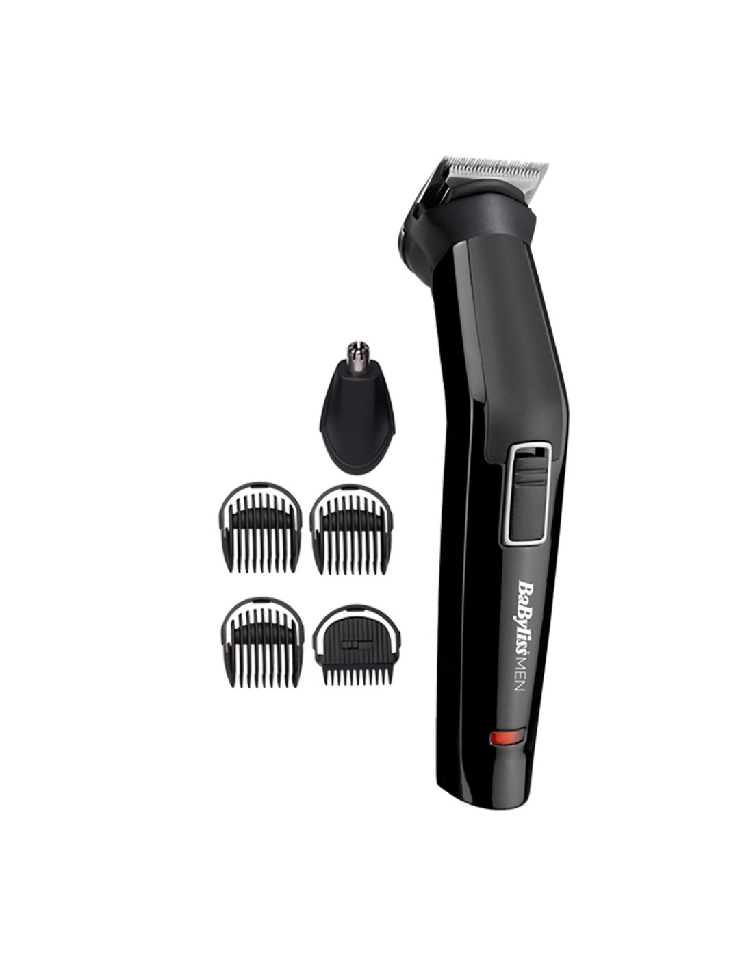 Multigroom 6 en 1 mt725e babyliss. cuchillas de acero inoxidable, cuchillas de 34mm, uso sin cable de 60 minutos de autonomía, 8h de carga. 1 cabezal de mantenimiento "barba 3 días" de 1mm a 3,5mm. 3 cabezal para barba (5,6 y 7mm), naricero y orejero. incluye bolsa de almacenamiento y cepillo de limpieza. garantía de 3 años.