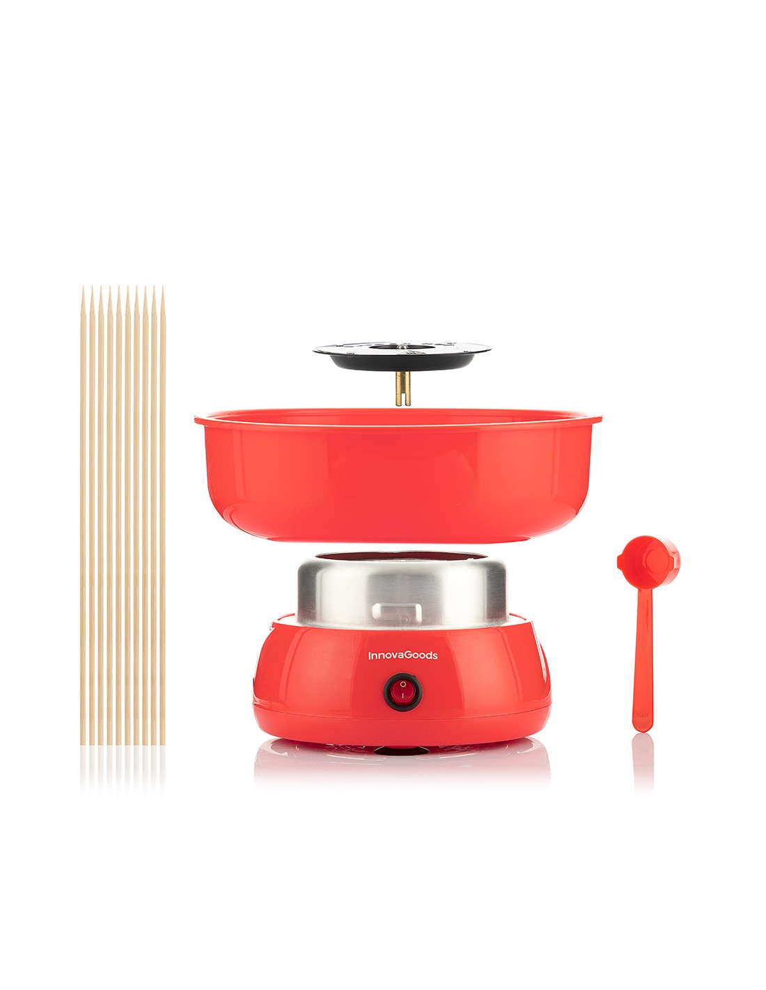Máquina de algodón de azucar v0103610 innovagoods. incluye 10 palos de bambú y una cuchara medidora. tiene una tapa superior transparente para ver la fabricación del algodón de azúcar. ideal para que niños y adultos disfruten de esta dulce y apetitosa experiencia en familia con amigos en fiestas, cumpleaños, eventos especiales, etc. potencia 400w, 220-240v/50-60hz, longitud del cable: 1,1m. medidas aproximadas: ø27x18cm (diámetro/alto)