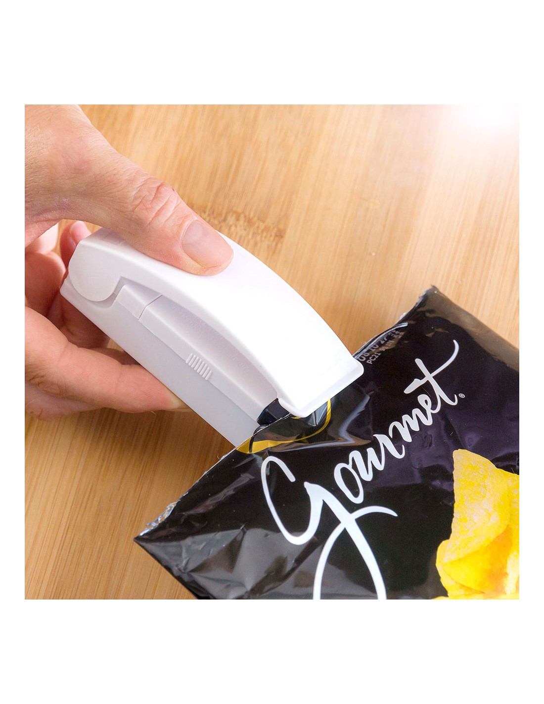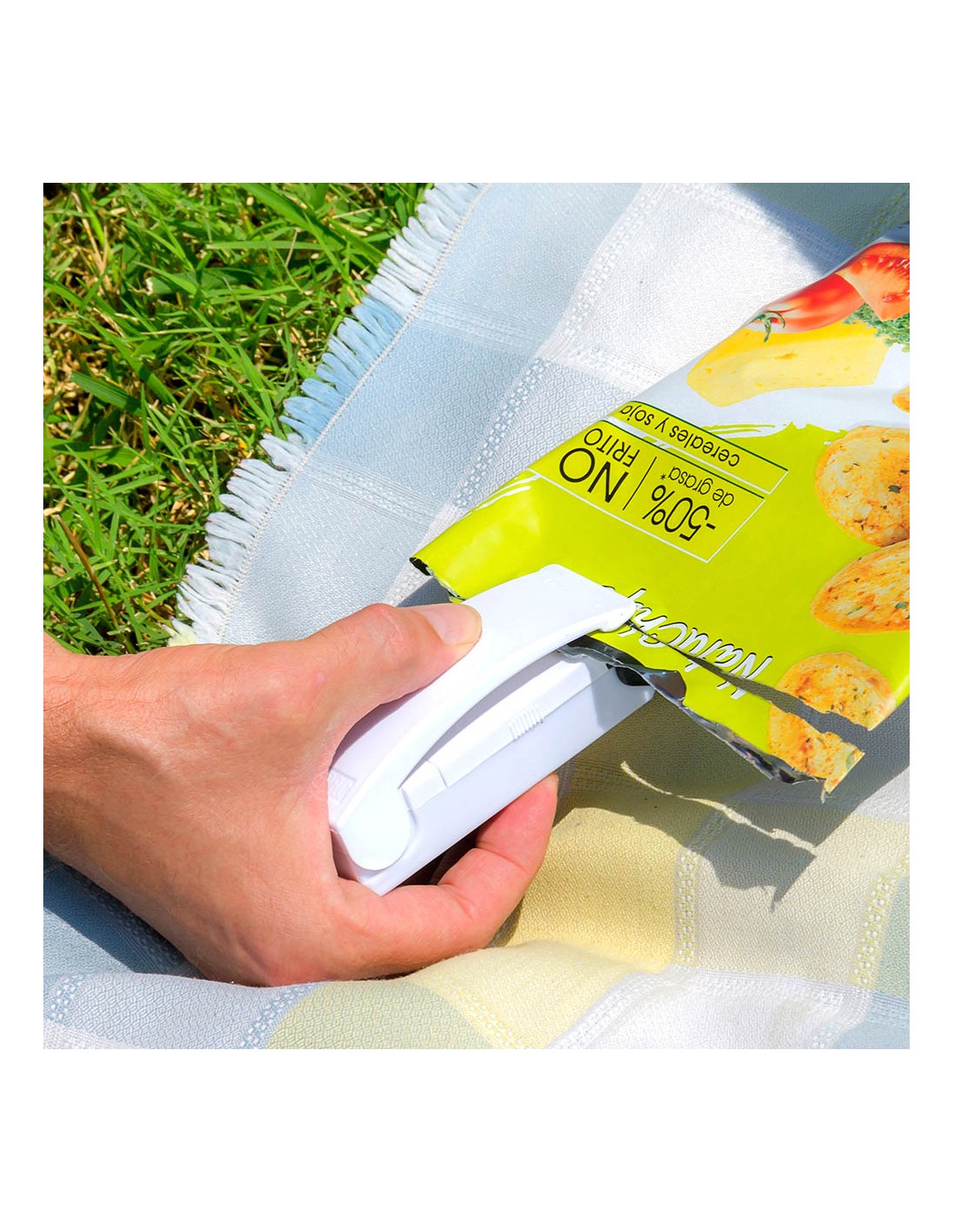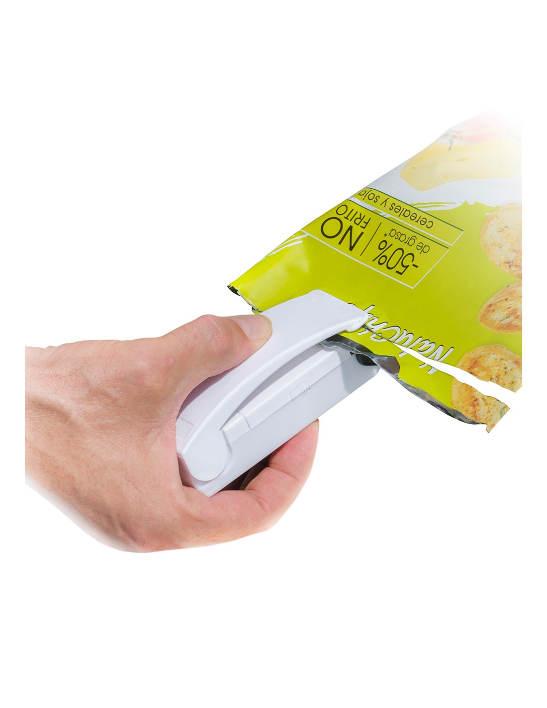 Selladora de bolsas con iman innovagoods. una selladora de bolsas al vacío con imán para nevera que permite cerrar herméticamente las bolsas de alimentos, prolongando y mejorando su conservación sin perder sus propiedades. por su diseño ligero, compacto y portátil, es muy fácil de usar, transportar y guardar en cualquier parte. esta moderna selladora de bolsas eléctrica funciona con pilas (2xaa, no incluidas), lo cual facilita su uso sin necesidad de cables ni enchufes. su funcionamiento es muy sencillo, simplemente hay que deslizar los extremos de la bolsa entre las láminas selladoras cuando estén calientes, de manera que la bolsa quedará cerrada herméticamente en un solo movimiento. además, es multifunción, ya que al ser magnética, puede colocarse en la nevera o en cualquier superficie metálica para tenerla siempre a mano y para utilizarla como imán de nevera portanotas, etc.
