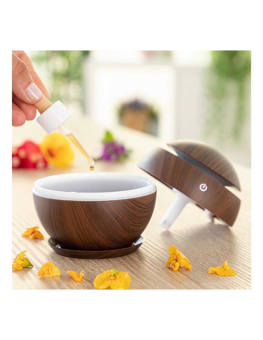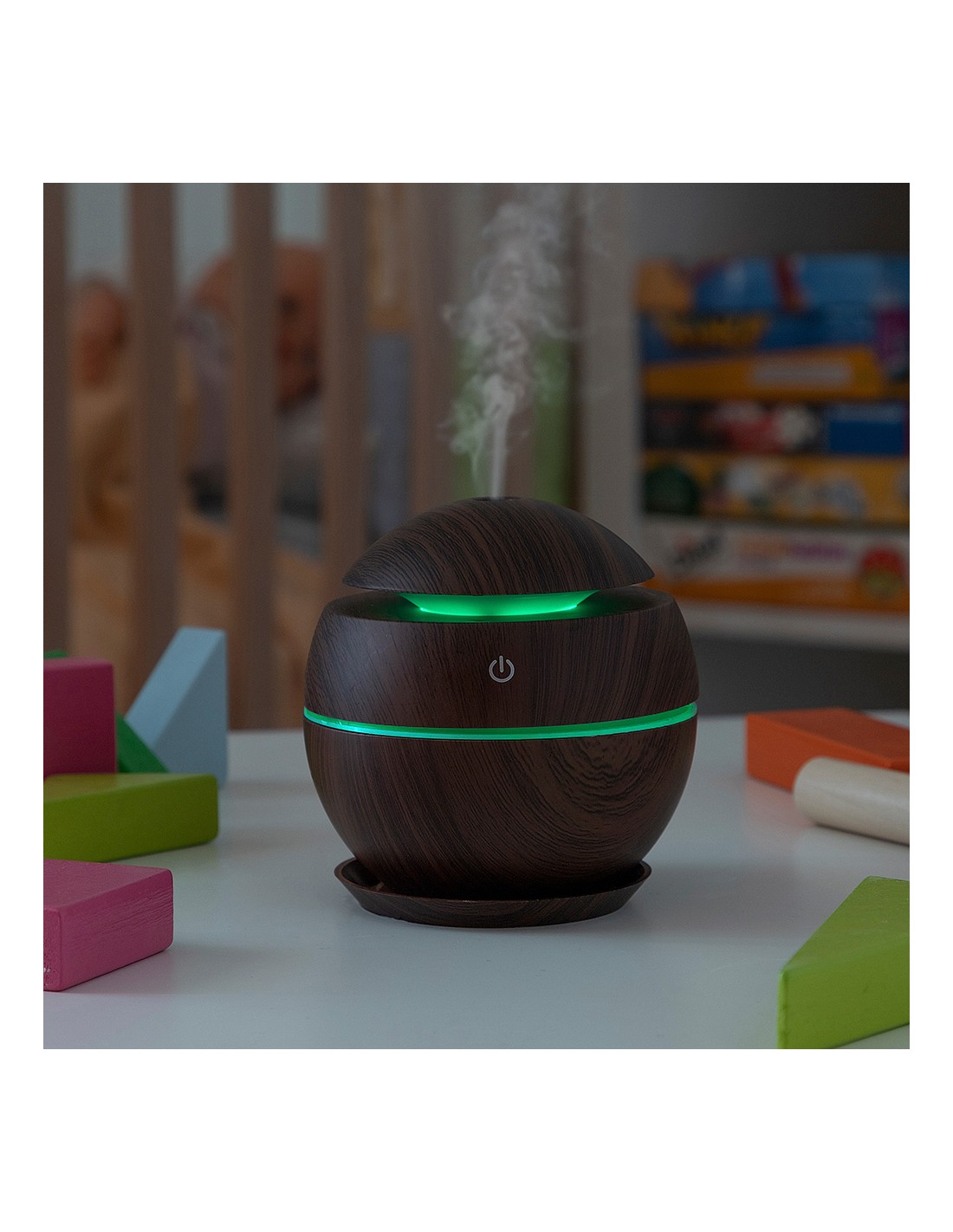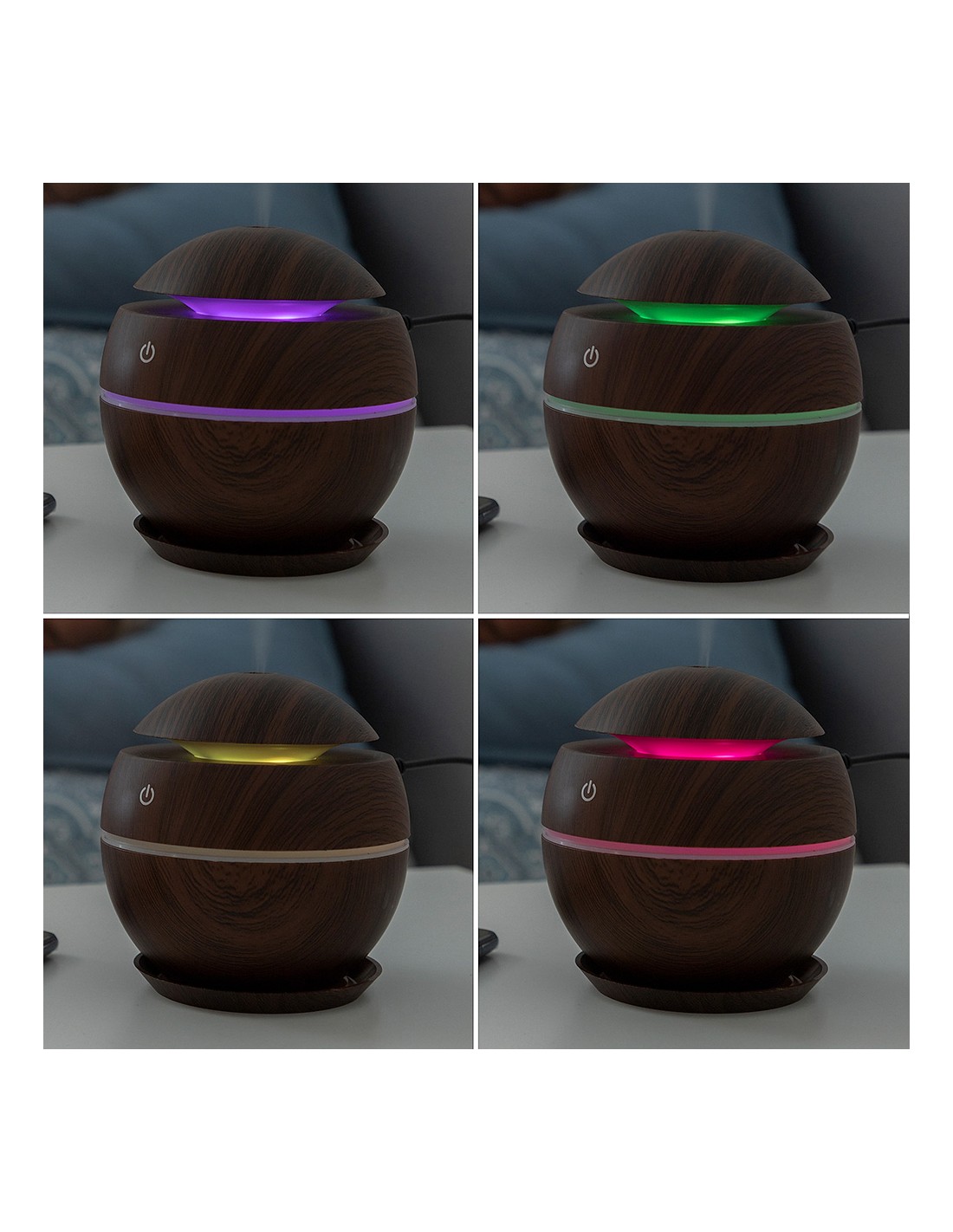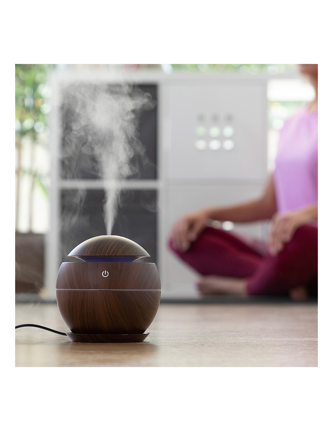 Mini humidificador difusor de aromas dark walnut innovagoods. mejora la calidad del aire y aromatiza el ambiente. material: abs, botón táctil: on/off, capacidad: 130ml, ultrasónico silencioso, secuencia led multicolor, larga duración: 7h, pulverización: 30ml/h 500ma/5v/2w, funciona con conexión usb (incluye cable dc-usb), apagado automático al agotarse el agua, no incluye aceites esenciales, medidas aprox.: ø10x10cm (diámetro/alto)