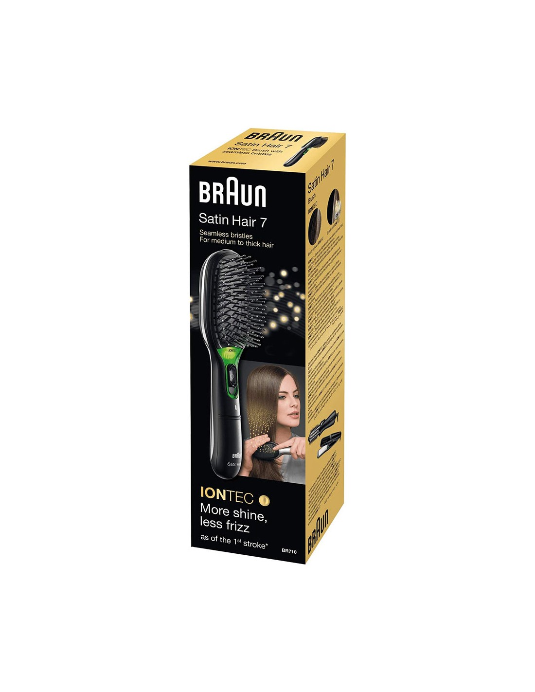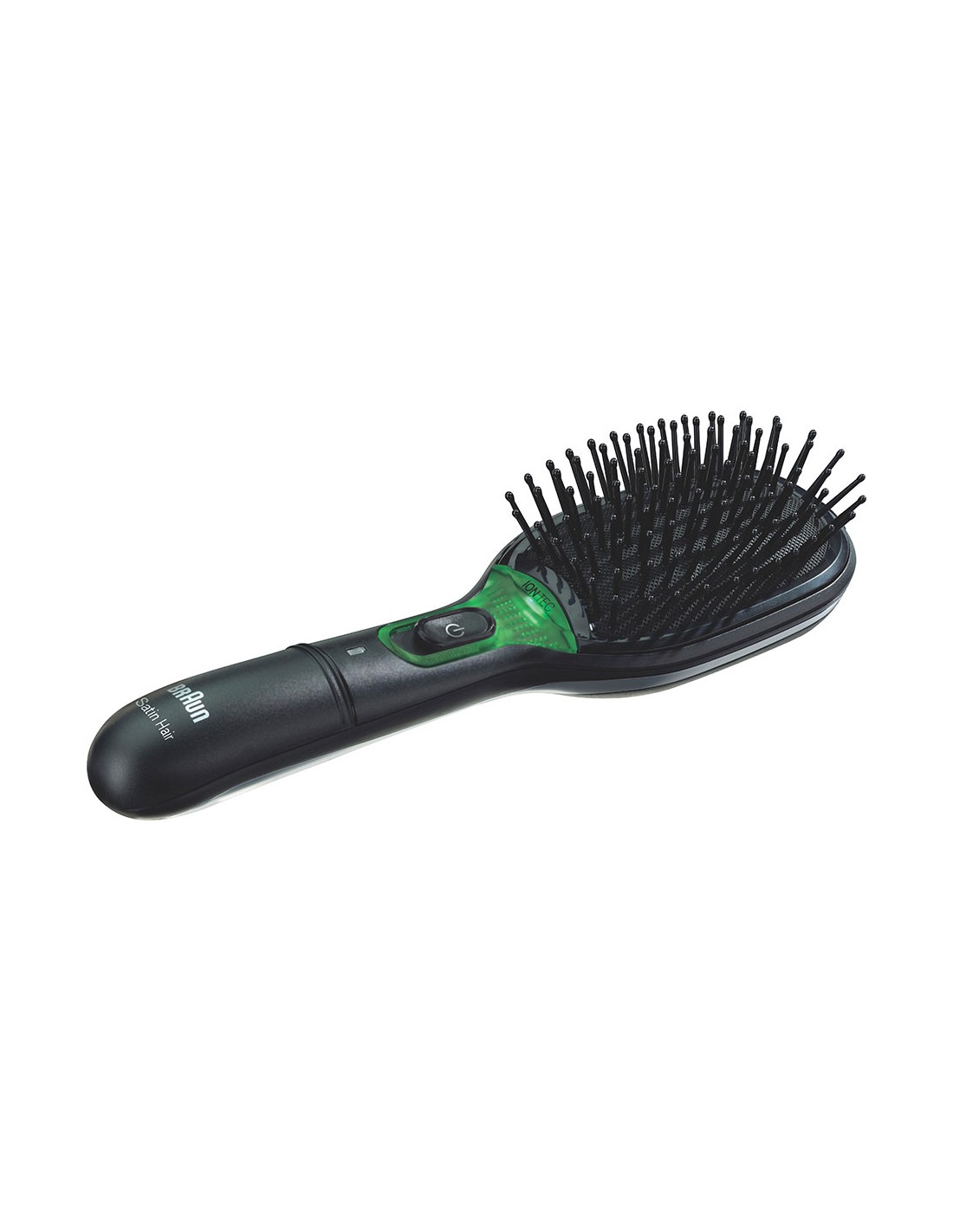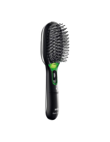 Cepillo satin hair 7 br710e braun con iontec y cerdas naturales, negro. cepillo con iones activos, que aumentan visiblemente el brillo del cabello desde la primera pasada. cerdas naturales que ofrecen un cepillado suave. almohadilla desmontable para facilitar la limpieza del cepillo. funciona con pilas incluidas. apagado automático.
