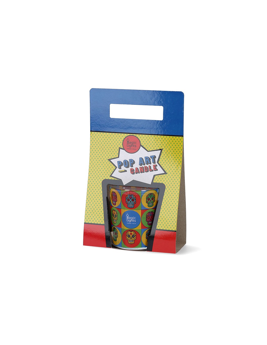 Vela en vaso pop art ø7,5x8,4cm skull magic lights