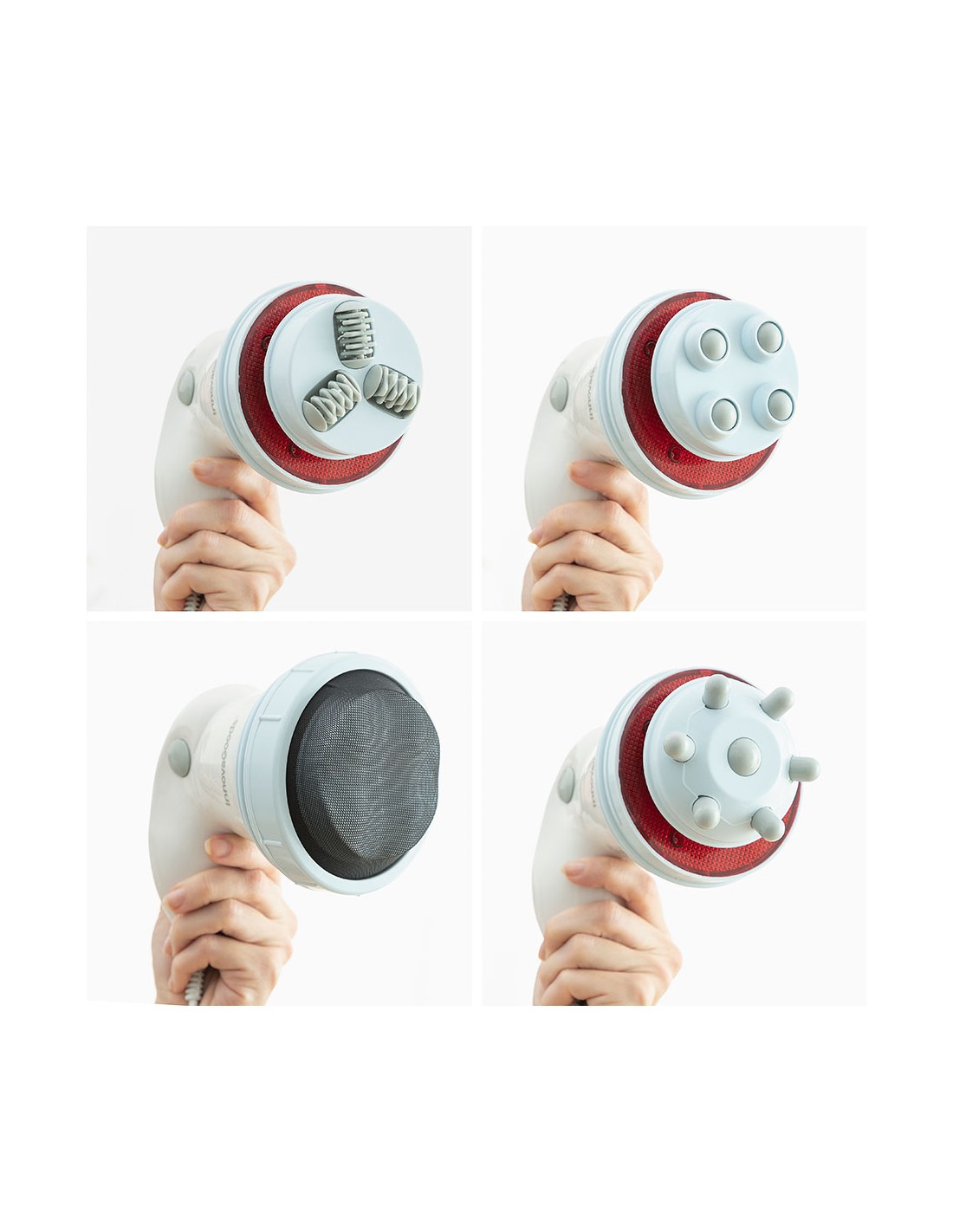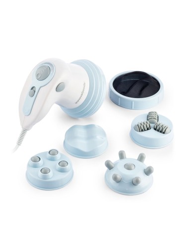Masajeador anticelulítico vibratorio con infrarrojos 5 en 1 cellyred v0103224 innovagoods un masajeador anticelulítico con calor infrarrojo que actúa eficazmente sobre la grasa acumulada, mejorando el aspecto y la elasticidad de la piel. gracias a su diseño multifunción, combate la celulitis y la flacidez, aunque también es ideal para proporcionar gran relax y bienestar mediante agradables masajes. su movimiento de rotación+vibración y el calor infrarrojo potencian y mejoran los resultados. la función de infrarrojos se puede desactivar si se desea usar sin calor. incluye 5 cabezales diferentes para una total adaptación, según la zona del cuerpo a tratar y el tipo de masaje o efecto que se quiera conseguir: profundo-calmante-anticelulitis / drenante-antiflacidez-anticelulitis / tonificante-relajante / reafirmante. uno de los cabezales es una malla protectora para usar en zonas con vello. dispone de intensidad regulable y control de velocidad. su funcionamiento es muy sencillo, sólo hay que realizar movimientos lentos y circulares sobre la zona a tratar, deslizando con suavidad. apto para todo el cuerpo aunque su uso principal sea en glúteos, piernas, brazos, cintura y abdomen, también es perfecto para hombros, cuello, etc. se limpia fácilmente y se puede usar diariamente, recomendando un máximo de 20 min (aprox. 5 min en cada zona). se recomienda utilizar lociones, aceites y cremas adecuadas (no incluidos) para favorecer el uso y los resultados.