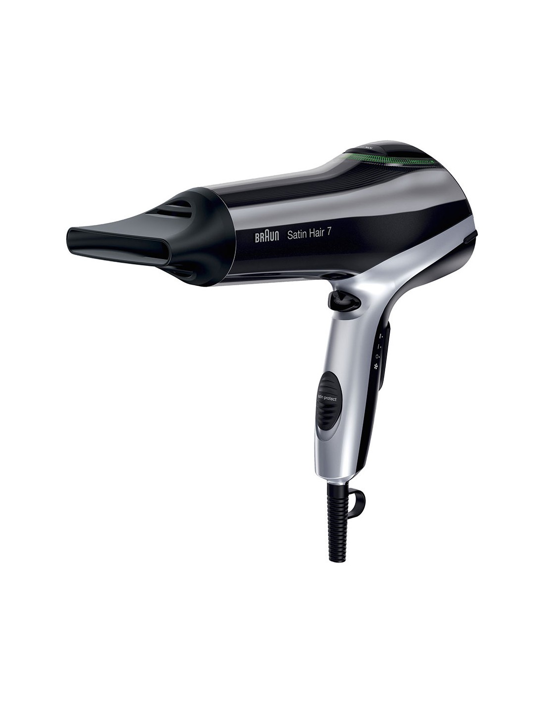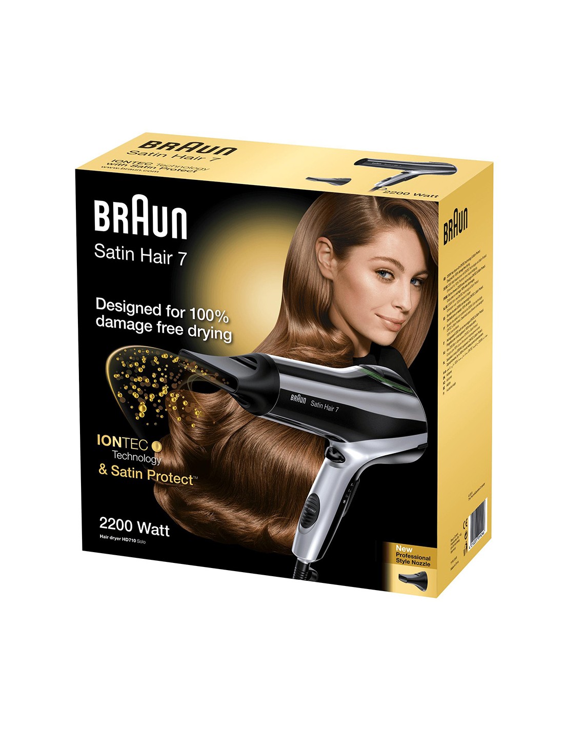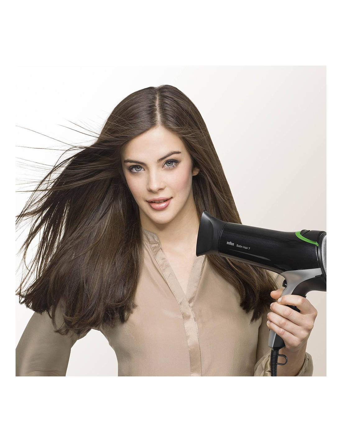 Secador de pelo braun brhd710e negro 2200w iónico. diseño de secador único con ángulo de 20°, gancho para colgar, 6 combinaciones de temperatura/flujo de aire.