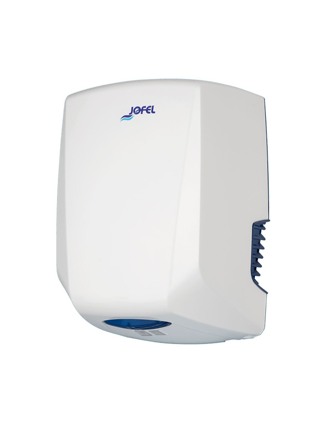 Secamanos power+ blanco jofel. secamanos óptico de altas prestaciones, fabricado en abs de alta calidad y resistencia, compacto y de reducidas dimensiones, secado en aproximadamente 10", secado por cortina de aire, secado rápido e higiénico. antivibración. filtro hepa, motor universal de bajo consumo: 800w. velocidad de salida del aire: 505km/h, incorpora aislante acústico, protección con doble aislamiento eléctrico (ip23), puede instalarse a 0,60m de toma de agua, certificado en clase ii, parada automática por tiempo. sistema de seguridad con parada. módulo electrónico en su base de fácil extracción, conexión a corriente por su base, aspiración a través de lamas laterales, filtro antipolvo, filtro hepa, baja rumorosidad (69 db), recomendable para espacios reducidos