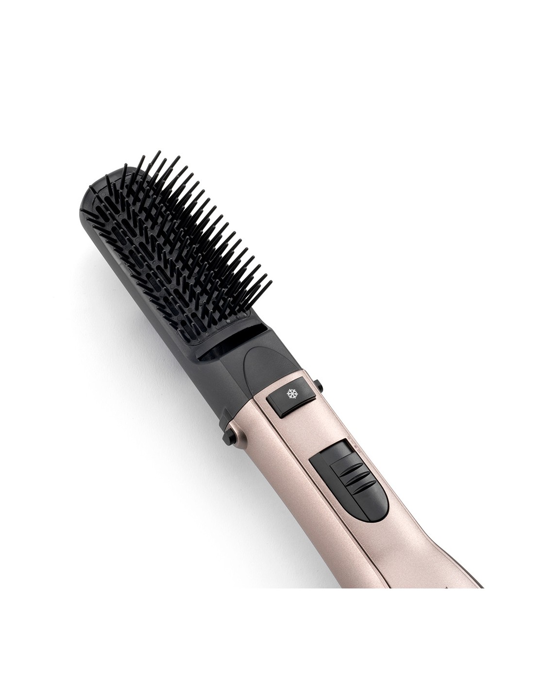 Cepillo de aire 1000w ionico espresso glacé as90pe babyliss. secado y peinado ultrarrápido. control iónico para ofrecer resultados suaves y con brillo libres de encrespamiento. cepillo ovalado de turmalina-cerámica para agregar volumen al cabello. boquilla de secado alisadora. 2 ajustes de temperatura más botón de aire frio. cable giratorio de 2,2m