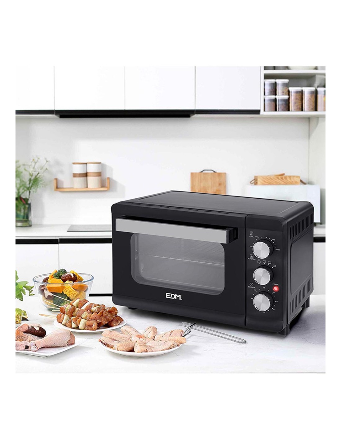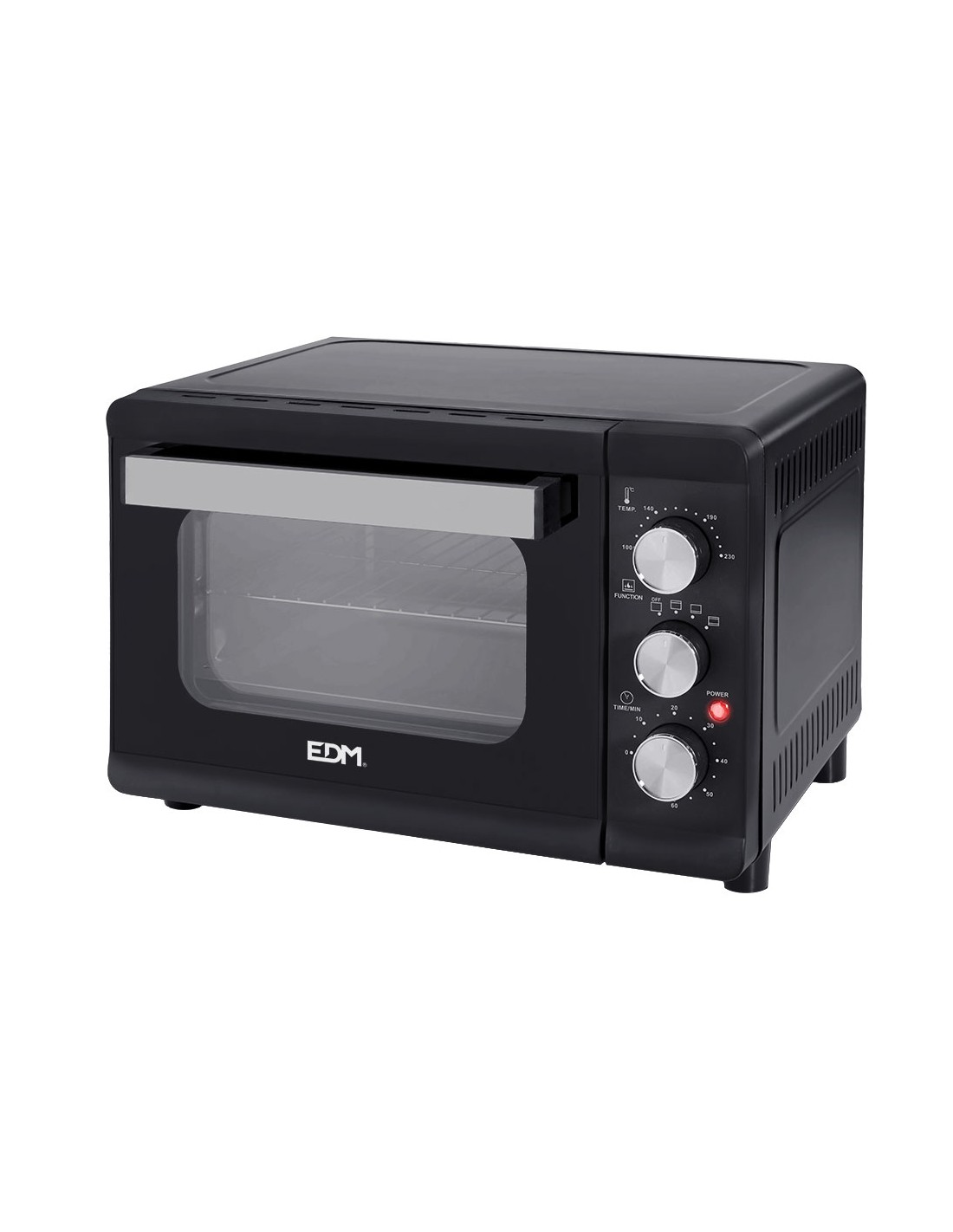 Horno sobremesa electrico 23 litros 1.380 w . temporizador con avisador hasta 60 minutos. temperatura 80 a 230°. 4 posiciones de horneado: apagado, solo superior, solo inferior, superior + inferior. luz indicadora de funcionamiento. puerta de cristal templado doble. patas antideslizantes. medidas: 46 x 35 x 31 cm
