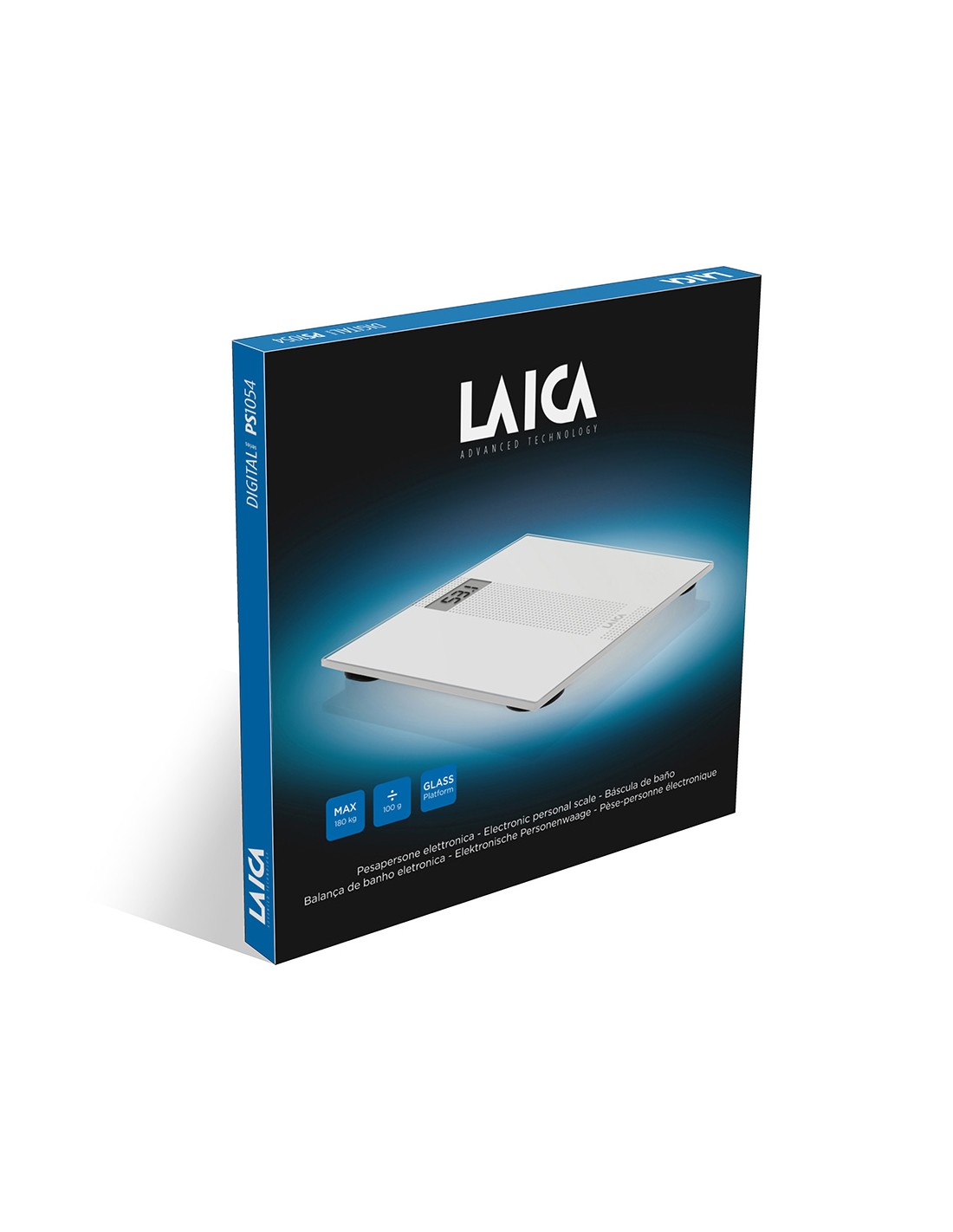 Báscula electrónica de baño blanca 180kg ps1054 laica. cristal templado de 6mm. baterias incluidas 30,3x30,3x2cm (ancho/fondo/alto)