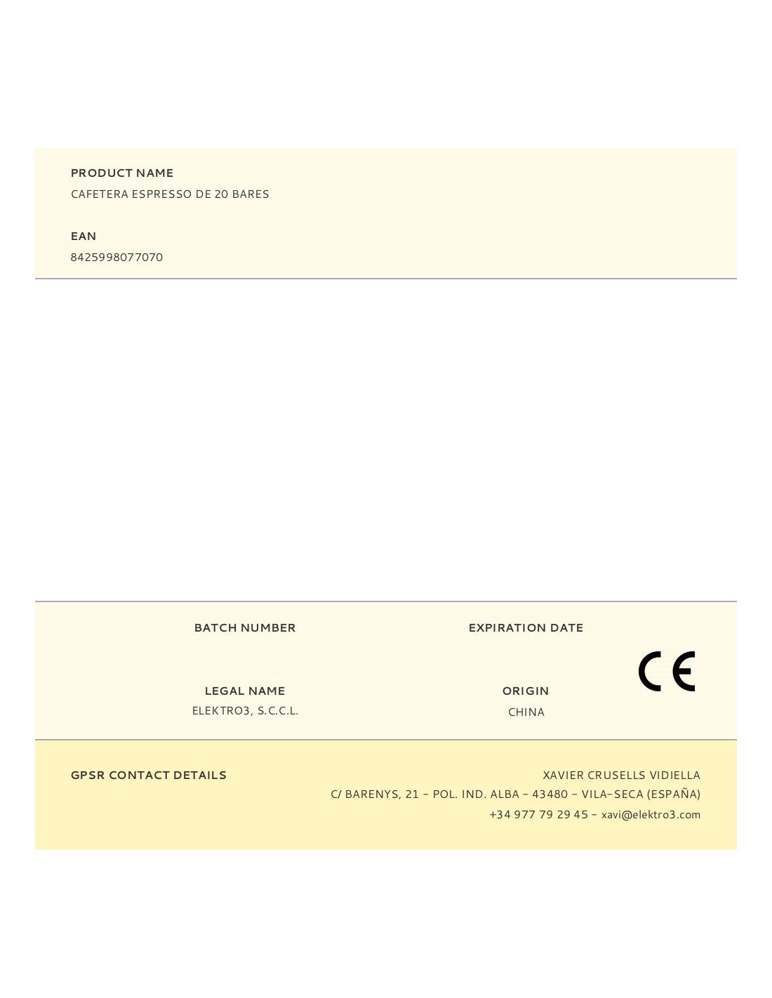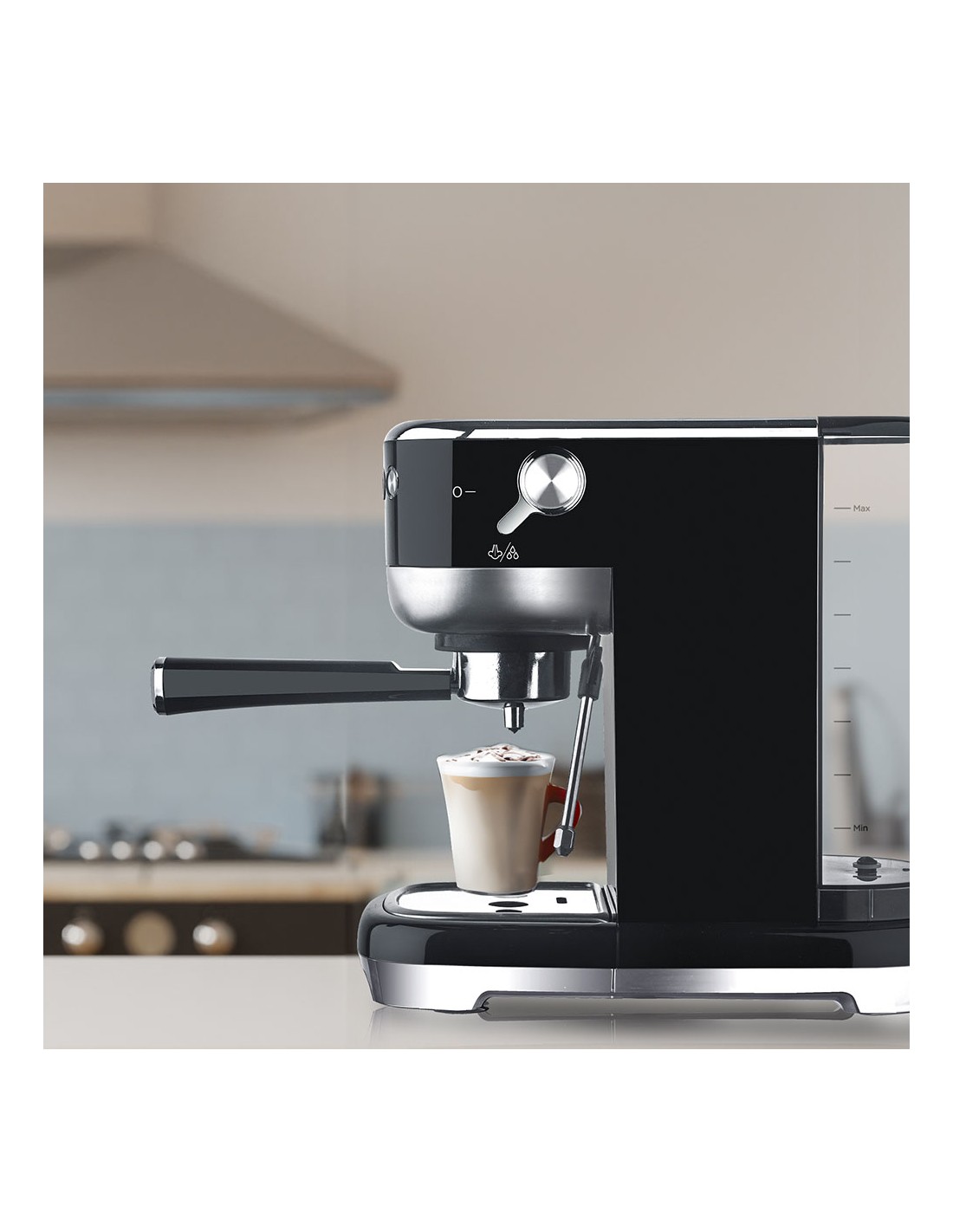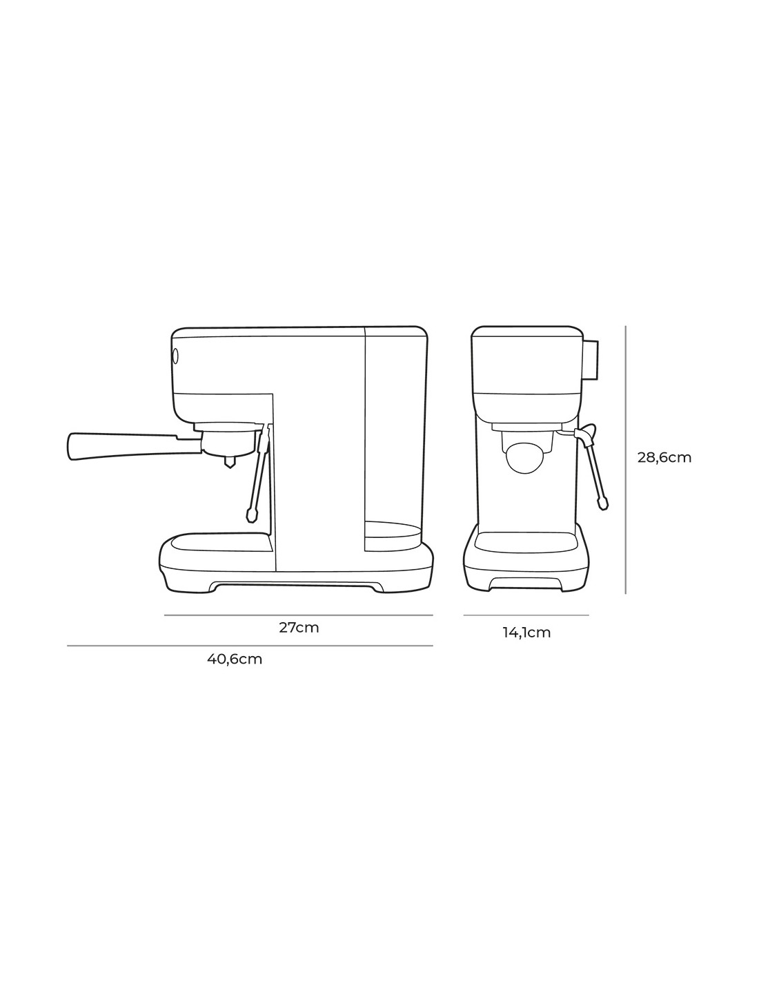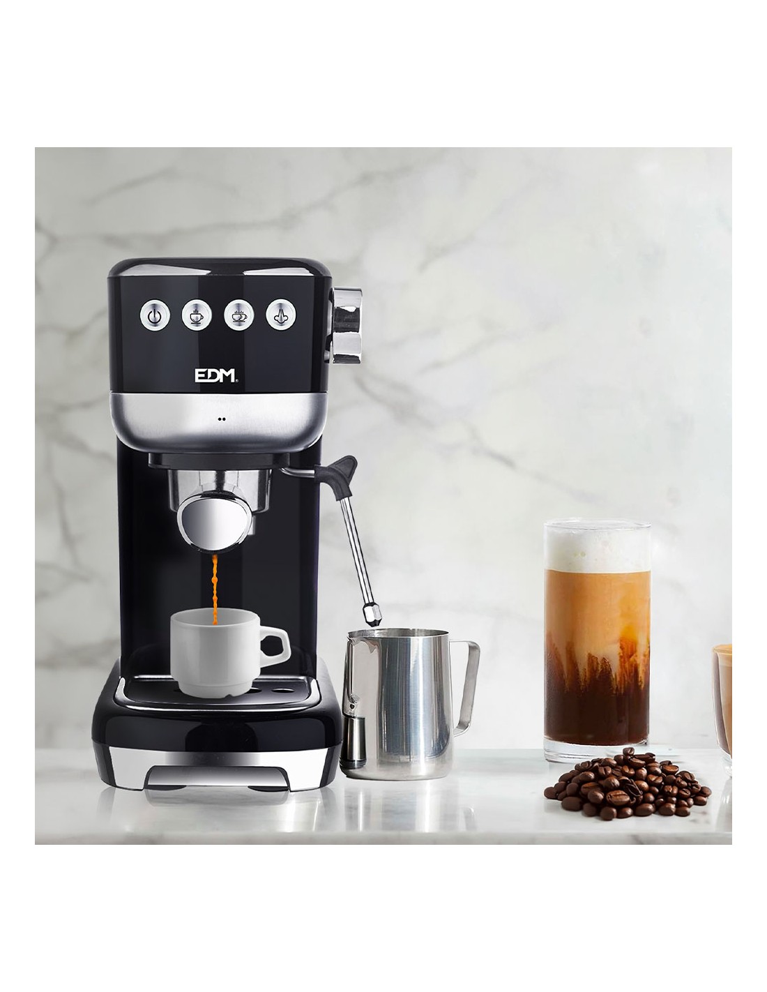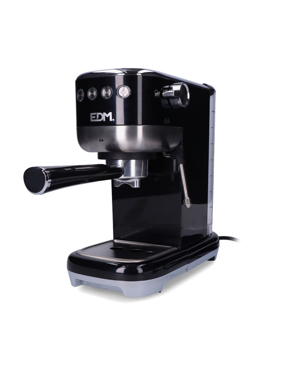 Cafetera espresso de 20 bares edm. depósito de agua de 1,3l. modo para una y dos tazas. incluye función de parada automática para preparar un espresso perfecto, infusionando la cantidad exacta de café sin que el usuario deba detenerla manualmente. vaporizador para espumar leche y calentar agua. bandeja recoge gotas desmontable. protección contra sobrecalentamiento y sobrepresión. botones con luz led. caldera de aleación con tubo de acero inoxidable. incluye filtro para una taza. no incluye molino de café.14,1 x 40,6 x 28,6 cm