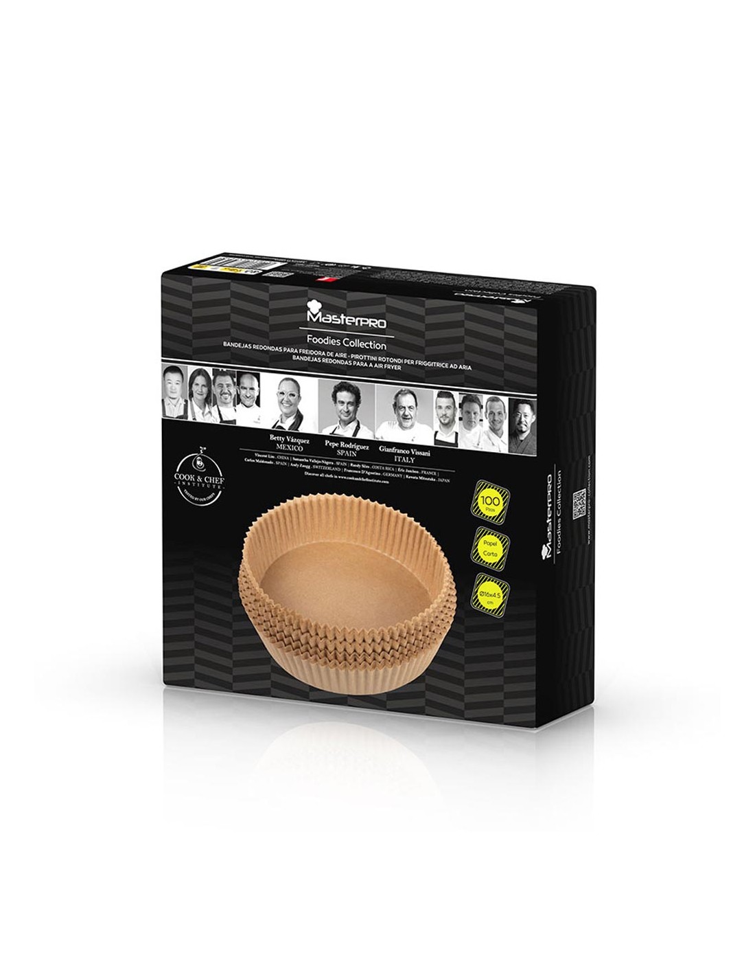 Bandeja de papel para freidora de aire medidas ø16x4,5cm (diámetro/alto) bgmp-7602 masterpro borde redondo color marron contiene 100 unid.