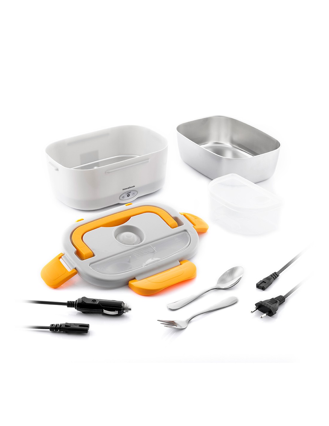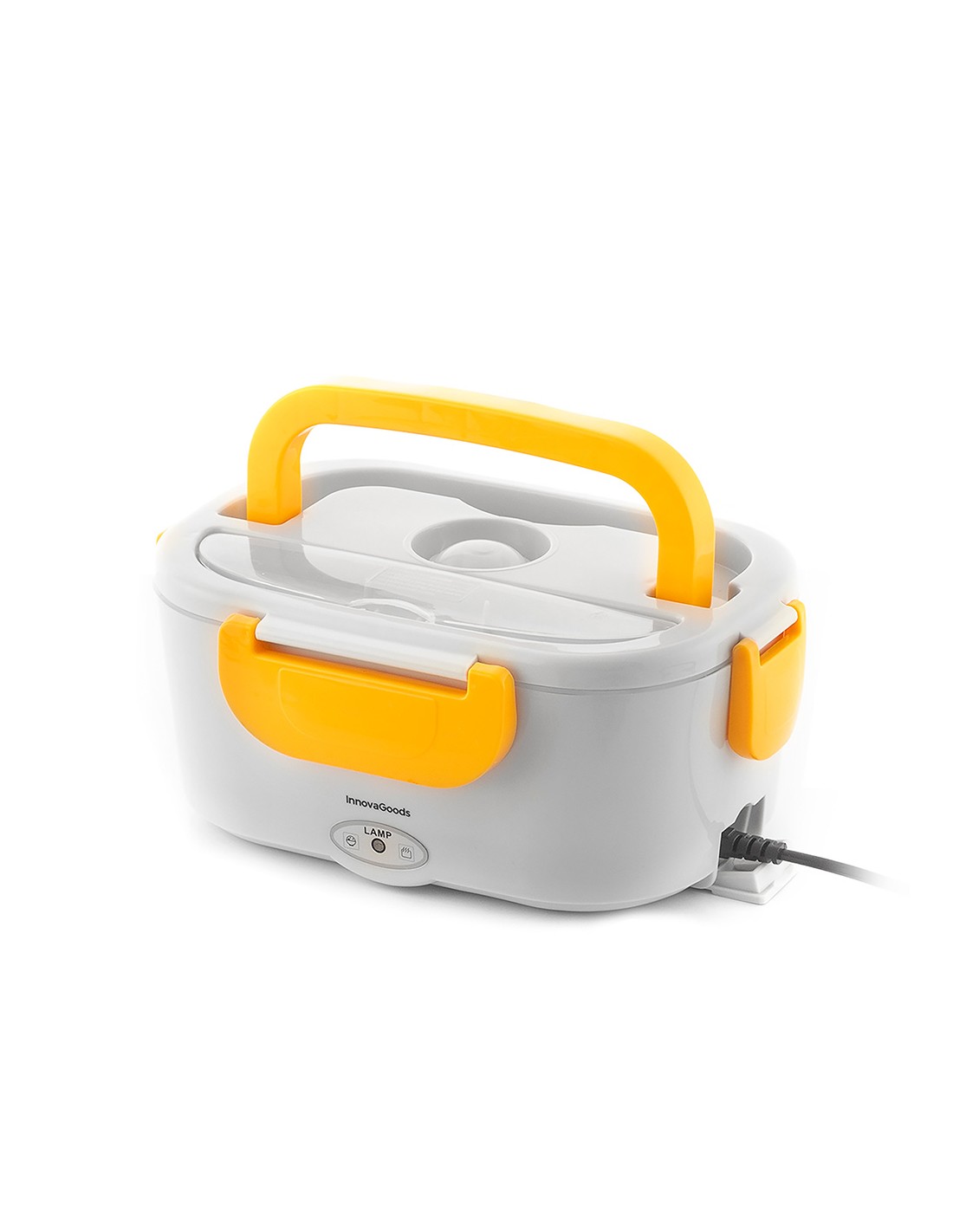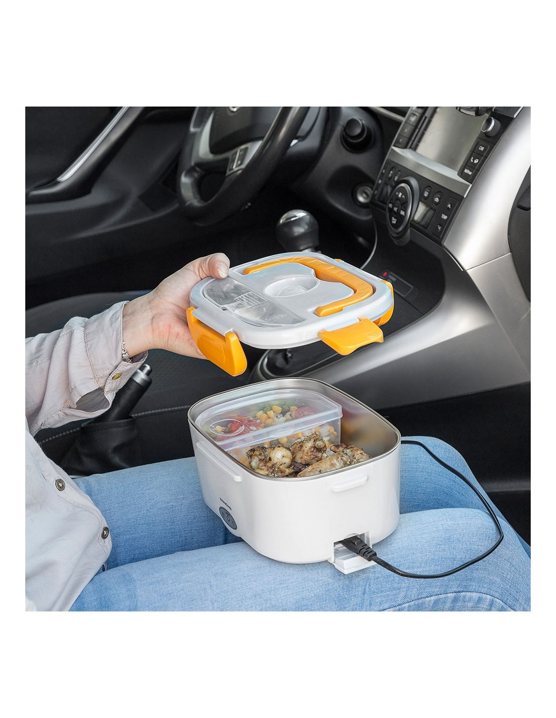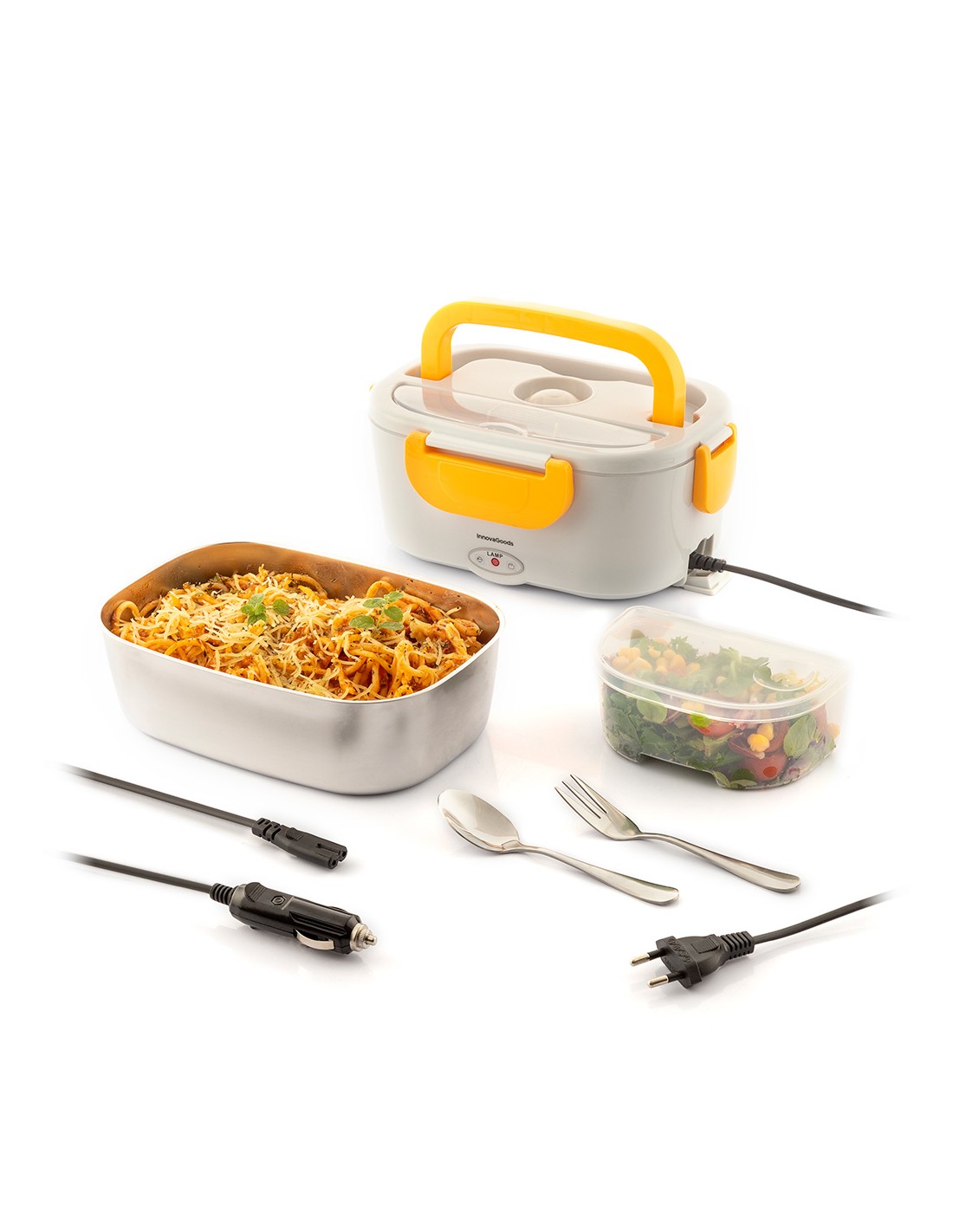 Fiambrera eléctrica para oficina y coche, para calentar comidas,con capacidad de 1,05l y potencia de 60w. cable extraible 80 cm. tipo enchufe c. alcanza hasta 90°c. incluye válvula de vapor, asa plegable, cierres de seguridad y cable extraible adaptador para el coche (12v 5a). 23,5 x 10,5 x17 cm