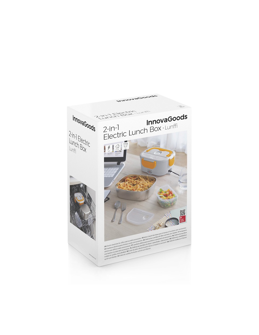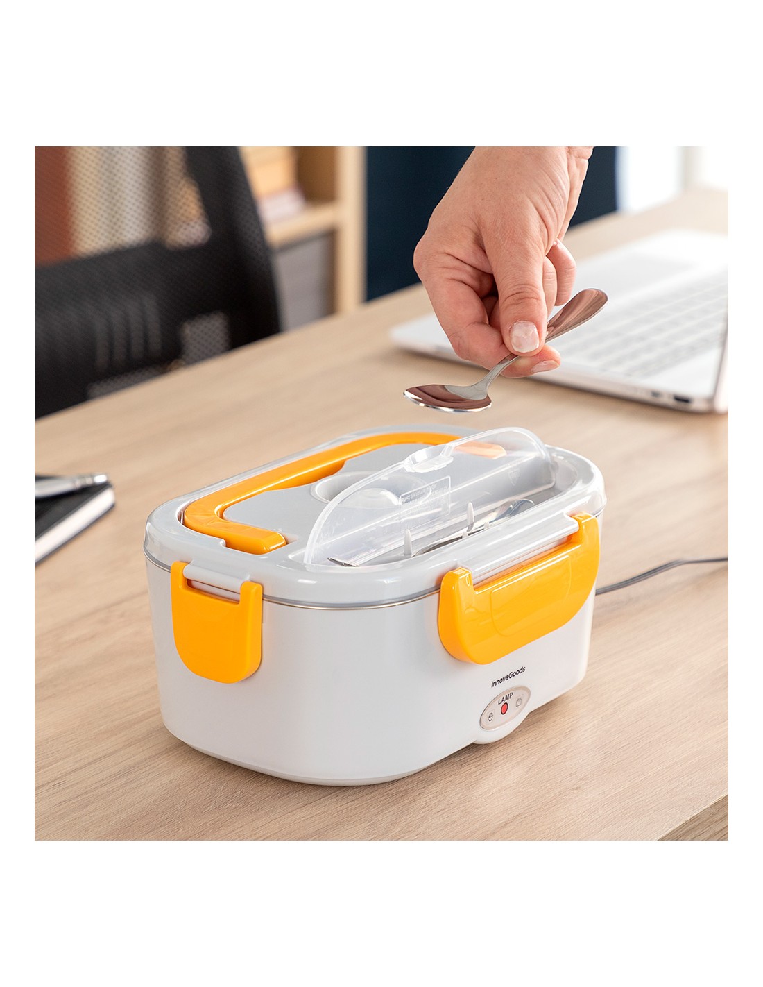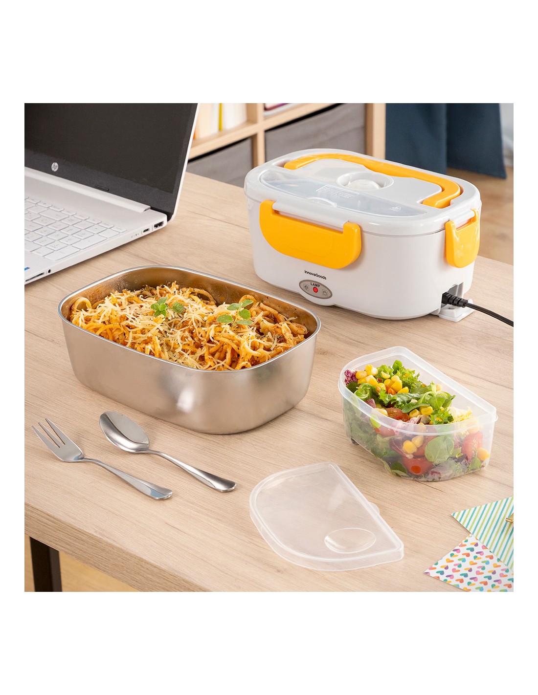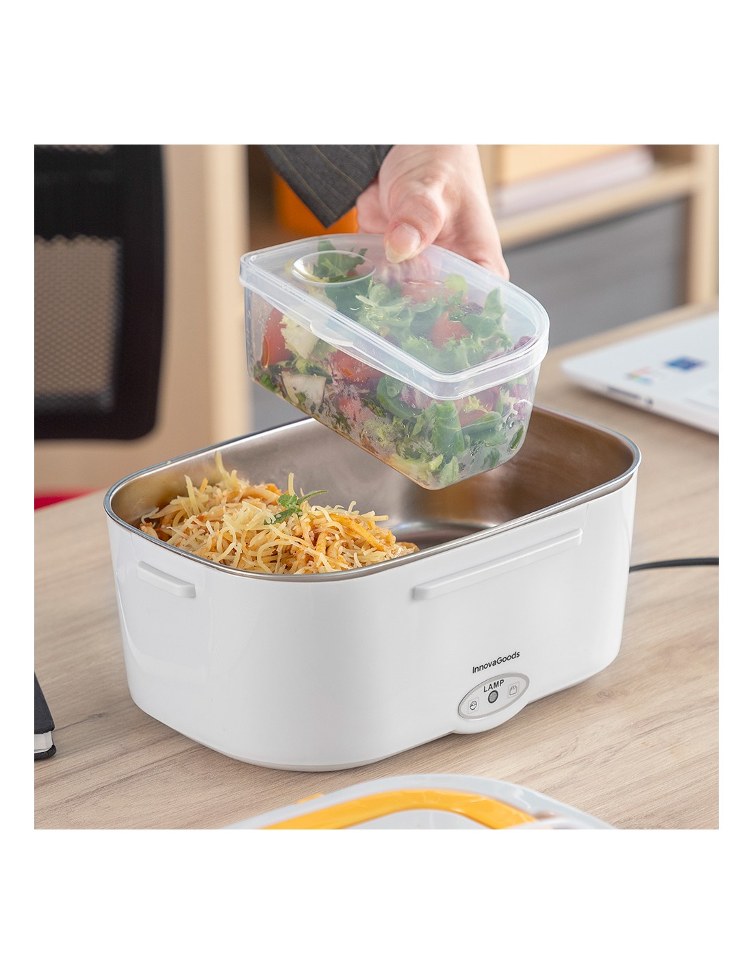 Fiambrera eléctrica para oficina y coche, para calentar comidas,con capacidad de 1,05l y potencia de 60w. cable extraible 80 cm. tipo enchufe c. alcanza hasta 90°c. incluye válvula de vapor, asa plegable, cierres de seguridad y cable extraible adaptador para el coche (12v 5a). 23,5 x 10,5 x17 cm