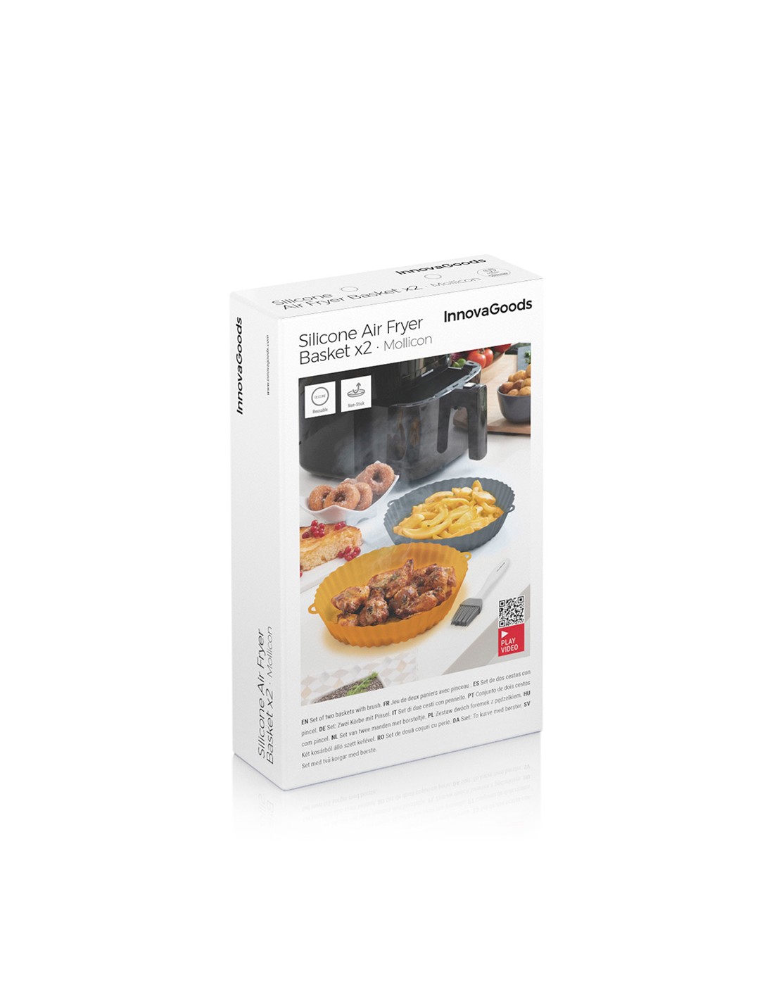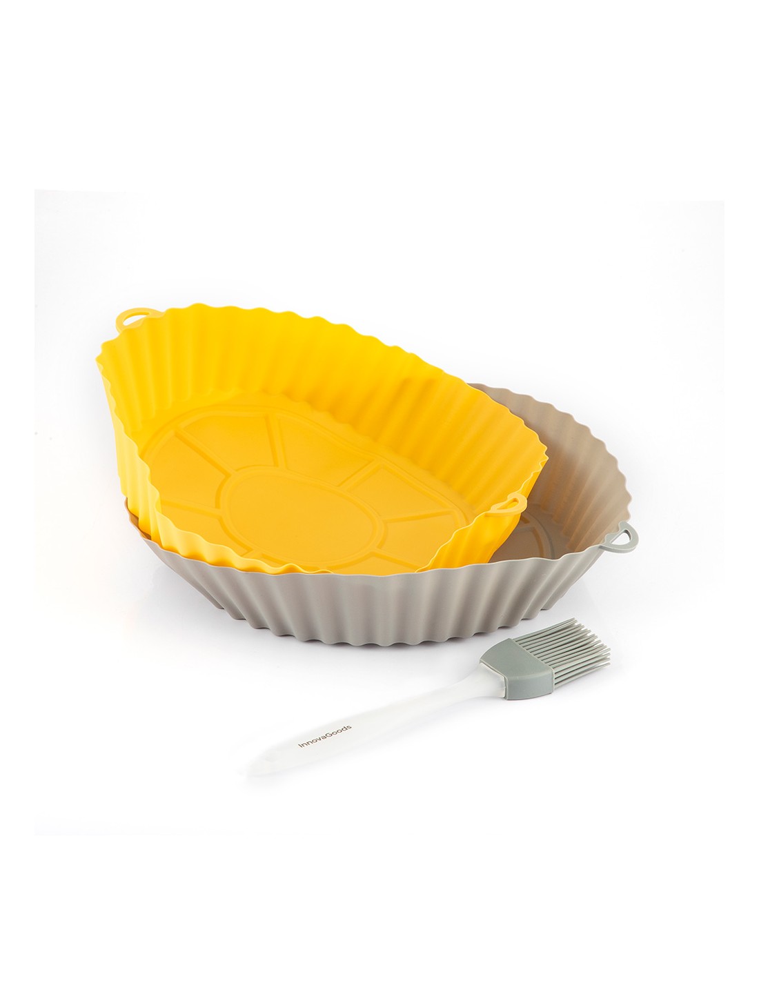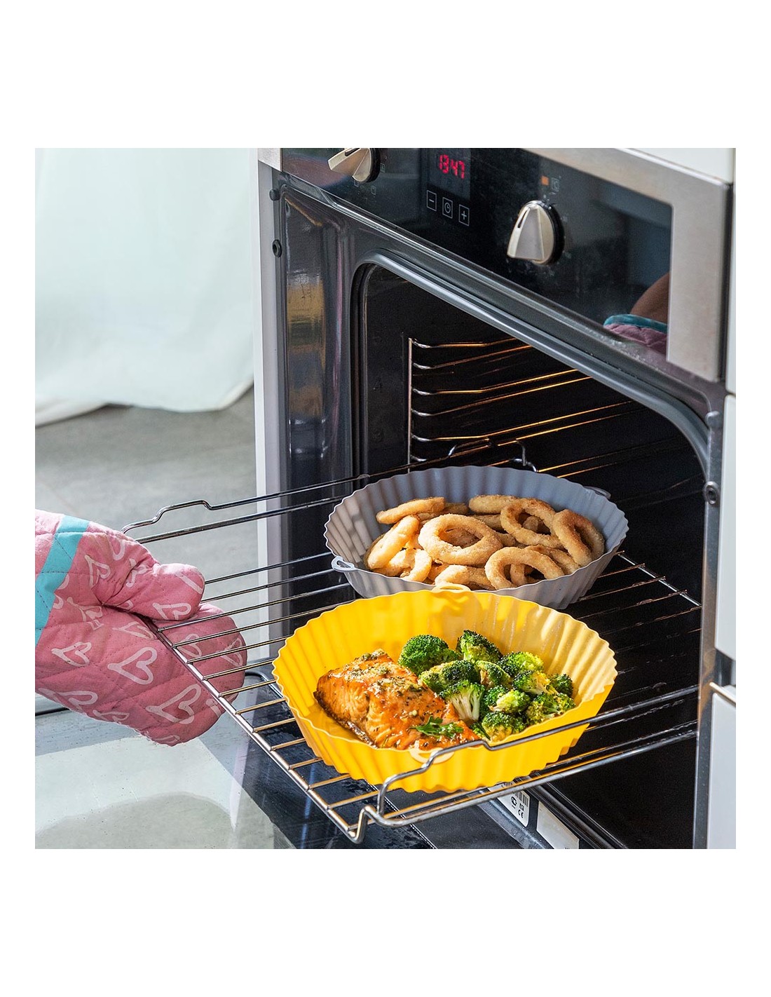 Cestas de silicona con pincel para freidoras de aire v0103786 innovagoods set de 2 cestas de silicona para freidoras cestas de silicona antiadherentes y flexibles, de medidas aproximadas 24,5x4,5x18cm. ideales para freidoras sin aceite, horno y microondas. incluyen separador, asas y son reutilizables. facilitan la cocción y limpieza.