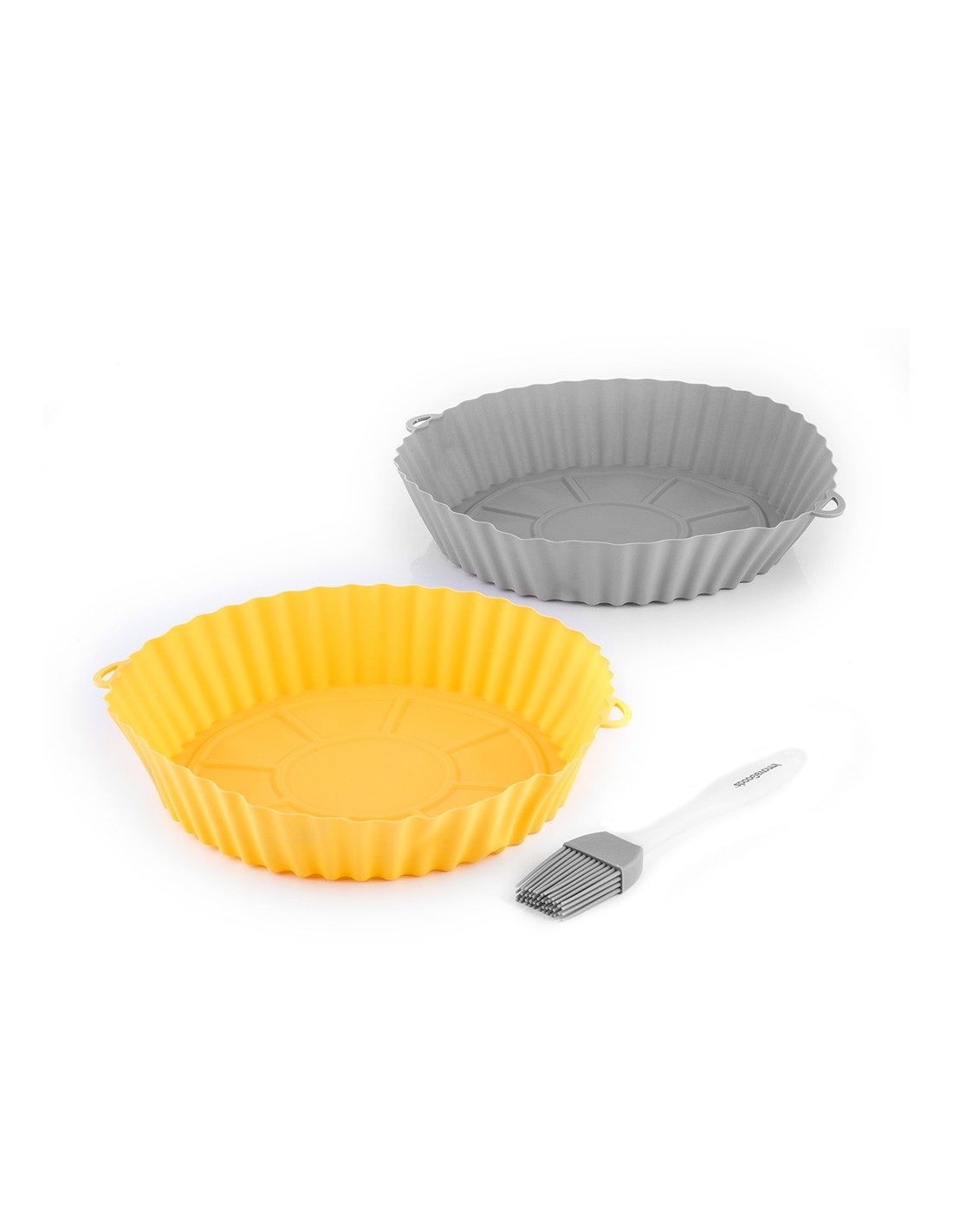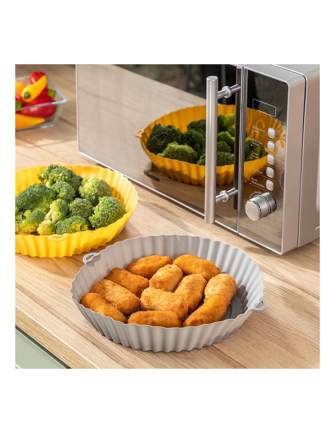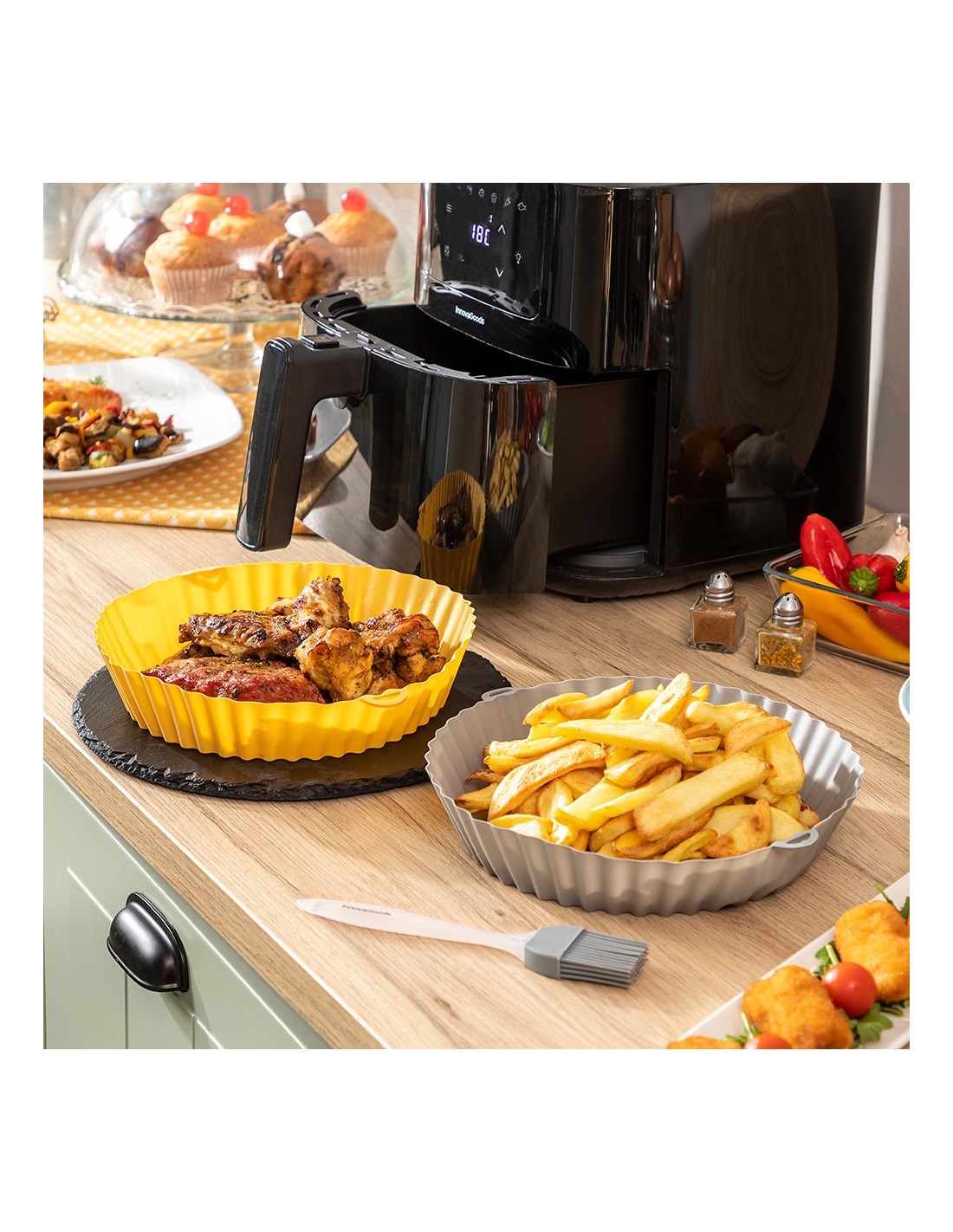Cestas de silicona con pincel para freidoras de aire v0103786 innovagoods set de 2 cestas de silicona para freidoras cestas de silicona antiadherentes y flexibles, de medidas aproximadas 24,5x4,5x18cm. ideales para freidoras sin aceite, horno y microondas. incluyen separador, asas y son reutilizables. facilitan la cocción y limpieza.