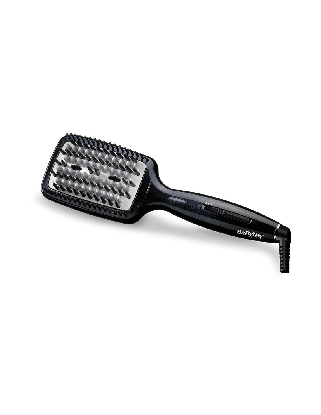 Cepillo alisador liss3d babyliss. diseño rectangular: superficie 60cm. doble generador de iones que neutraliza la electricidad estática. tres tipos de púas para un acabado perfecto: 34 púas de plástico duro: desenredan, 50 púas de silicona: peinan cómodamente, 42 púas de cerámica: alisan. indicadores de luz led. alfombrilla térmica. cable giratorio 1,95m. 3 ajustes de temperatura de 160°c a 200°c