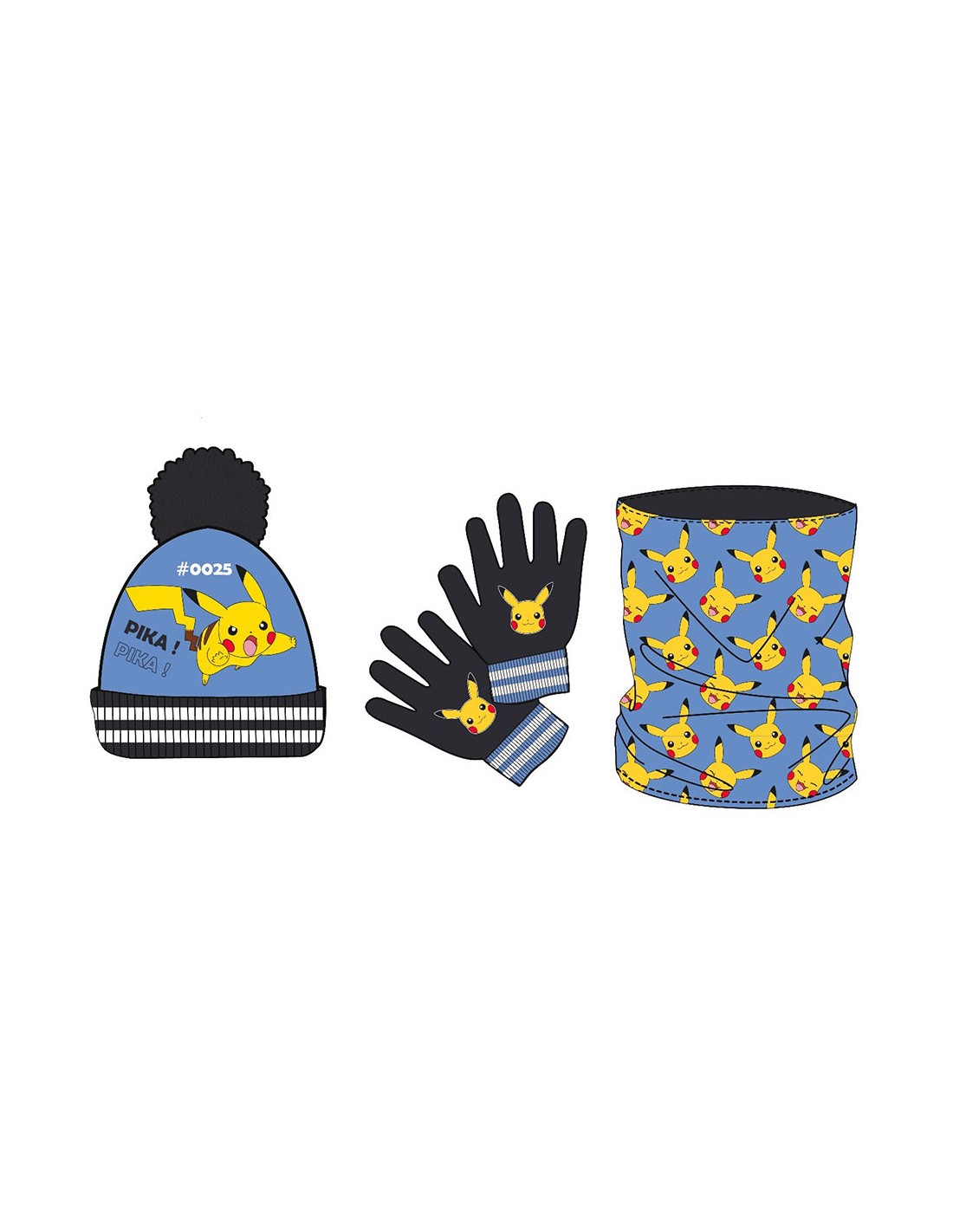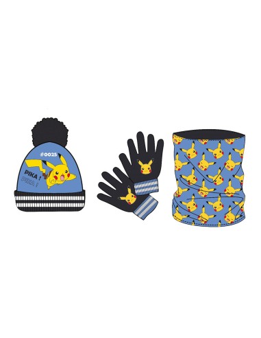 Set gorro pompon-guantes-braga pokemon