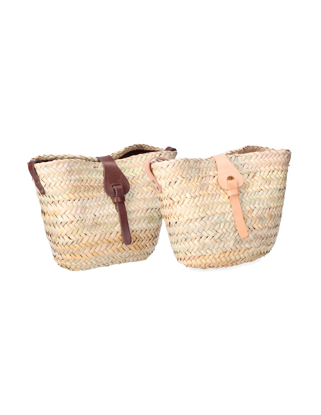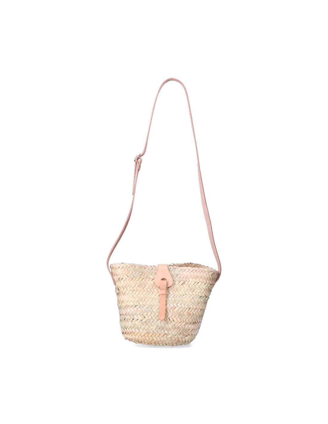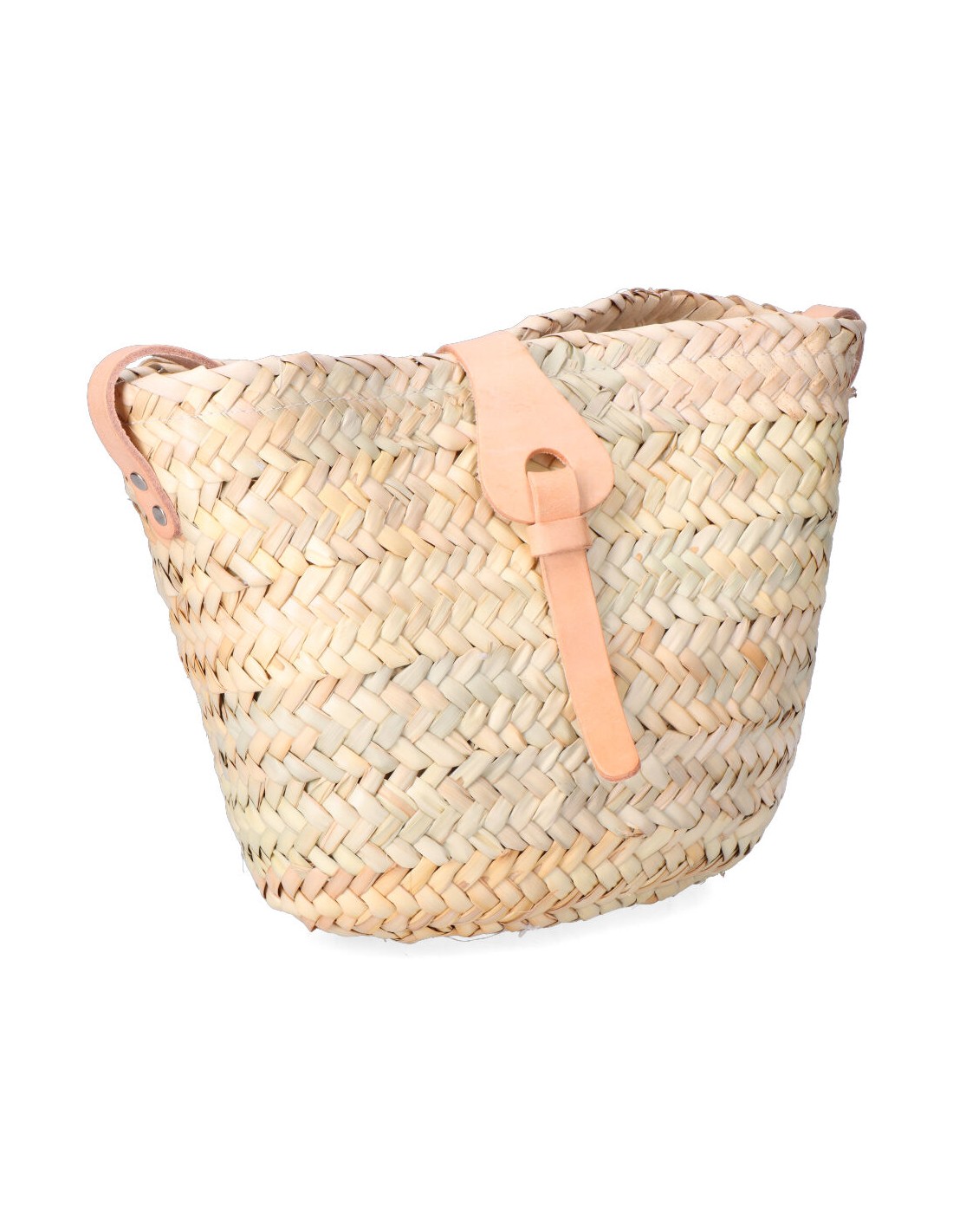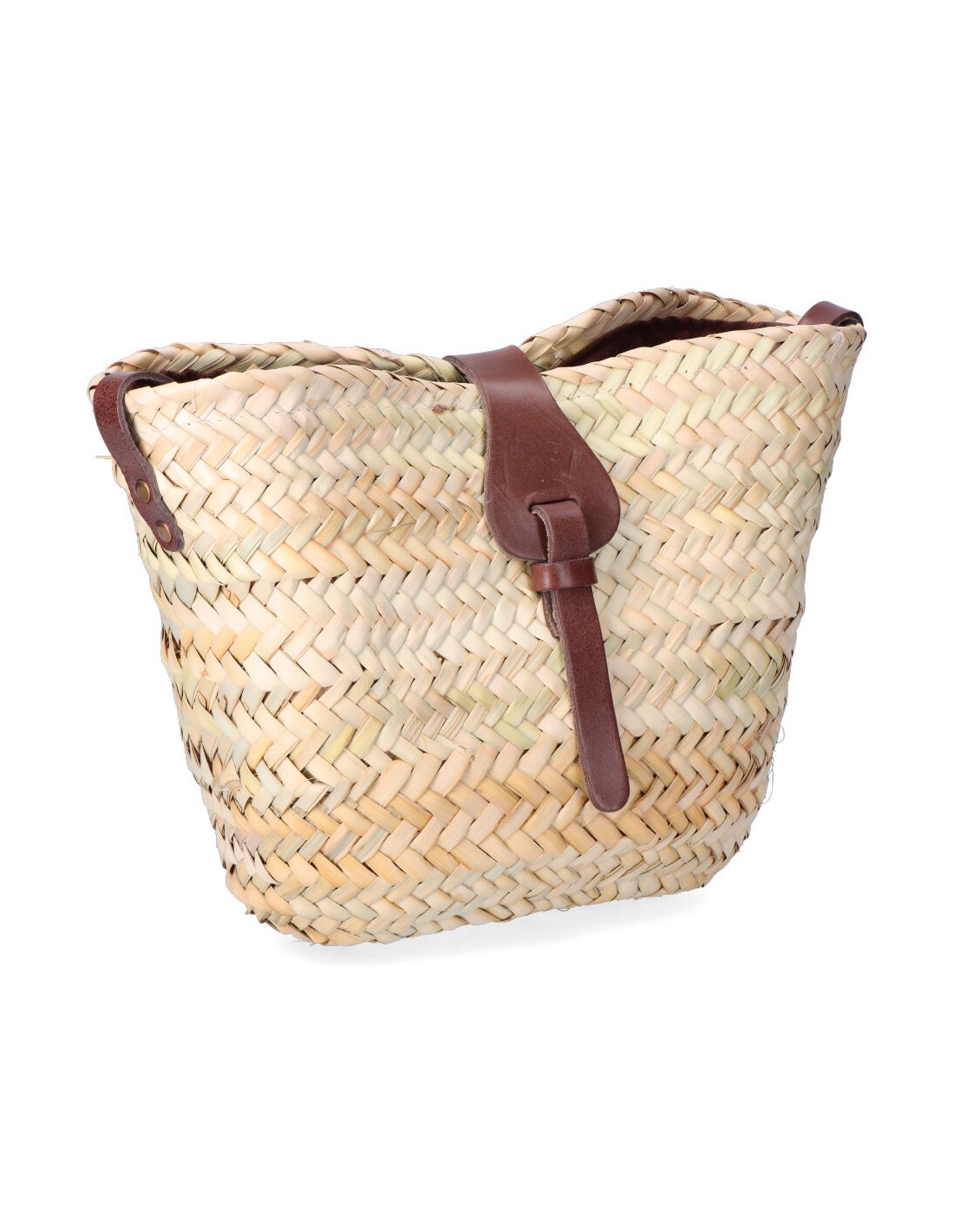Bolso plano con presilla y asa bandolera 2 colores surtidos. material palma y cuero.medidas:31x22cm