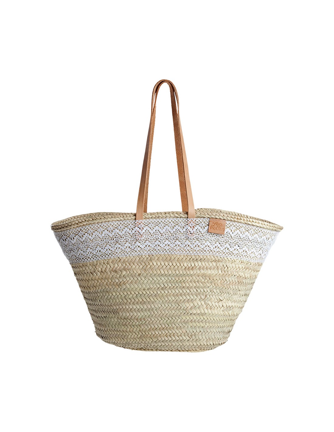 Bolso cala de palma con puntilla y asas.medidas:55x35cm