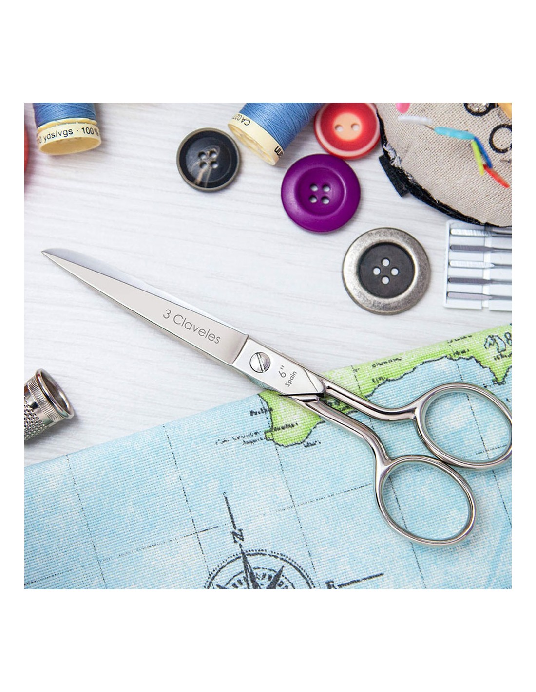 Tijera forjada en caliente .medida 6". destinada a costura y labores. corte preciso y durarero. dedales asimetricos para ajustarse mejor a la mano y facilitar un corte eficiente y seguro. presentada en display