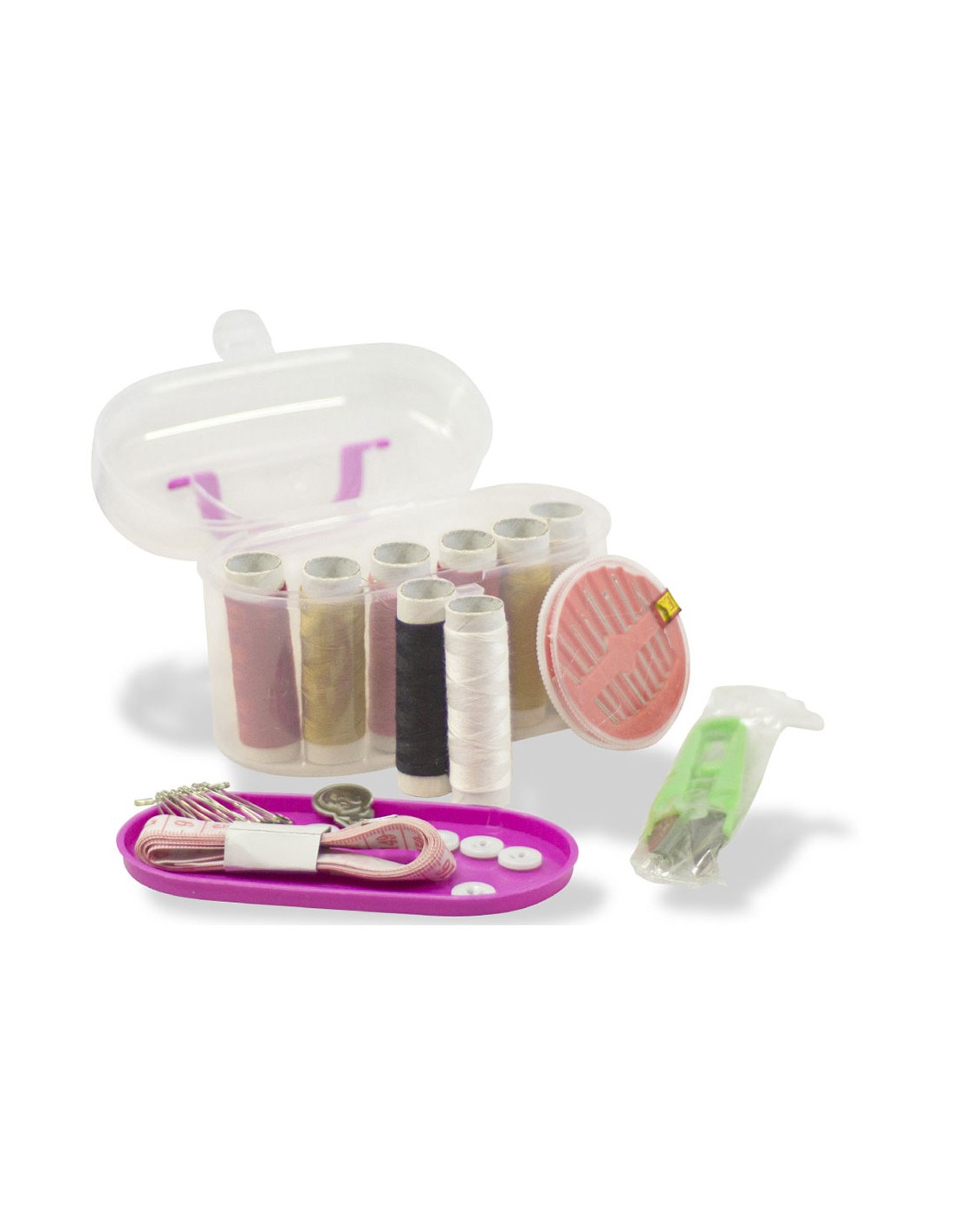 Surtido de hilos de coser (8 colores) tijeras de costura, agujas de coser, enhebrador, cinta métrica de costura y botones.