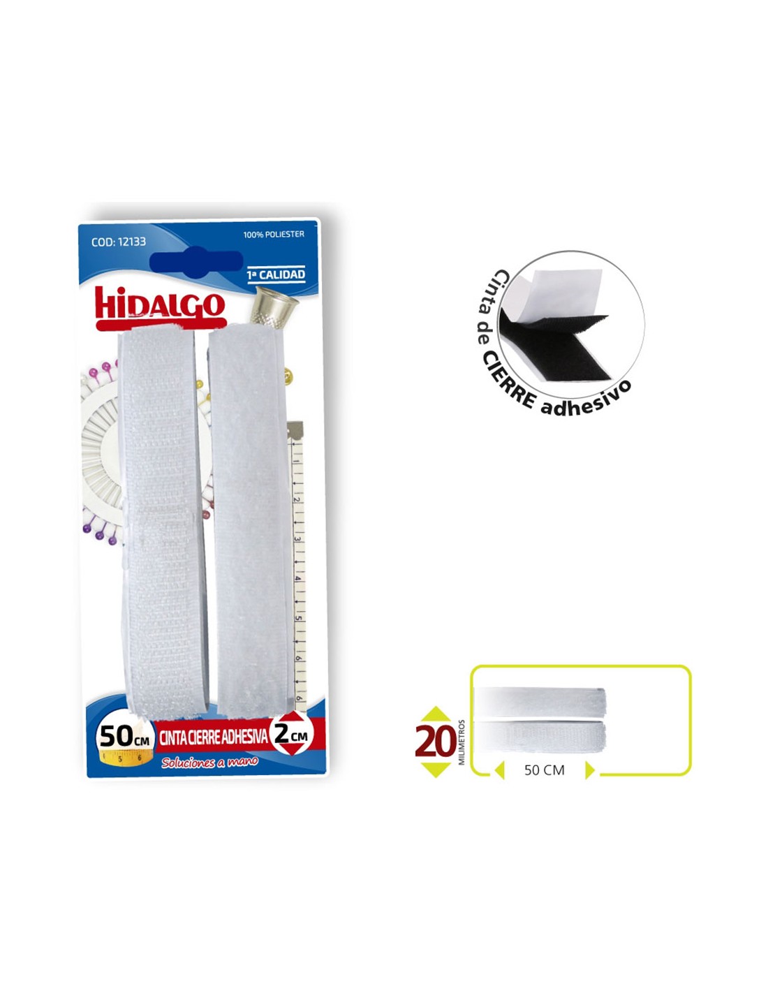 Blister cinta cierre adhesiva 2x50 cm.blanco hidalgo