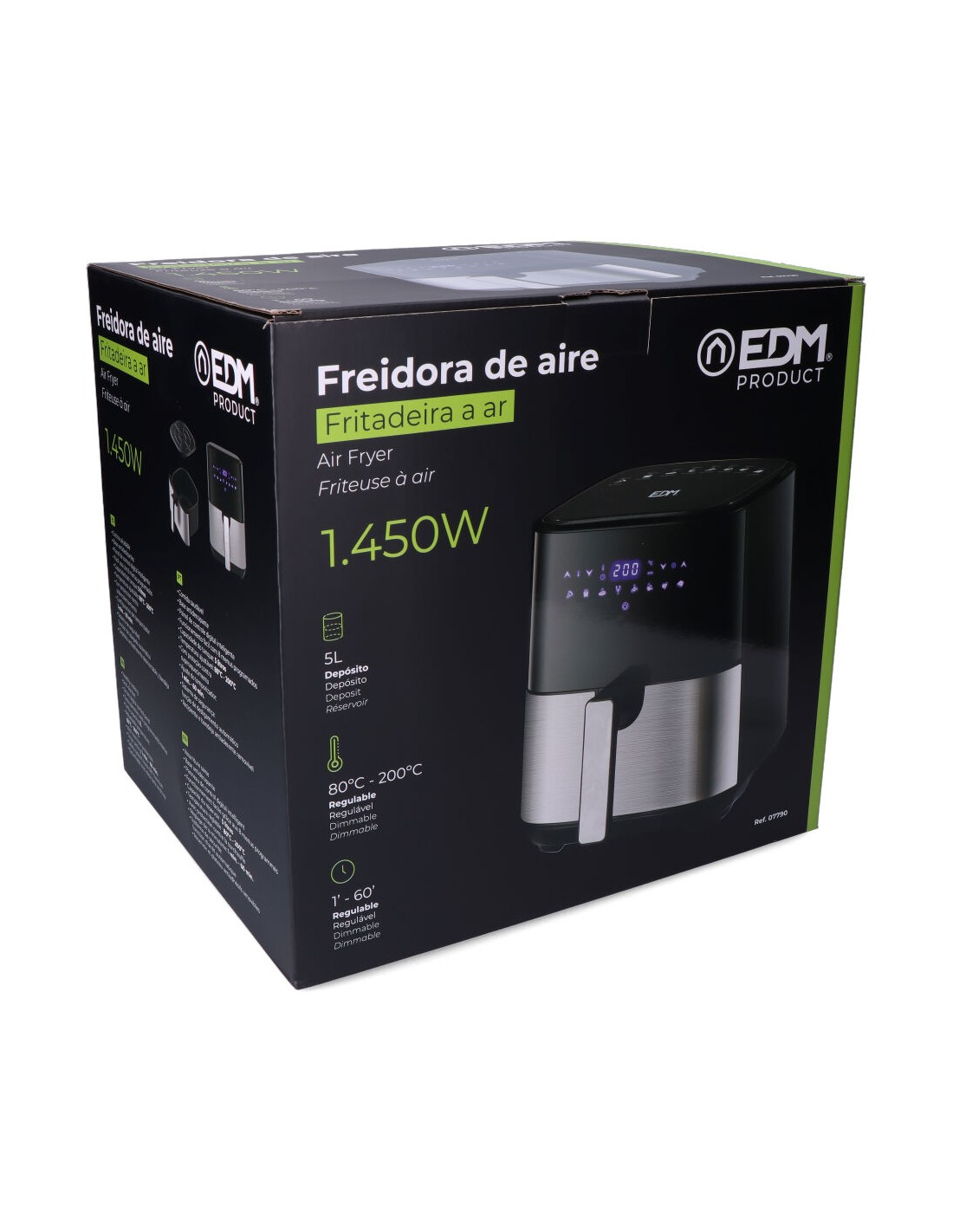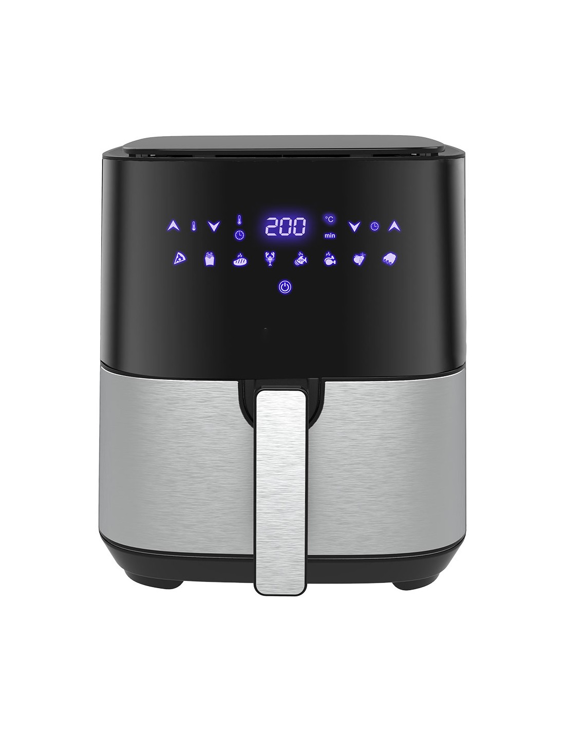 Freidora de aire 5l con pantalla led, 1450 w, con base antideslizante, uso facil con 8 menús programados, temperatura ajustable 80°c- 200°c, con protección contra sobrecalientamiento, temporizador de 1 - 60min, función de apagado automático, deposito antiadherente desmontable y bandeja. 220v, medidas: 27,4 x 24,9 x 30,4 cm *** promoción regalo 1 ud ref. 07788 - papel freidora de aire ø17 cm 100 uds ***