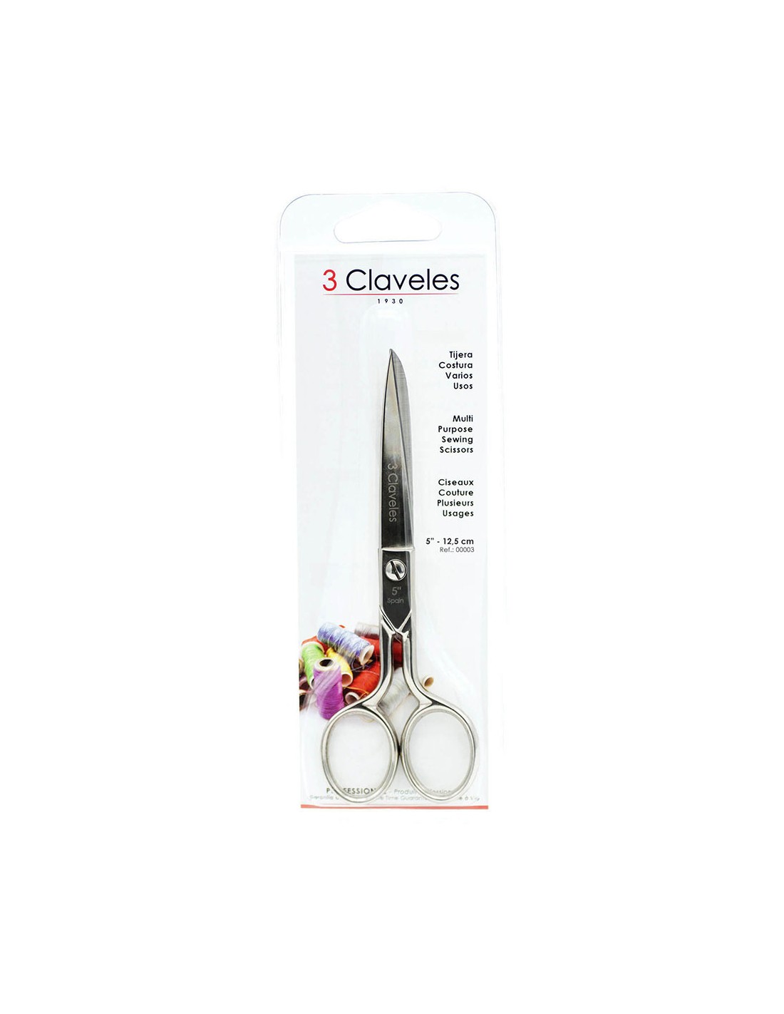 Tijera de costura o labores. fabricada en acero inoxidable. forjada en caliente. permite cortar todo tipo de telas con gran precisión. medida 5". presentada en display /colgador