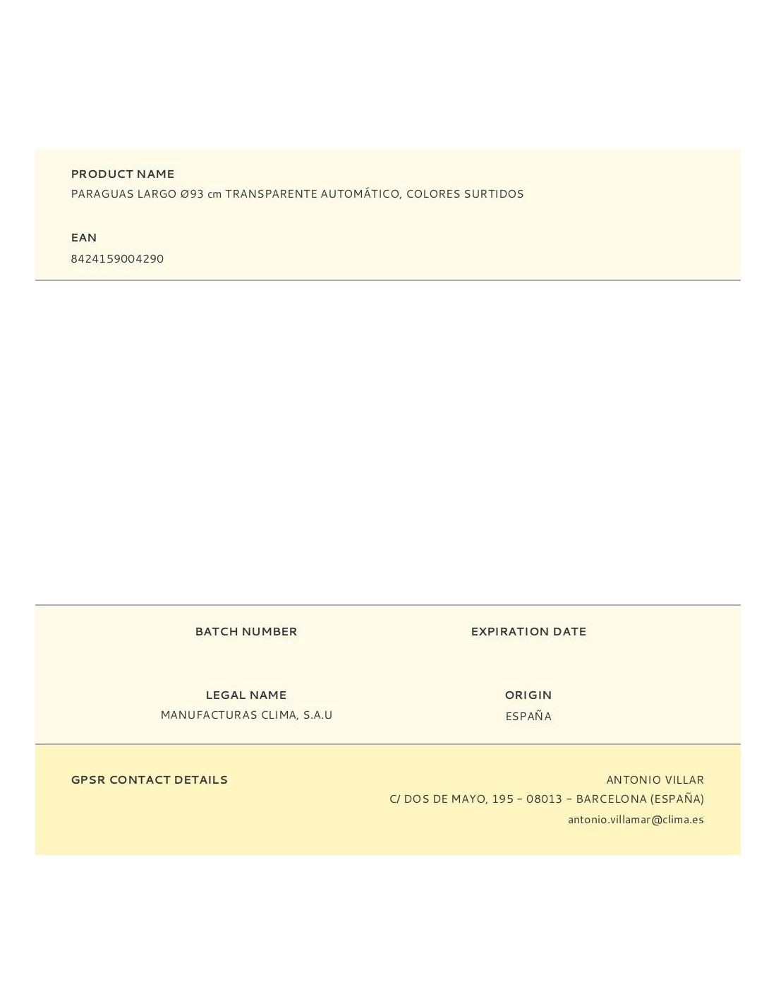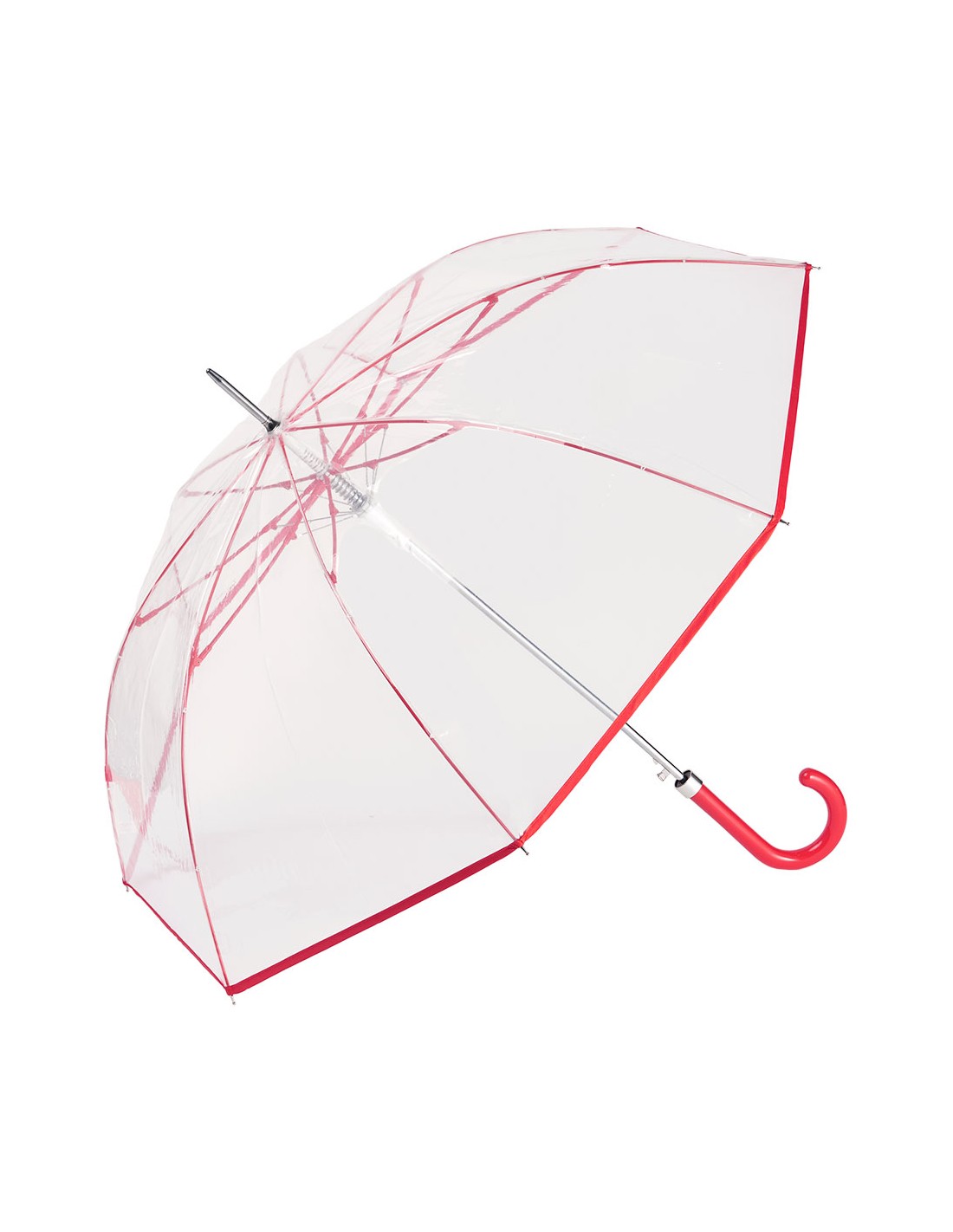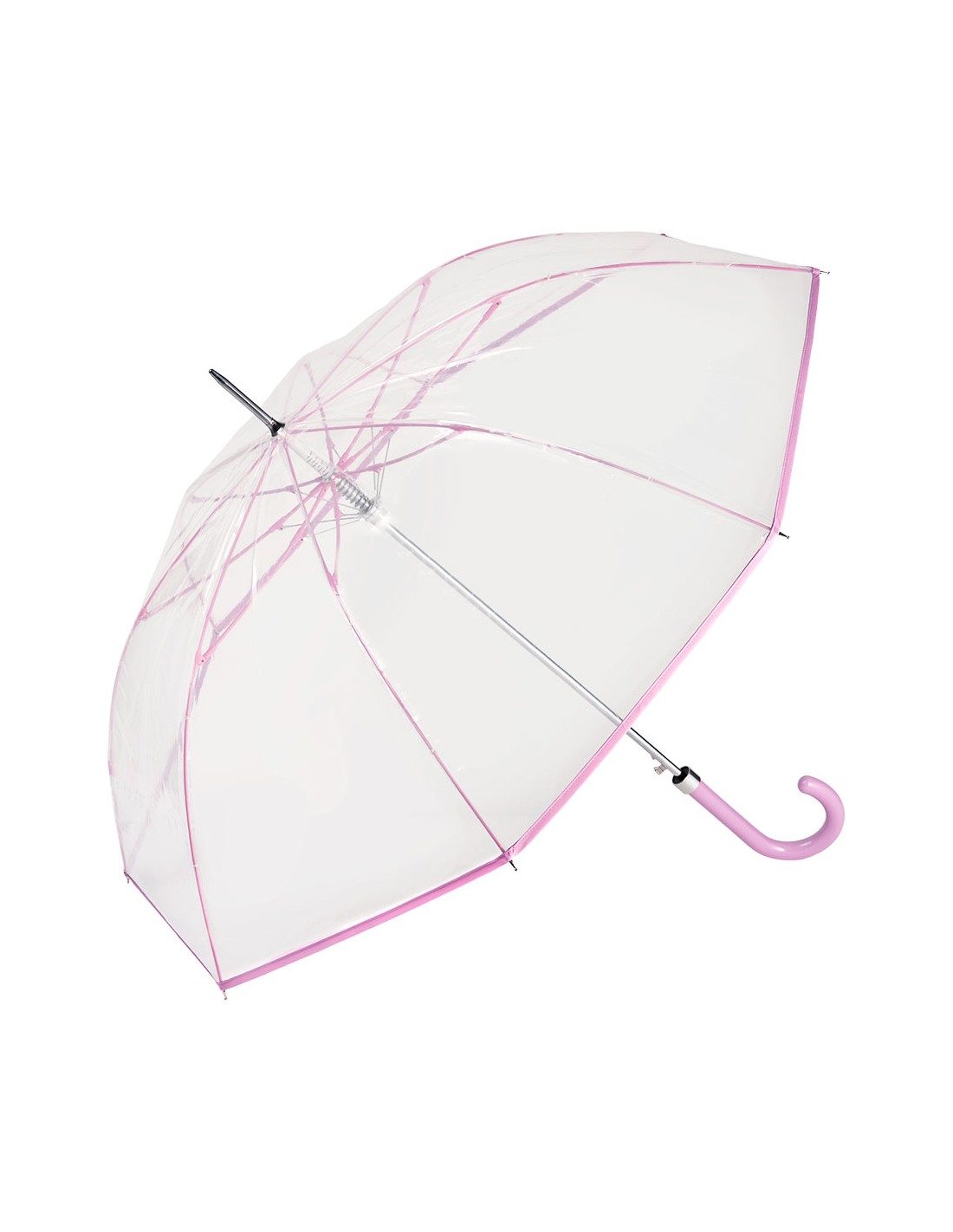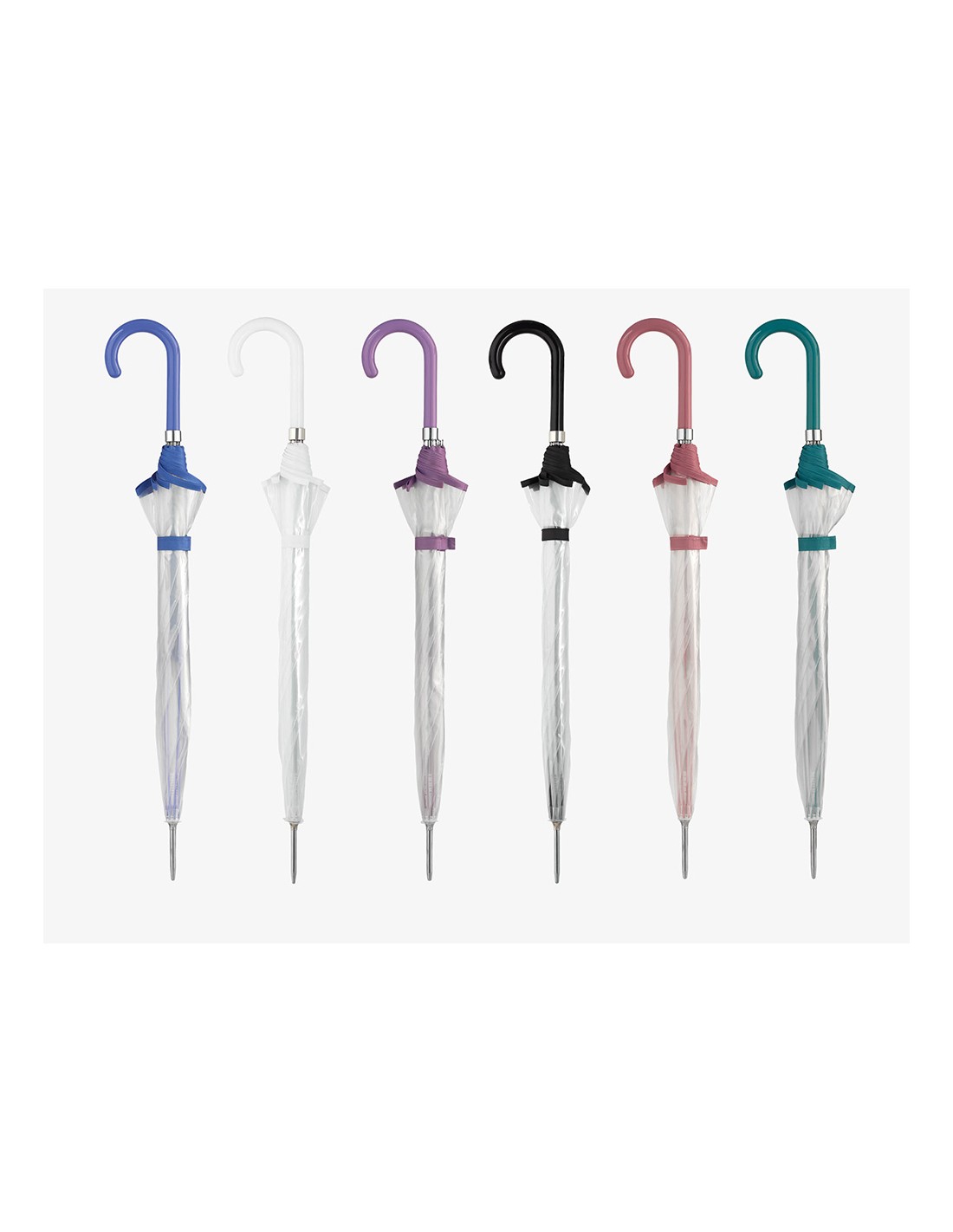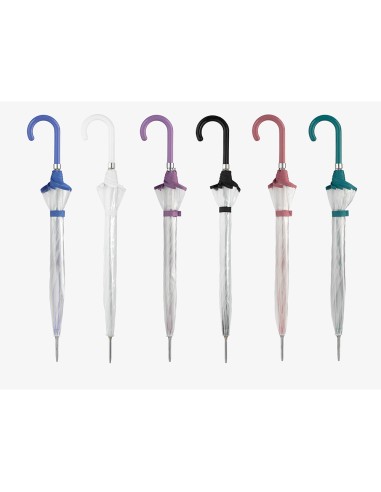 Paraguas largo trasnparente automático, colores surtidos. 8 varillas y puño de colores.93 centímetros de diámetro. fabricado con sistema windproof, resisitente al viento. 429 c-collection