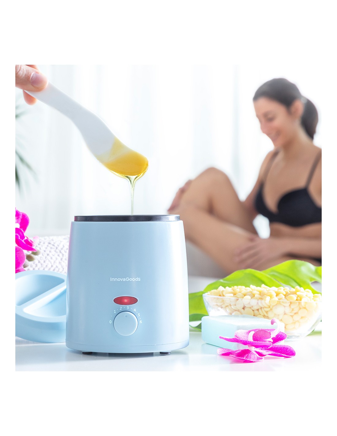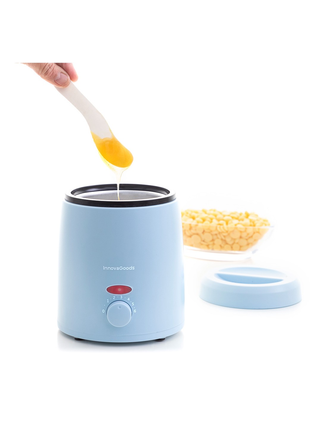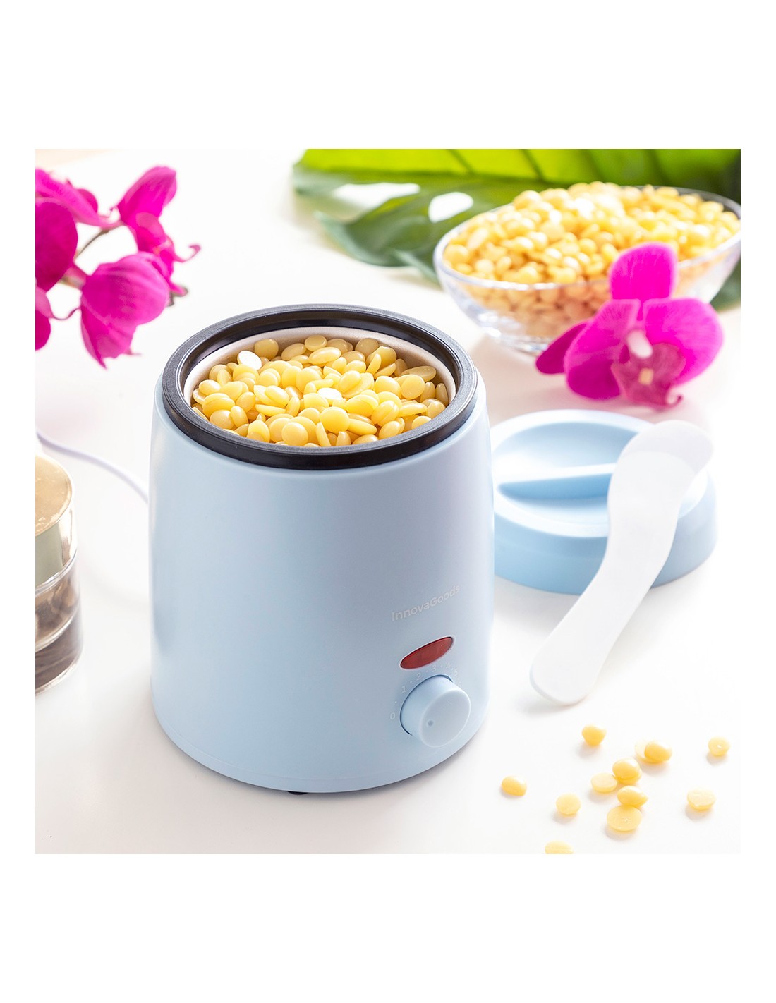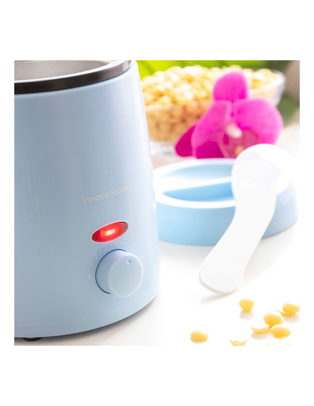 Calentador de cera para depilación warmex, potencia 40w, 220-240v/50-60hz,temperatura regulable (50-120°) 6 niveles, sistema de calentamiento que derrite la cera y mantiene la temperatura, incluye espátula y tapa, indicador led de calentamiento, medidas 11x13,2x12cm. innovagoods