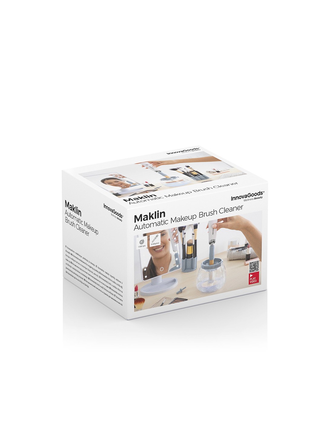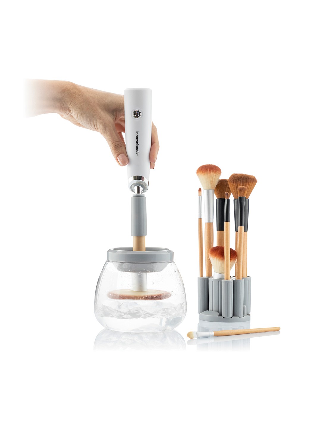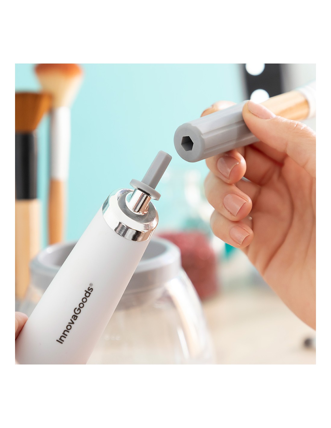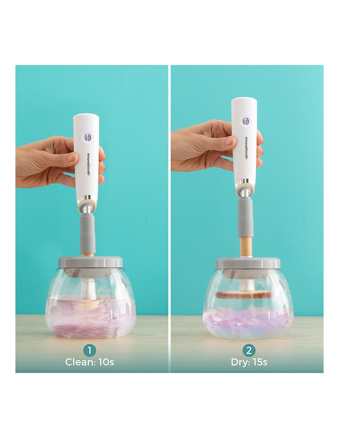Limpiador y secador automático de brochas de maquillaje maklin, velocidad 7000 r.p.m, funciona con pilas 2aaa, incluye 8 adaptadores(ø30-24-19-15-11-9-7-5mm), botón on/off, medidas ø12x10cm, 3,5x135x3cm. innovagoods