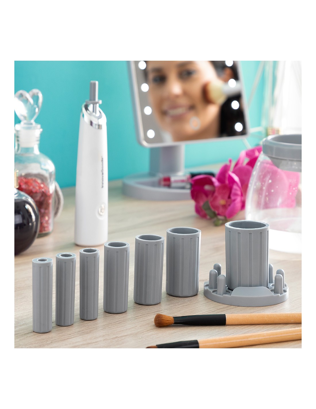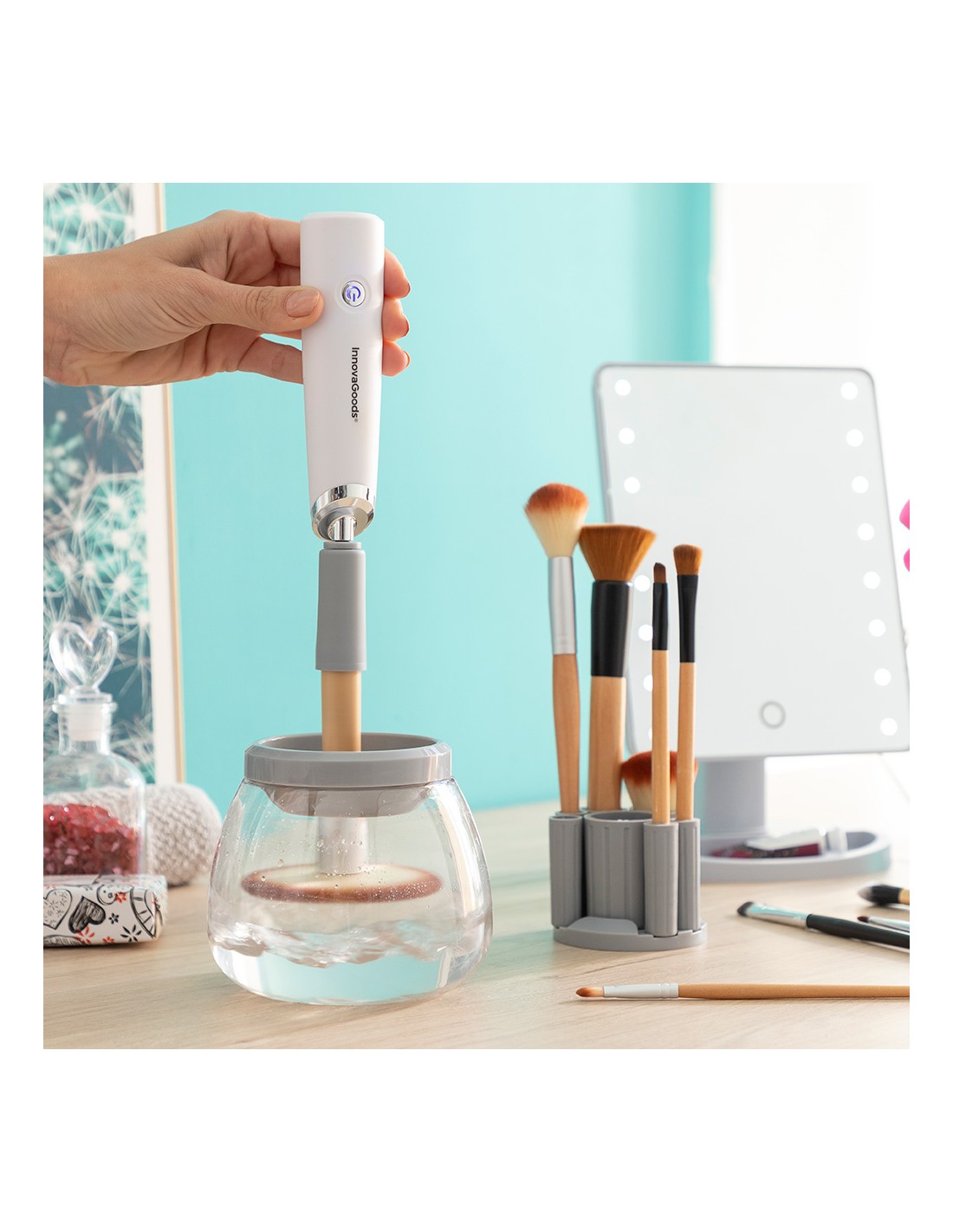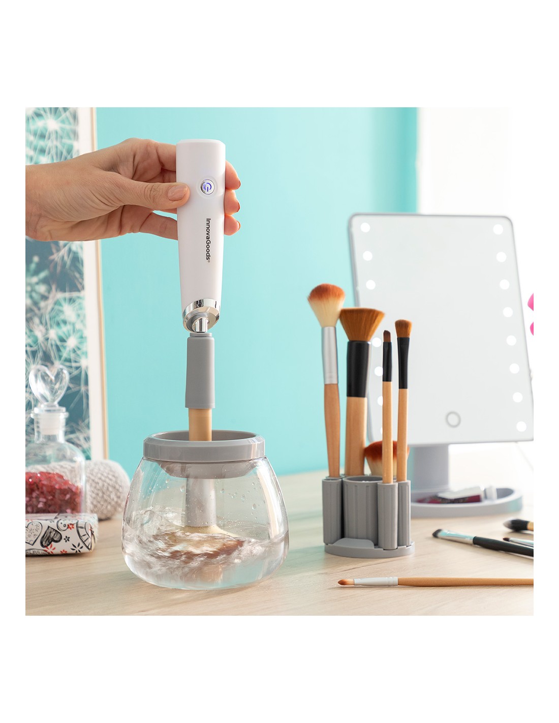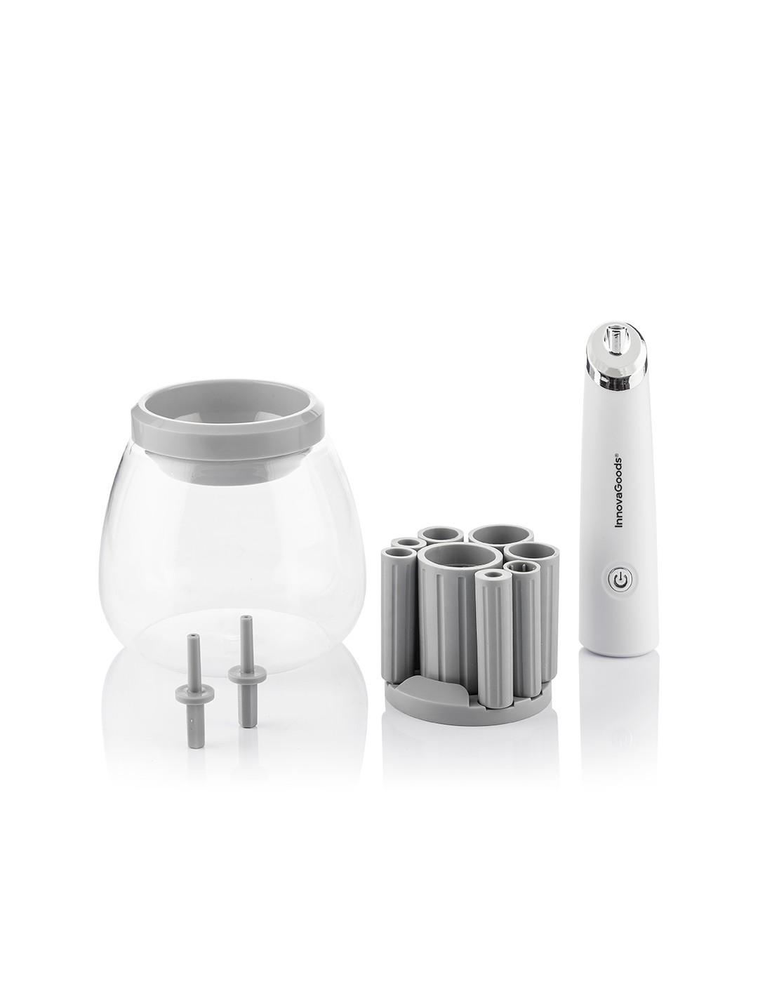 Limpiador y secador automático de brochas de maquillaje maklin, velocidad 7000 r.p.m, funciona con pilas 2aaa, incluye 8 adaptadores(ø30-24-19-15-11-9-7-5mm), botón on/off, medidas ø12x10cm, 3,5x135x3cm. innovagoods